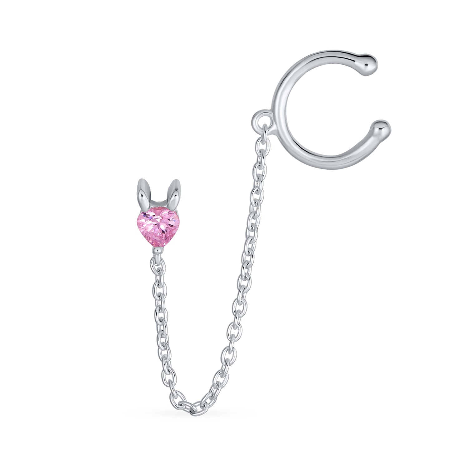 - For a Mini heart with bunny ear prongs is a cute choice for you buff in your life. Featuring a simple cartilage cuff and a chain linked to the pink cz heart for the same earlobe. Dainty asymmetric cartilage heart earring is the prefect choice for the fun loving trendy fashionista in you life.