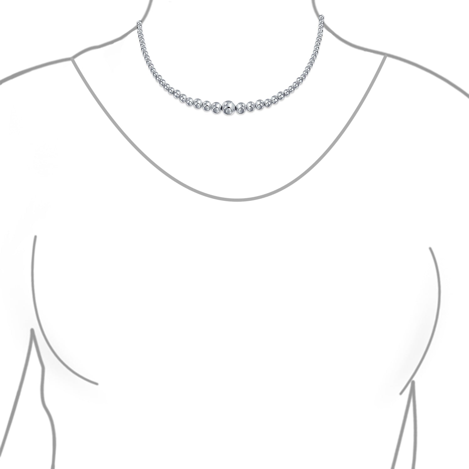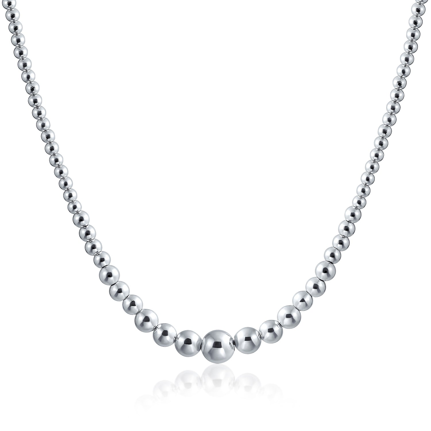 • Bead Ball necklaces feature a classic look. Their graduated design mimics traditional pearls but in solid .925 Sterling Silver. The high shine of the graduating balls is breathtaking. Beads range from 4mm to 10mm at the center. This necklace exemplifies symmetry and fine craftsmanship. A best-selling piece, it’s sure to become a favorite. Order your stunning graduated ball necklace today.