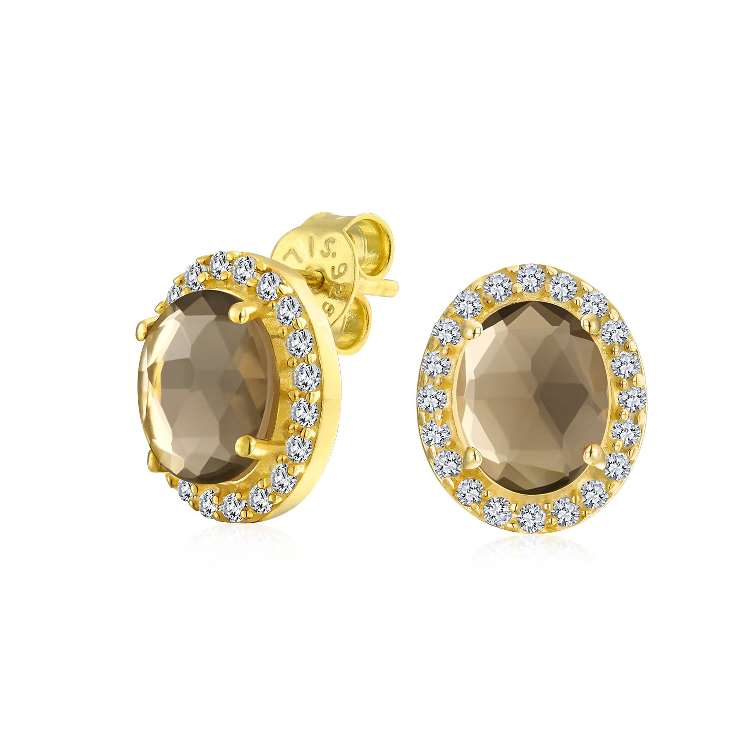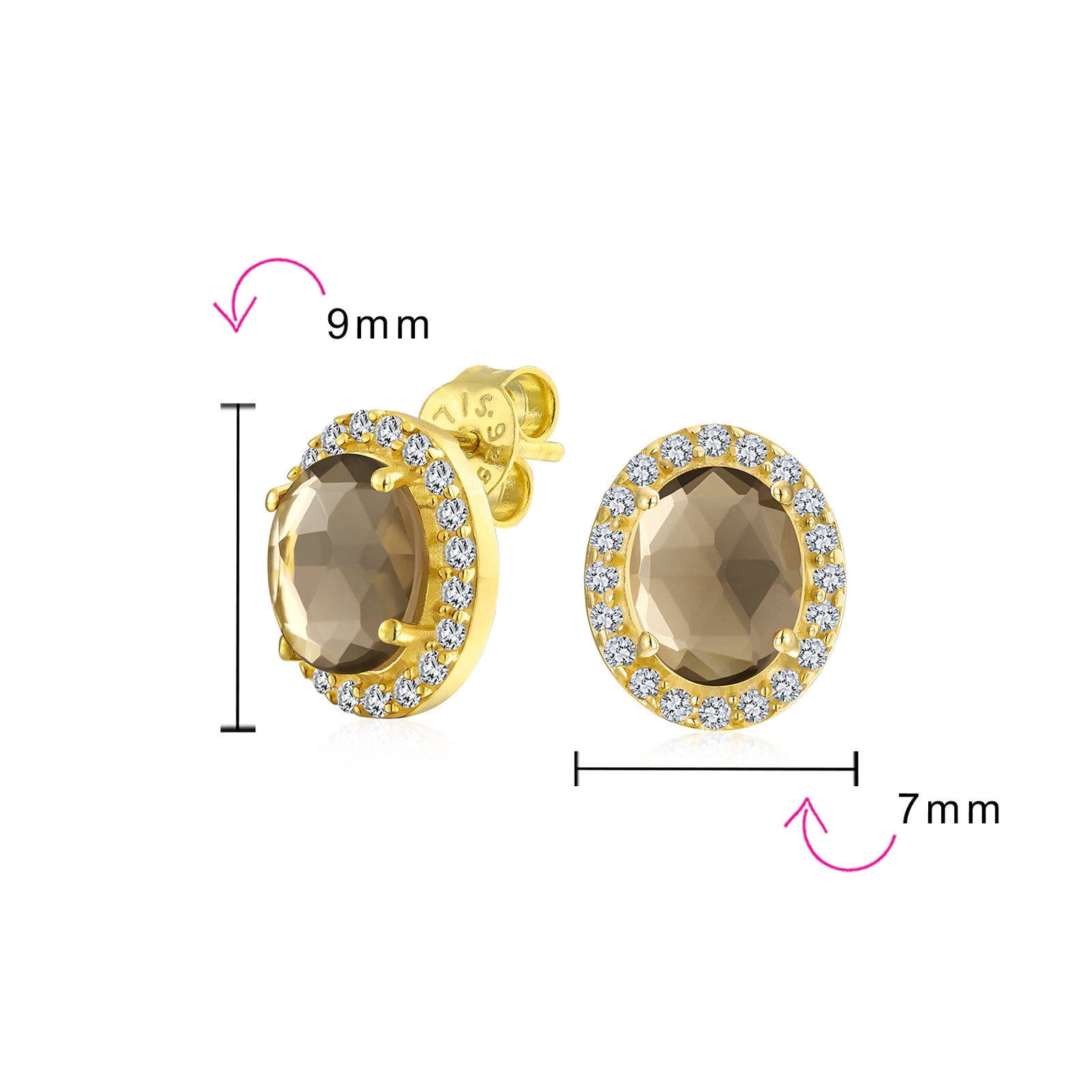 - SOLITAIRE HALO DESIGN - Add a pop of shine and color to your look with this created white moonstone semiprecious timeless gemstone earrings. The oval shape earrings are crafted in yellow gold plated 925 sterling silver for a glamorous and rich look. For June birthstone month