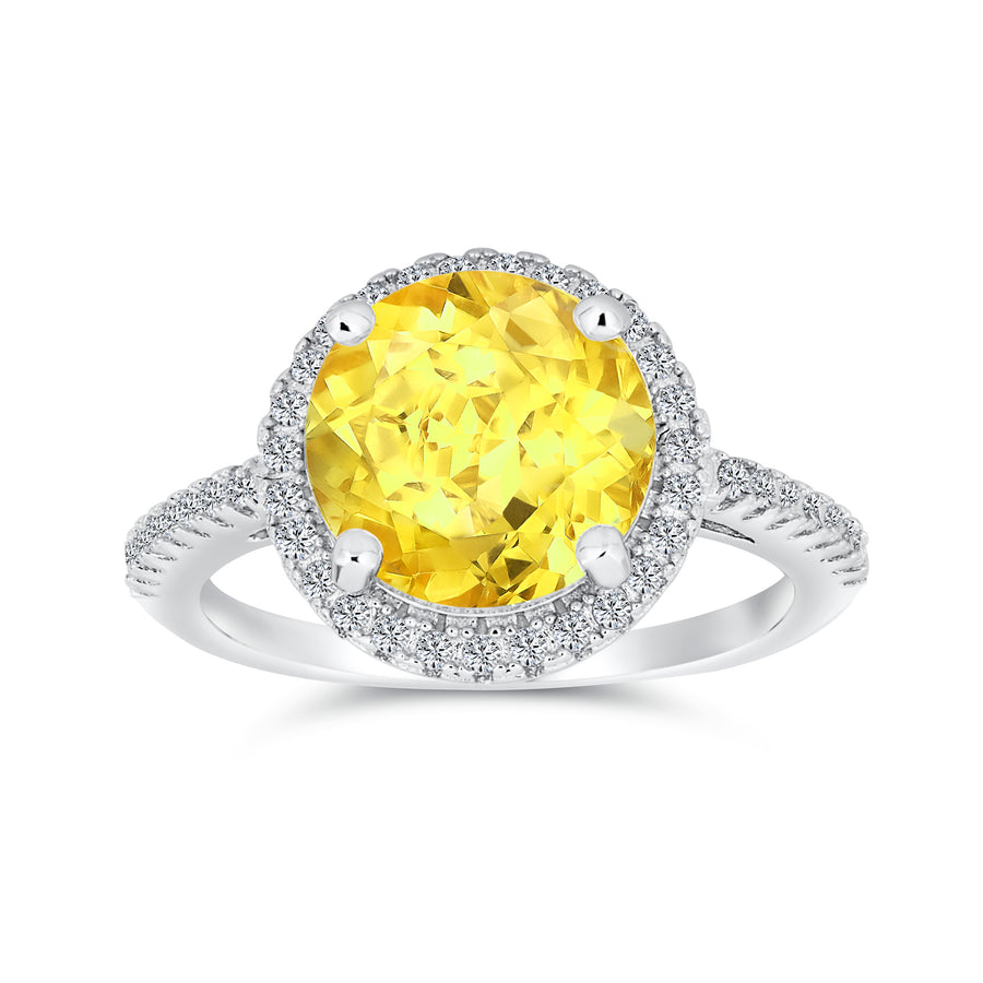 - She will dazzle in our pave round cut simulated canary CZ engagement ring. A halo of clear CZ adds brilliance. This exquisite sterling silver ring is perfect for weddings. Capture the vintage elegance with this empress of engagement rings for women.