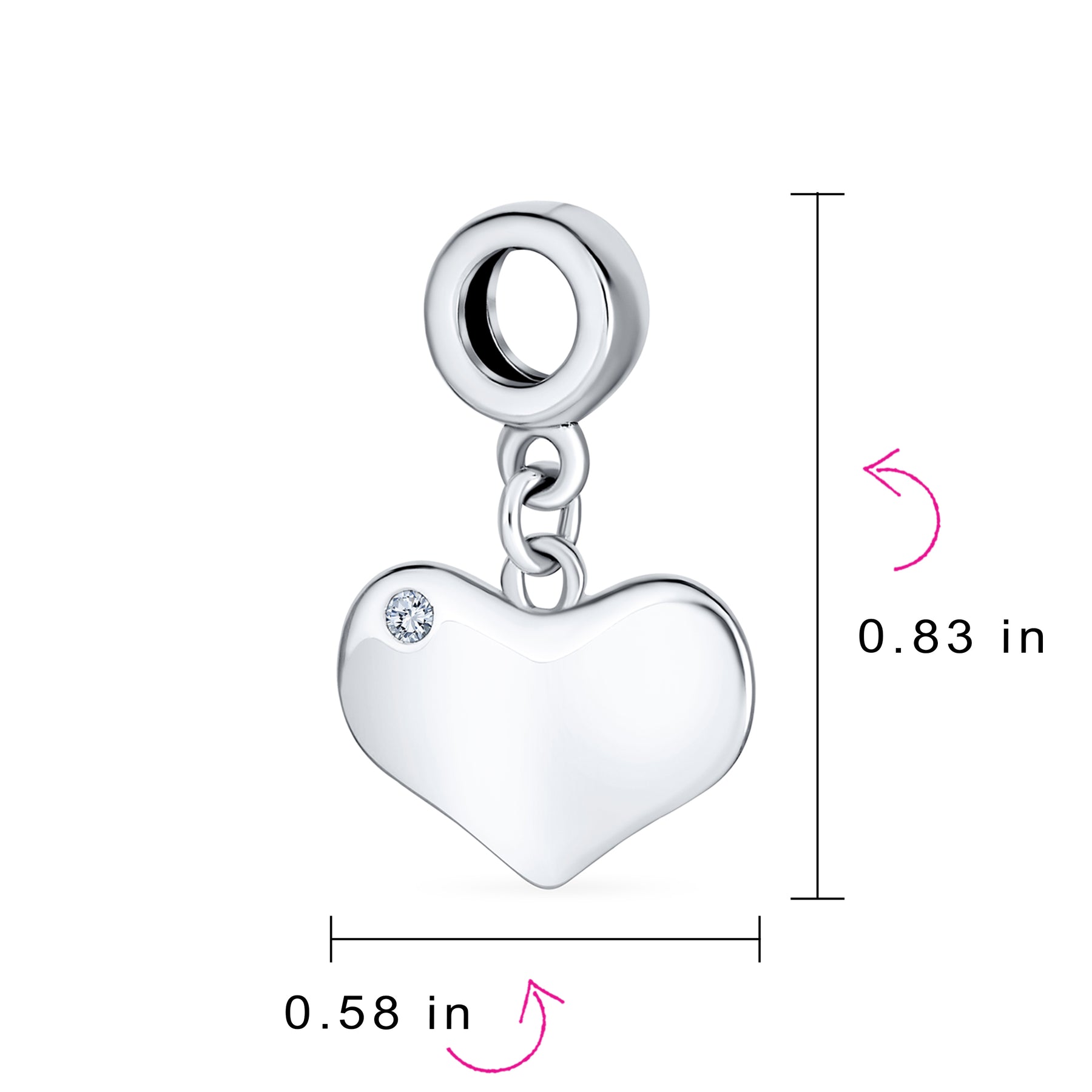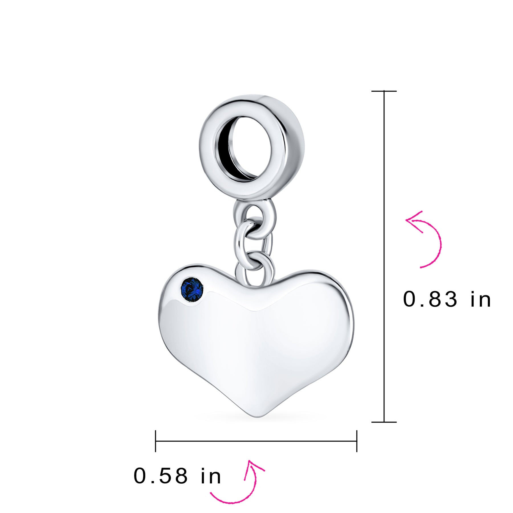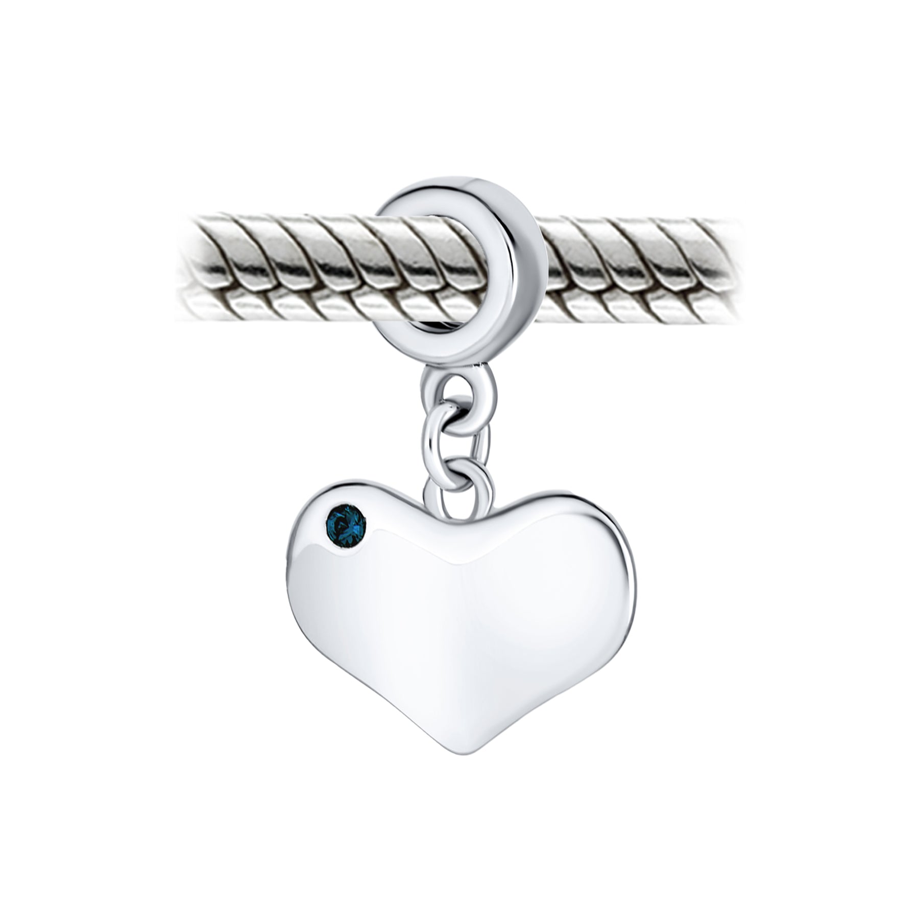 - Move your heart to your beads bracelet with this sterling silver dangle heart charm. Perfect for March birthdays, featuring a simulated Aquamarine crystal. Show your love with this stunning birthstone charm.
