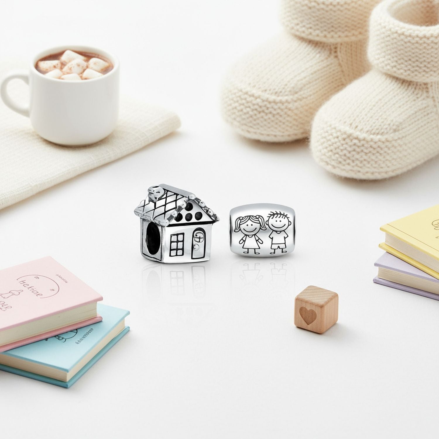 - Celebrate family and cherished connections with this sterling silver charm set. The set features a whimsical Family House bead, crafted from .925 sterling silver to carry the warmth of home wherever you go, and a Brother and Sister bead engraved on two sides, perfect for mothers and grandmothers. Both charms fit any standard bead bracelet and can be paired with crystal, glass, birthstone, enamel, and other beads to create a personalized, meaningful story.