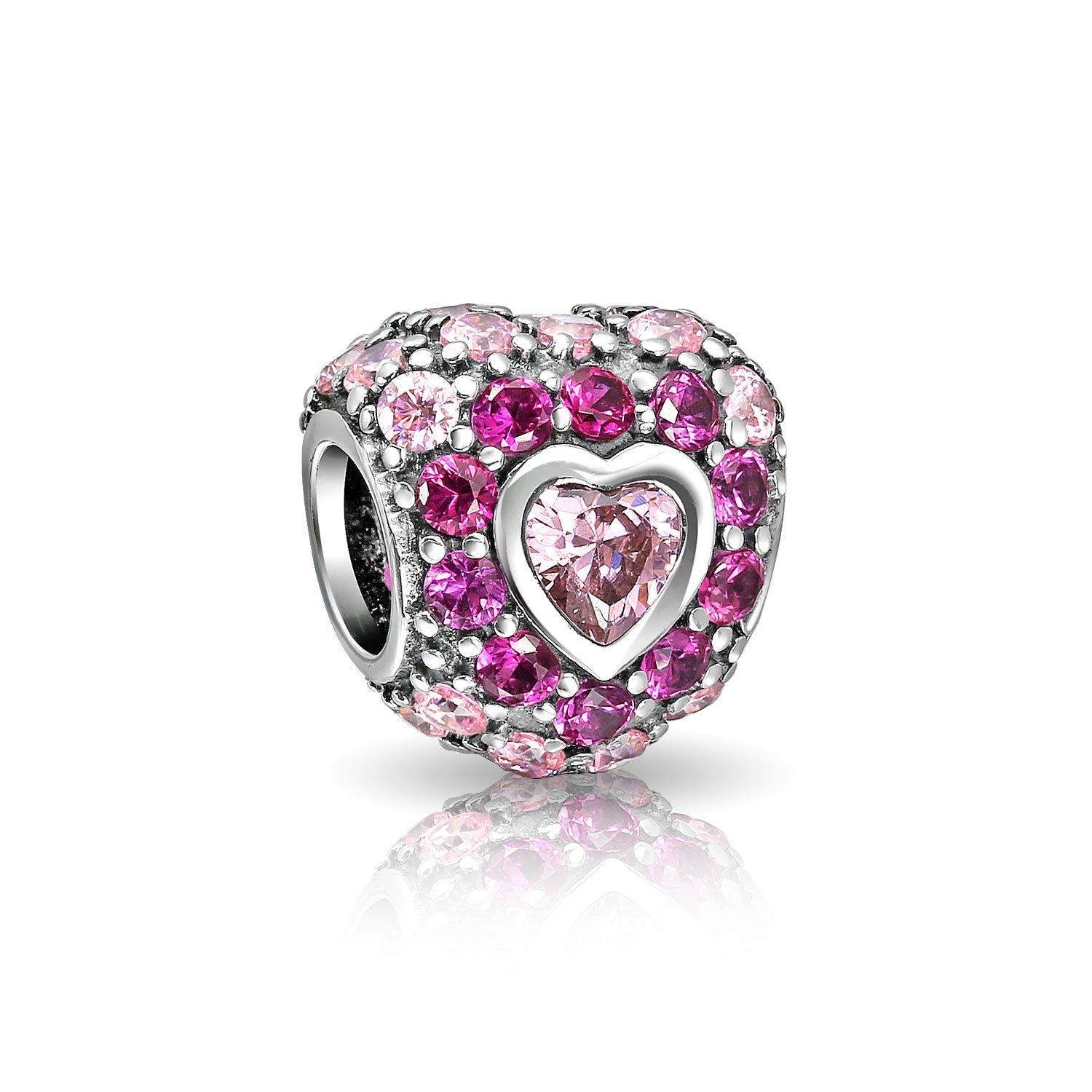 - Love is a many-splendored thing. Make your significant other's heart race with our stunning red CZ heart bead. Perfect for Valentine's Day, this .925 sterling silver bead features a pink-centered CZ surrounded by small round pink CZs. Ideal for charm bracelets and jewelry. Share the love with this exquisite heart charm. Get your Valentine's Day charm today!