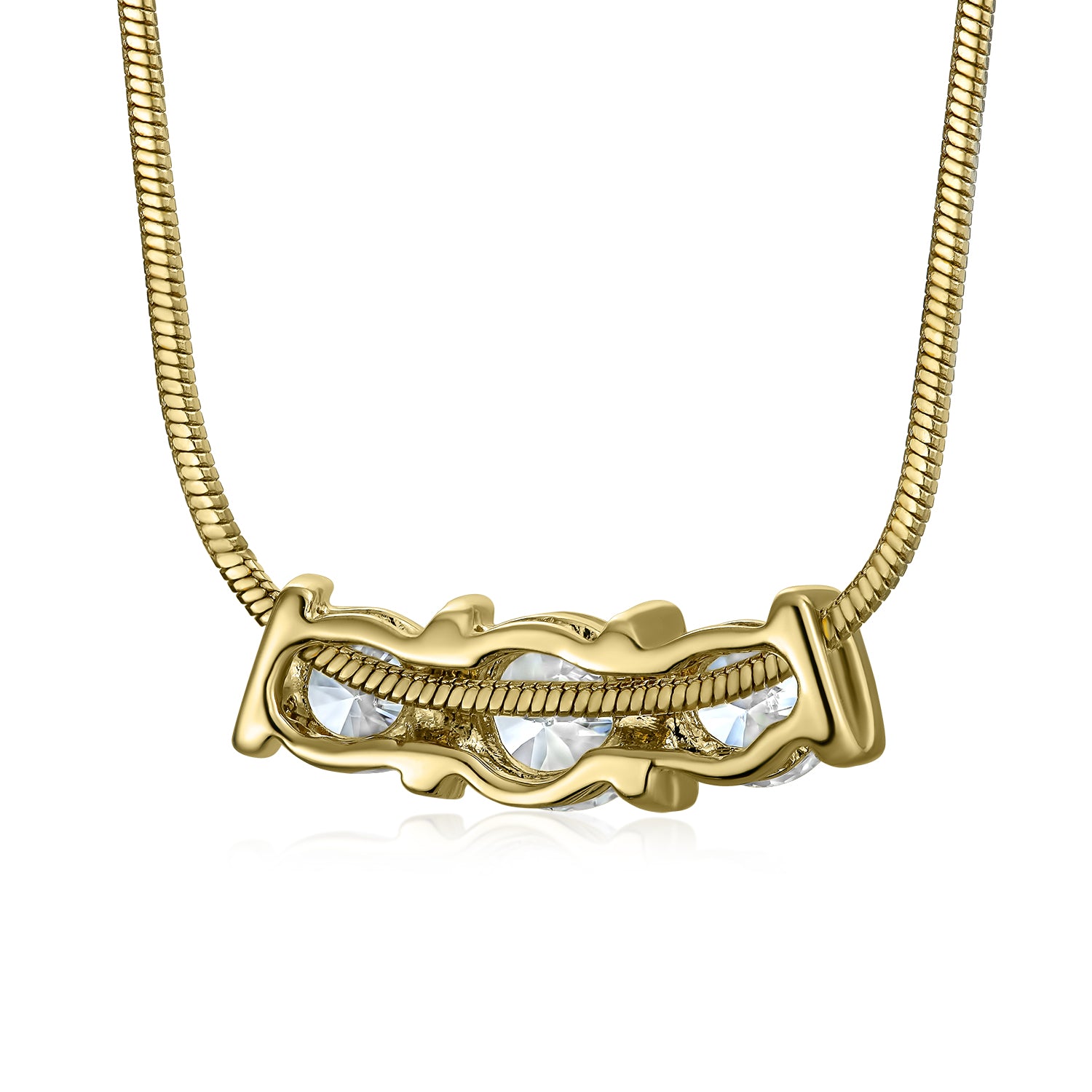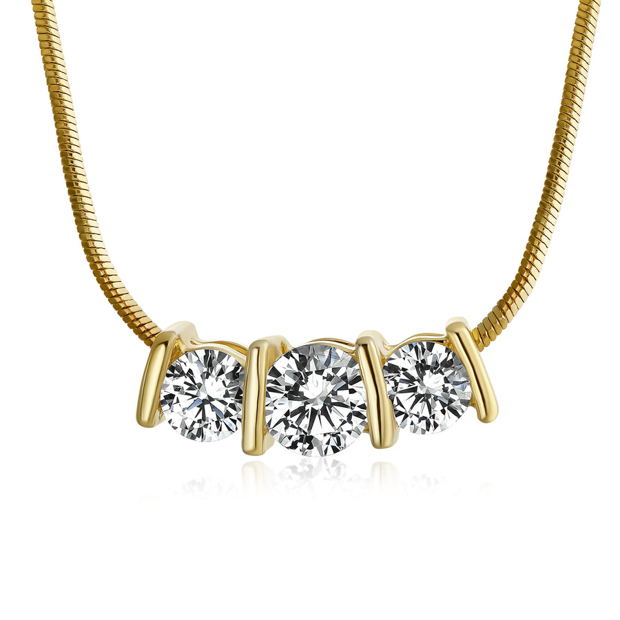 - ELEGANT DESIGN - This captivating pendant necklace showcases a cherished past-present-future motif with three dazzling round cubic zirconias, offering a modern touch to elevate your bridal, prom, or formal attire.