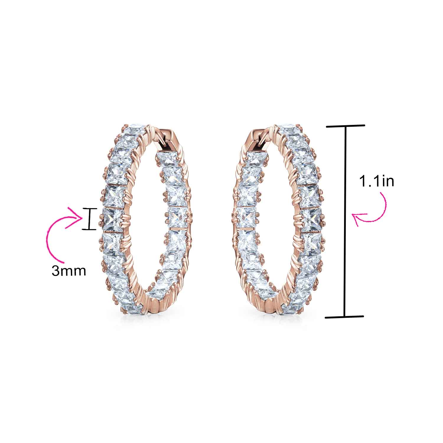 - For Pierced Ears, Hinge With Notched Post, Measure: Each CZ: 3 MM L x 3 MM W, 1.25 Diameter, Weight: 8.2 Grams, Material: Anti-Tarnish Rhodium Plated Brass, Cubic Zirconia HYPOALLERGENIC - Lead free Nickle-free.