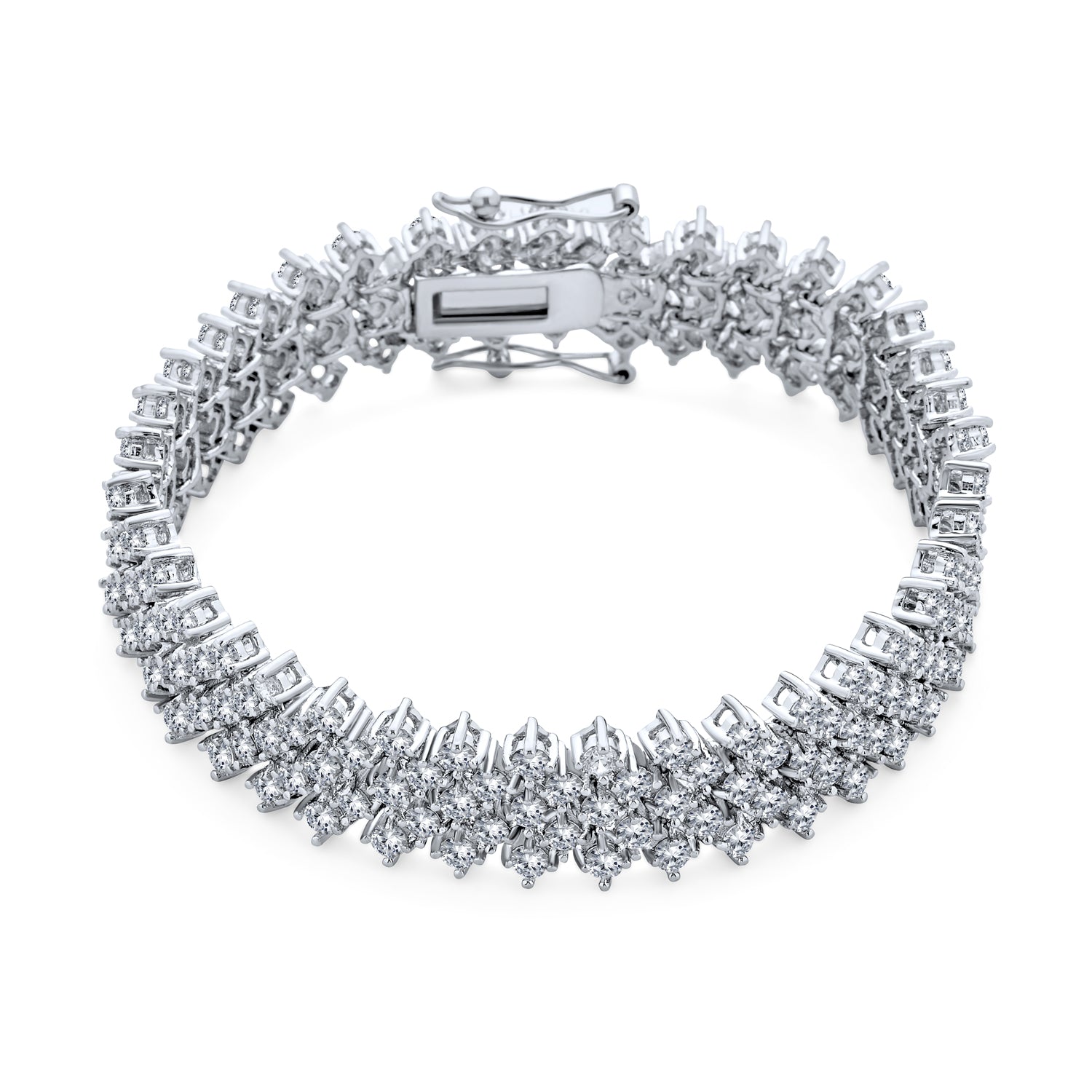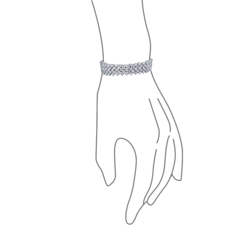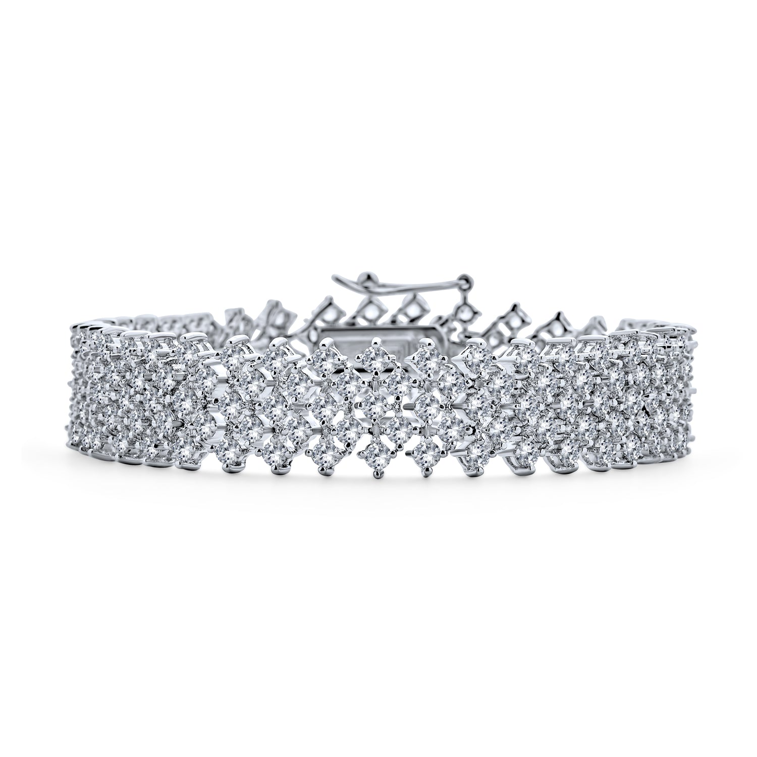 Multi Row Wide Cubic Zirconia CZ Statement Bracelet Silver Plated