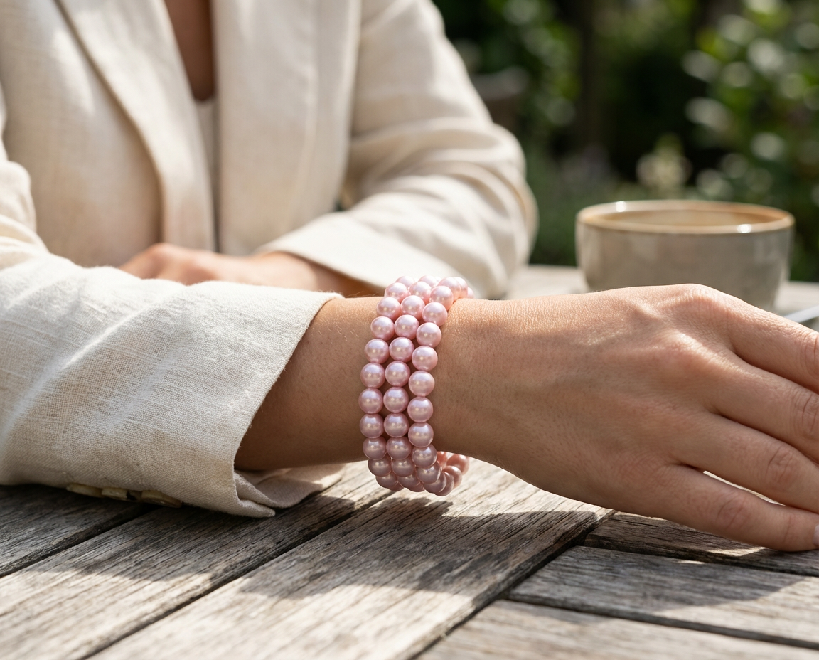 - Introducing our elegant pink Simulated Pearl stretch bracelet, a versatile accessory for any outfit. Perfect for casual jeans or a little black dress, this bracelet adds a touch of class. Crafted with 10mm pink Simulated Pearls, it exudes a luminous glow. The stretchable elastic nylon ensures a perfect fit and all-day comfort. Ideal for weddings, these affordable pink Simulated Pearl bracelets make perfect bridesmaids gifts. Your bridal party will look sensational and cherish these mementos. Don't miss this sophisticated June birthstone bracelet. Order now and enjoy timeless Simulated Pearl beauty.