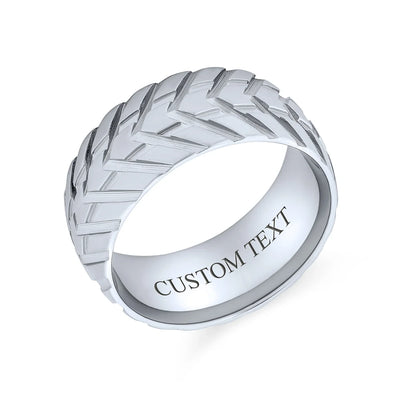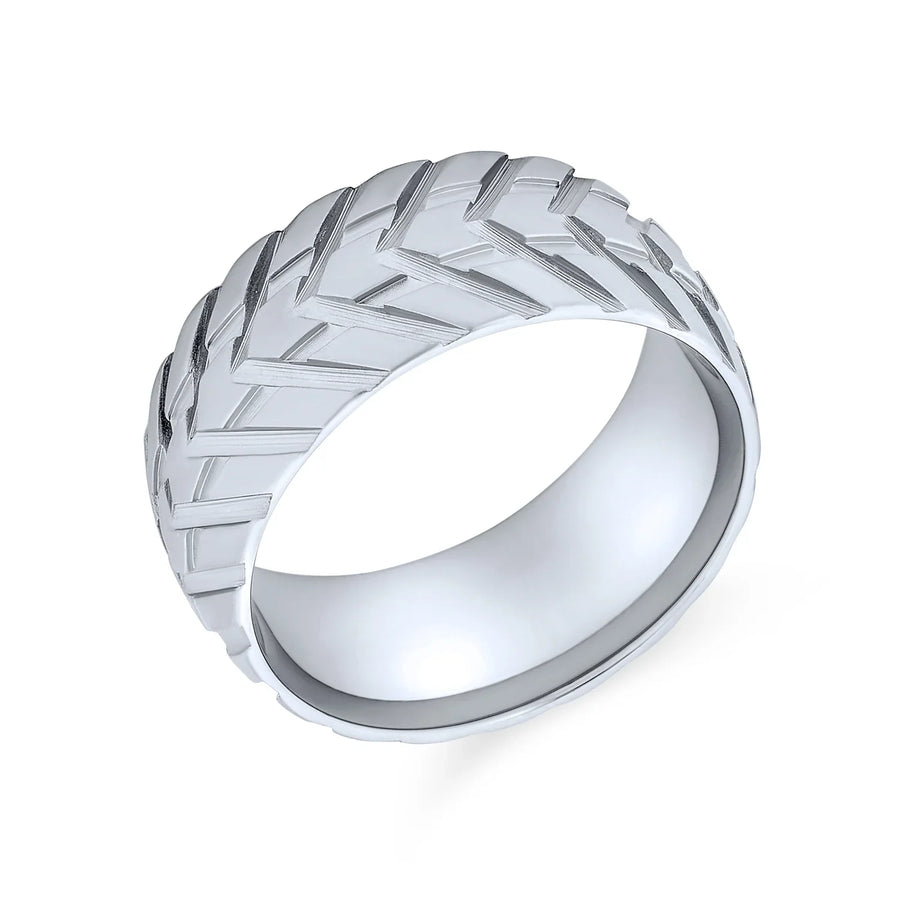 - A basic ring with a fashion-forward style, featuring an eye-catching black and white contrast. The bold black resin inlay stripe runs along the center of the 6mm wide ring, complementing the combination finish. The inner shank is domed and rounded for a comfortable fit. These comfort fit bands put less pressure on the finger, making them a better option than traditional fits. Durable, scratch-proof, and hypoallergenic, this ring offers a new edge to jewelry innovation. Modern and extraordinary, it’s sure to delight your man!