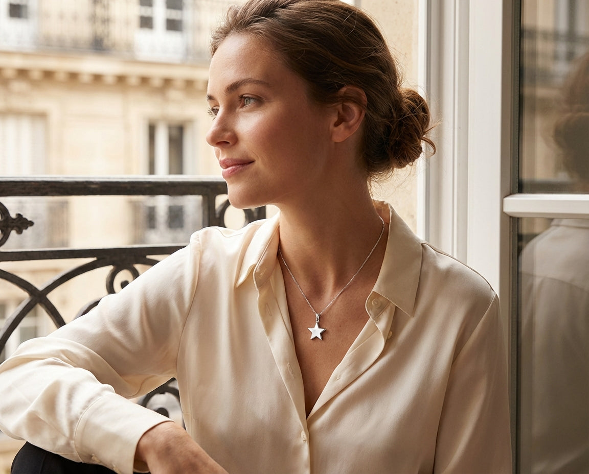 - Shine day or night with this .925 Sterling Silver star pendant necklace. The 16-inch chain and polished star add elegance. Perfect for formal or casual events. Ideal gift for women who love star jewelry. Enhance any collection with this elegant star pendant. Get yours today or gift it to loved ones.