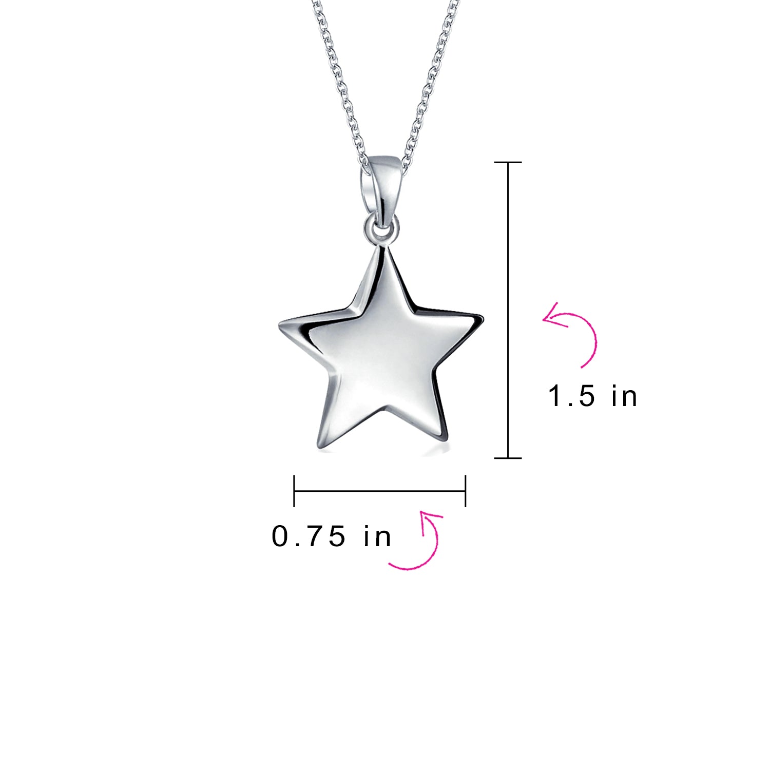 - Celestial Charm: Elevate your style with this stunning sterling silver dangle puff star necklace, featuring a patriotic, puffy, five-point star motif. Gleaming in high polished sterling silver, this accessory adds a touch of star power to every outfit. Perfect for those who love celestial style, this necklace is a must-have addition to any jewelry collection.