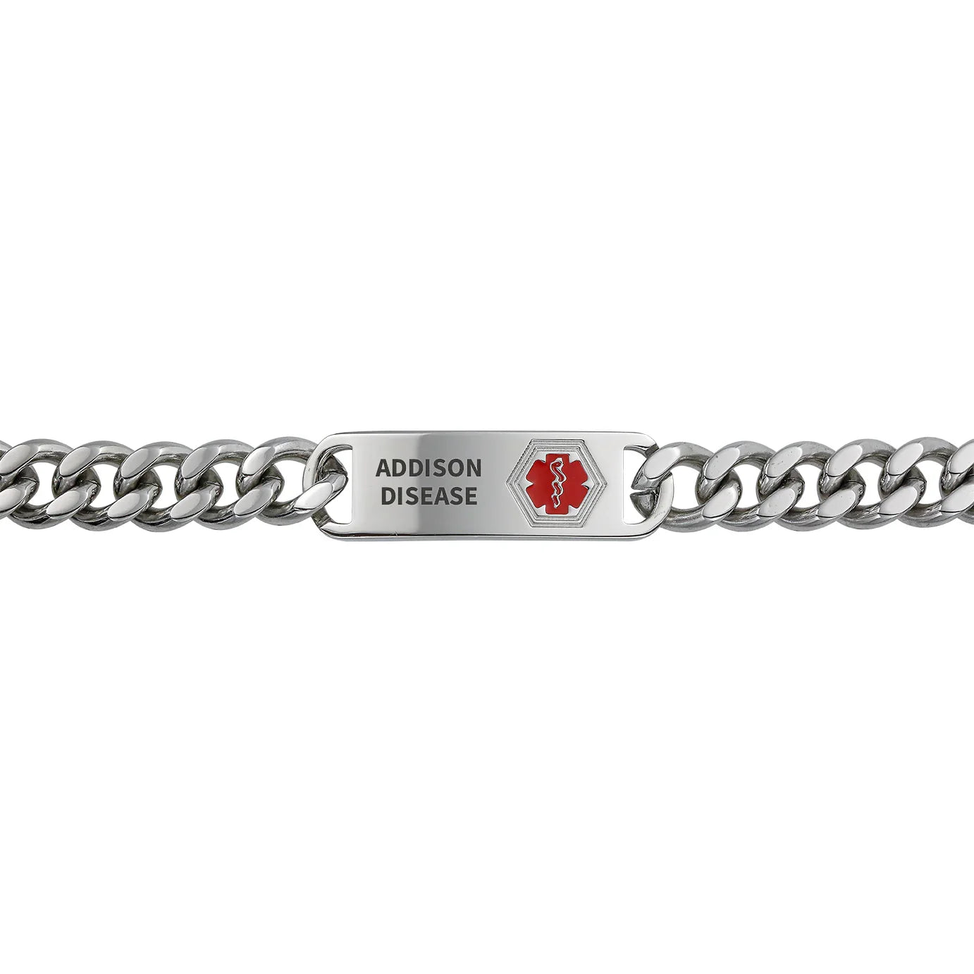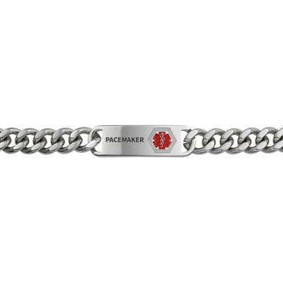 • Elevate your style with this exquisite stainless steel men's ID bracelet. The sleek finish and substantial weight further enhance its classic appeal.