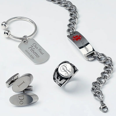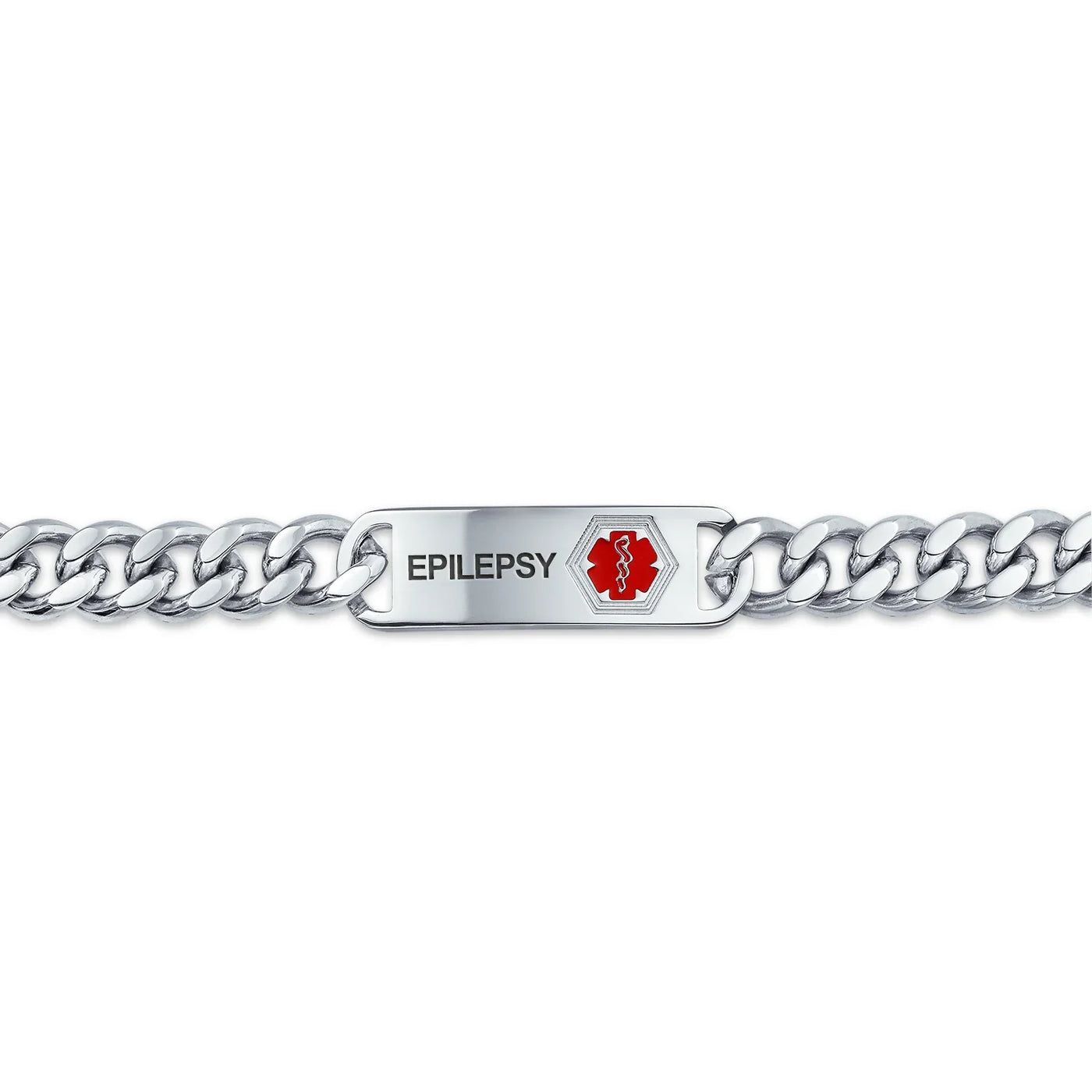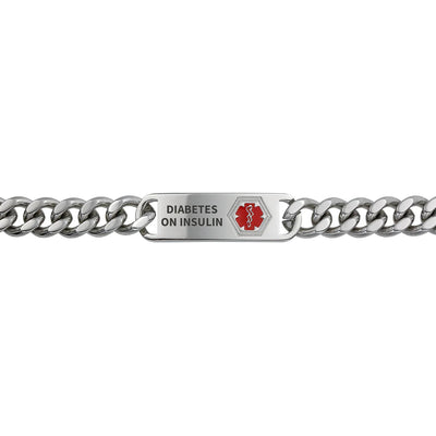 • Discover our Classic ID bracelet, crafted from durable stainless steel. Its sophisticated tile detail adds timeless style and elegance. The 8.5-inch bracelet features a secure interlocking snap clasp. Elevate your look with this exquisite, modern accessory.