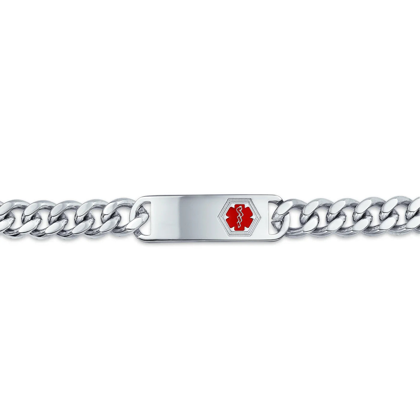Silver Tone Stainless Steel ID Bracelet for Menwith Name Tag Curb Style 8.5 Inch