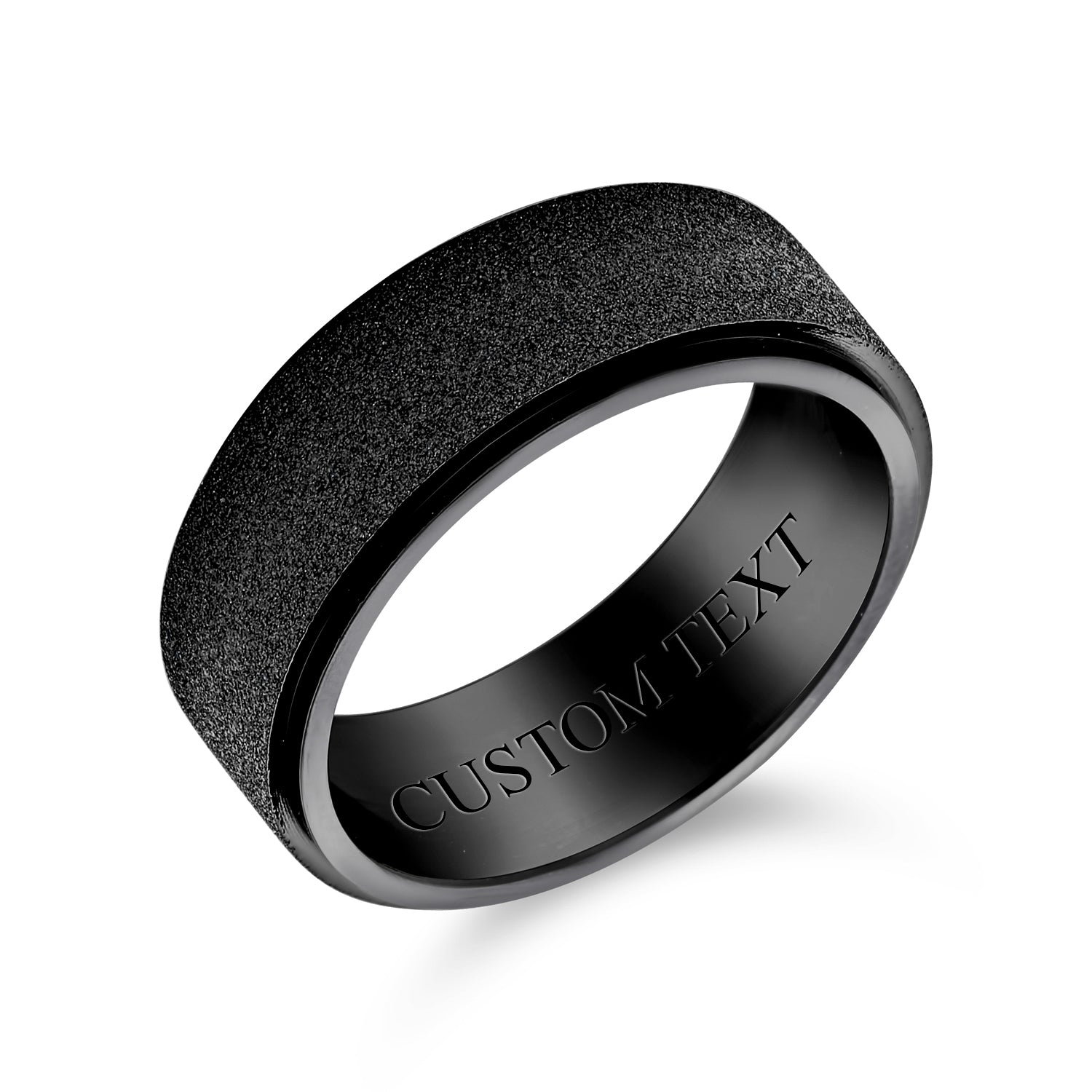 - STUNNING STYLE - middle of ring spins around for the beloved man in your life, a stunning wedding band. This beautifully designed wedding band features black band with matte finish top and beveled polished edge. A comfort fit finishes the handsome design for a perfect fit.