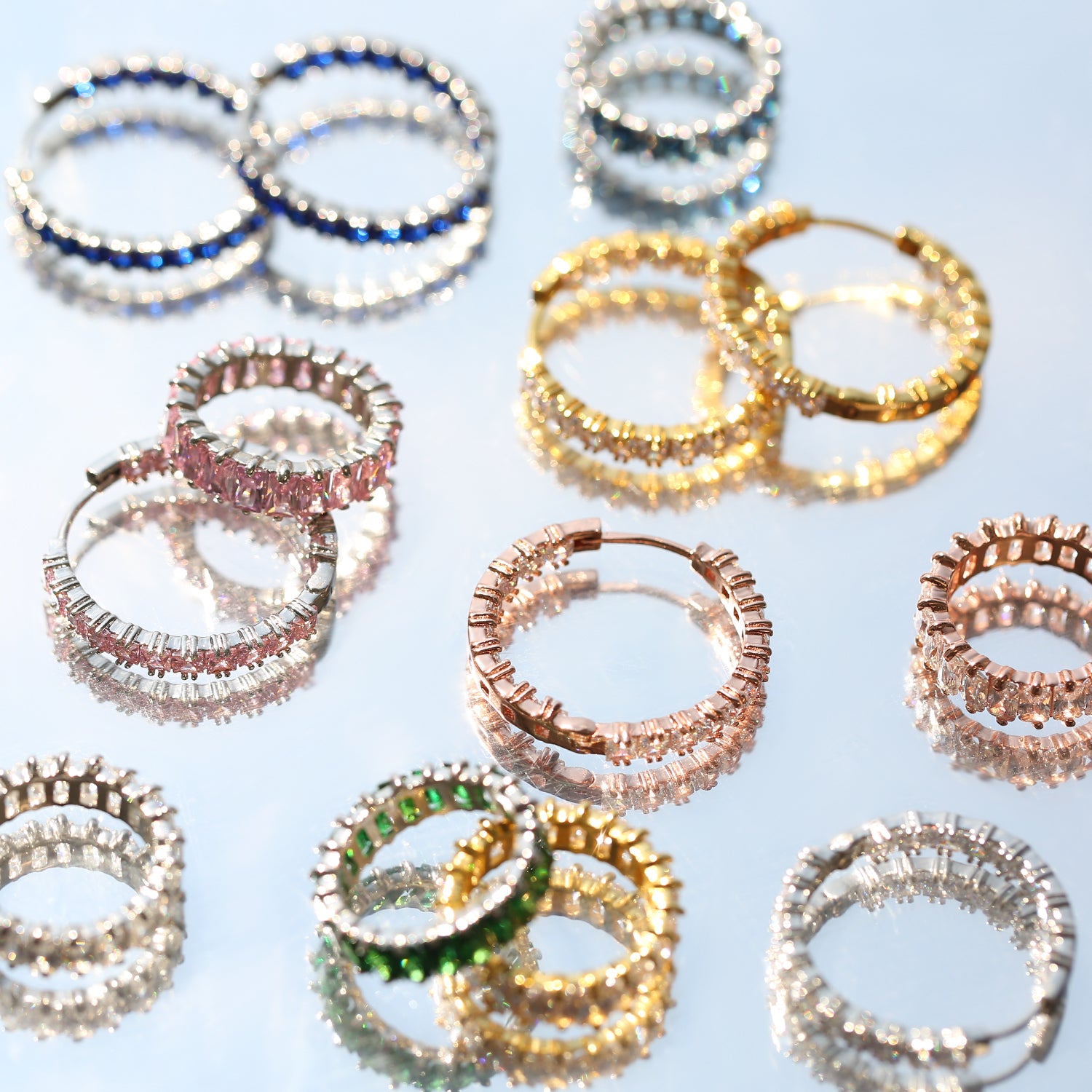 Cubic Zirconia Princess Cut CZ Inside Out Statement Hoop Earrings 1.25 Diameter