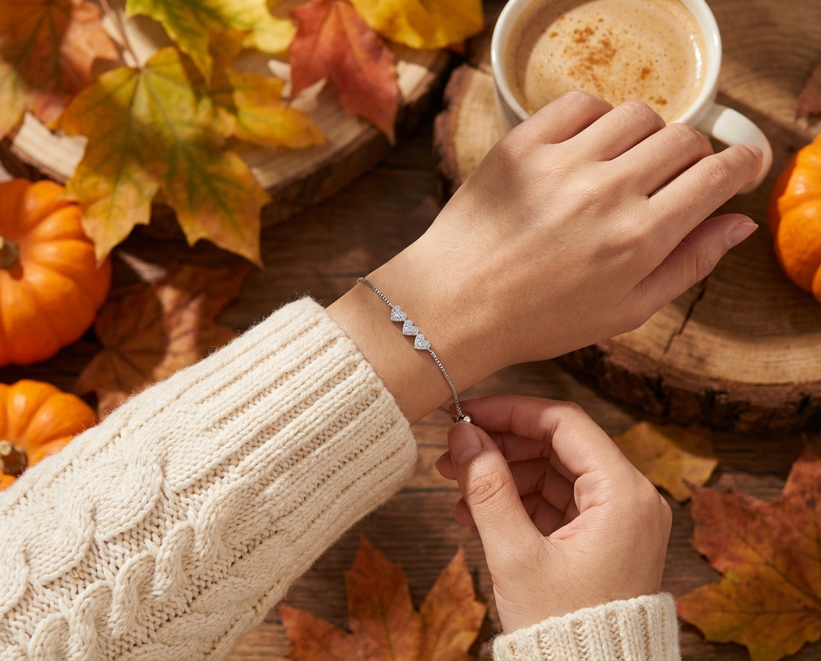 - Discover a modern twist on the classic wedding bracelet. This adjustable bracelet features four sparkling cubic zirconia hearts. The box chain offers a contemporary, clean look. Lariat styling with a silver-tone bead ensures a secure fit. Adjustable from 7 to 10 inches to fit any wrist. Perfect for diamond lovers!