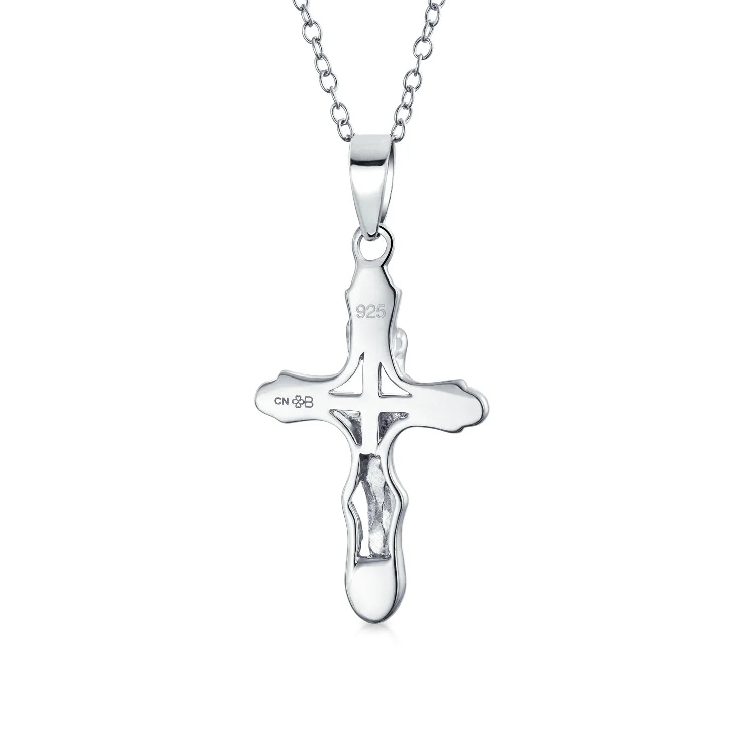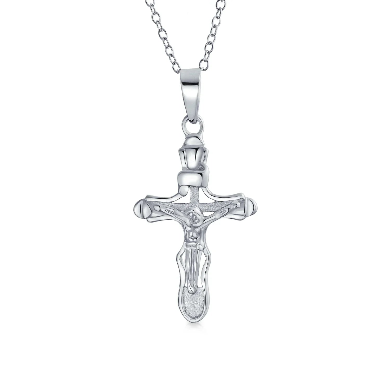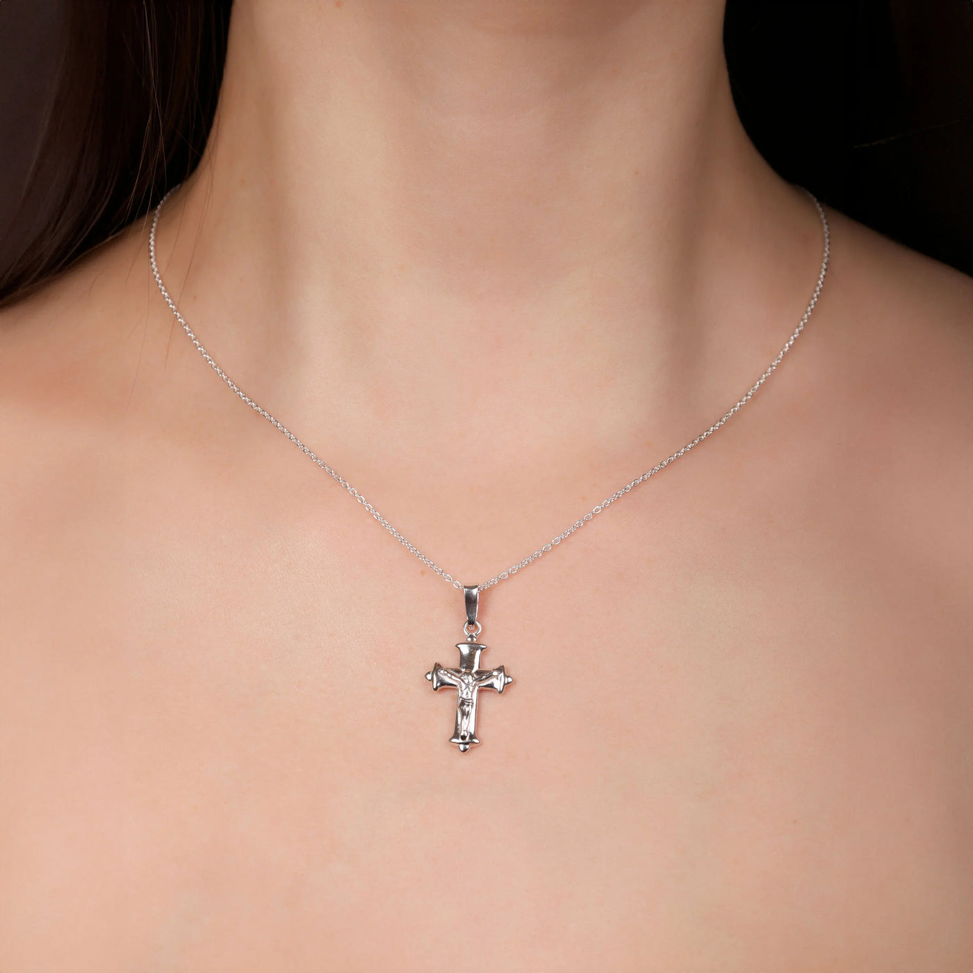 - Searching for the perfect gift? Our stunning Crucifix pendant necklace is ideal. Crafted with intricate detail, this dainty religious jewelry is lovely. Made with .925 Sterling Silver, it's lightweight and stylish. Suitable for women of all ages, it’s perfect for layering. Express your style by pairing it with other pendants or chains. With Easter approaching, shop for affordable jewelry gifts. Order today and make someone's day extra special.