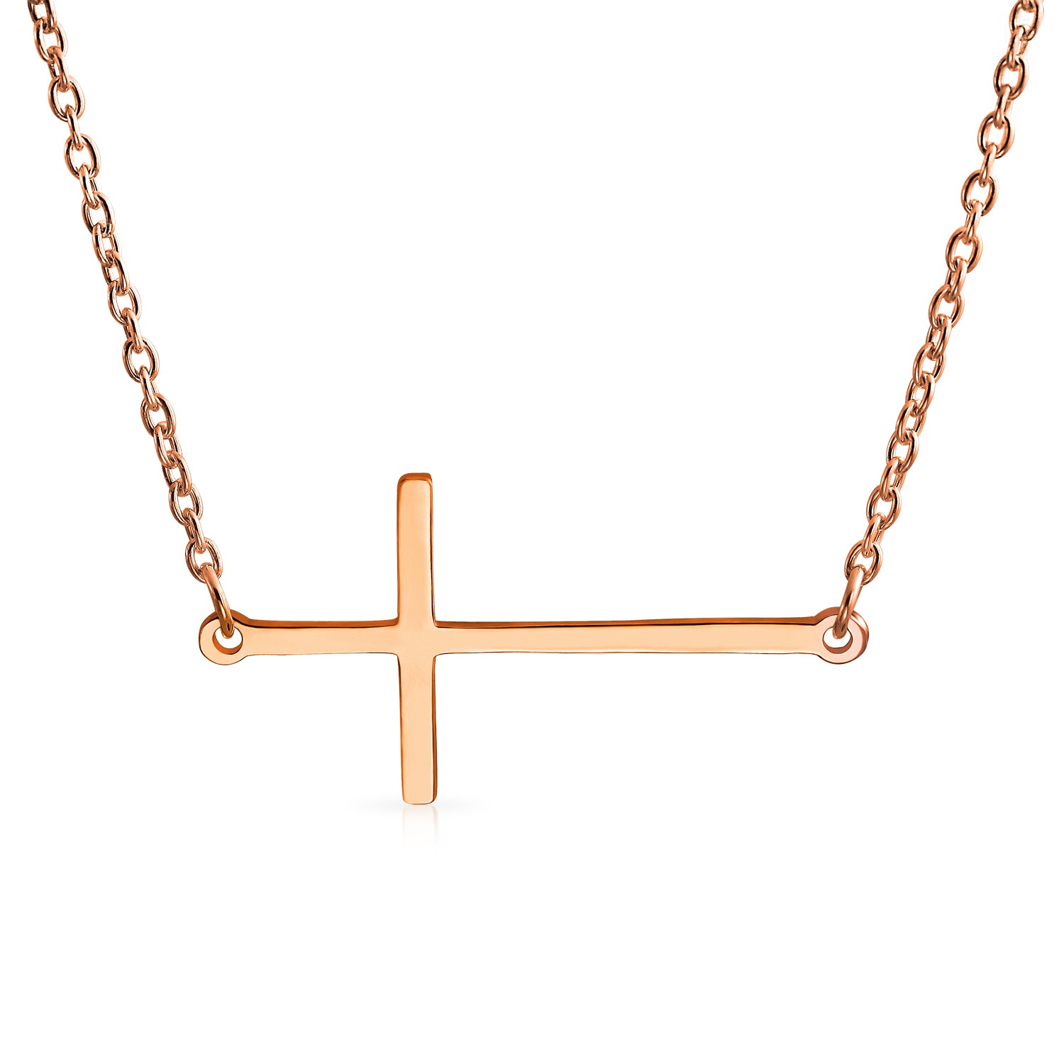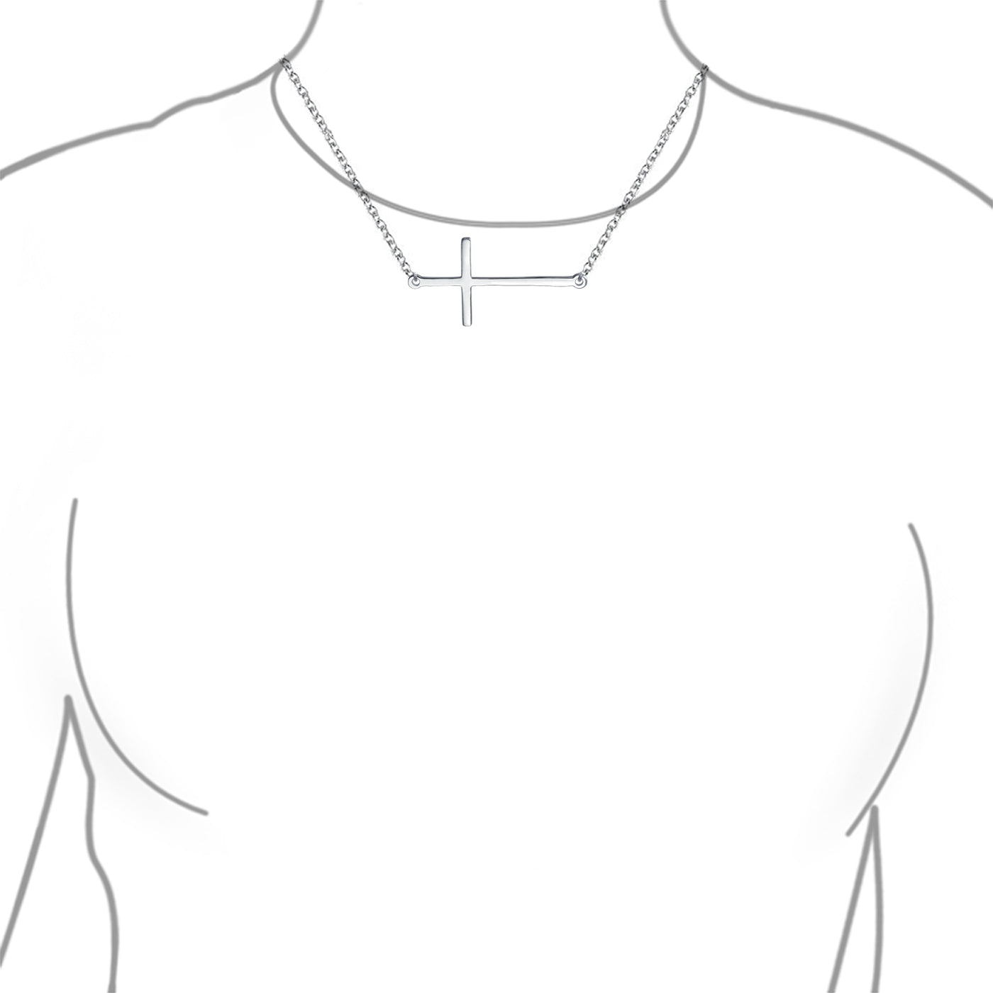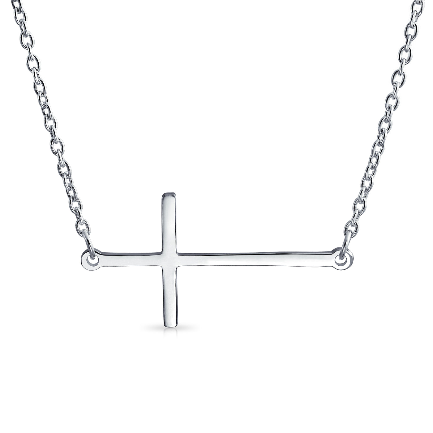 - Put your faith in your fashion. This .925 Sterling Silver cross necklace has a lets you show off your spirituality while staying in style. Made of polished silver, this religious jewelry features a delicate rolo chain and sideways cross design that is one of the hottest trends right now. With a simple yet sleek design, this spiritual jewelry can be worn in all sorts of places with all sorts of outfits. It also makes a perfect Christmas jewelry gifts that anyone would be glad to find under the tree. Say a prayer for this religious jewelry and never be cross with your outfits again.