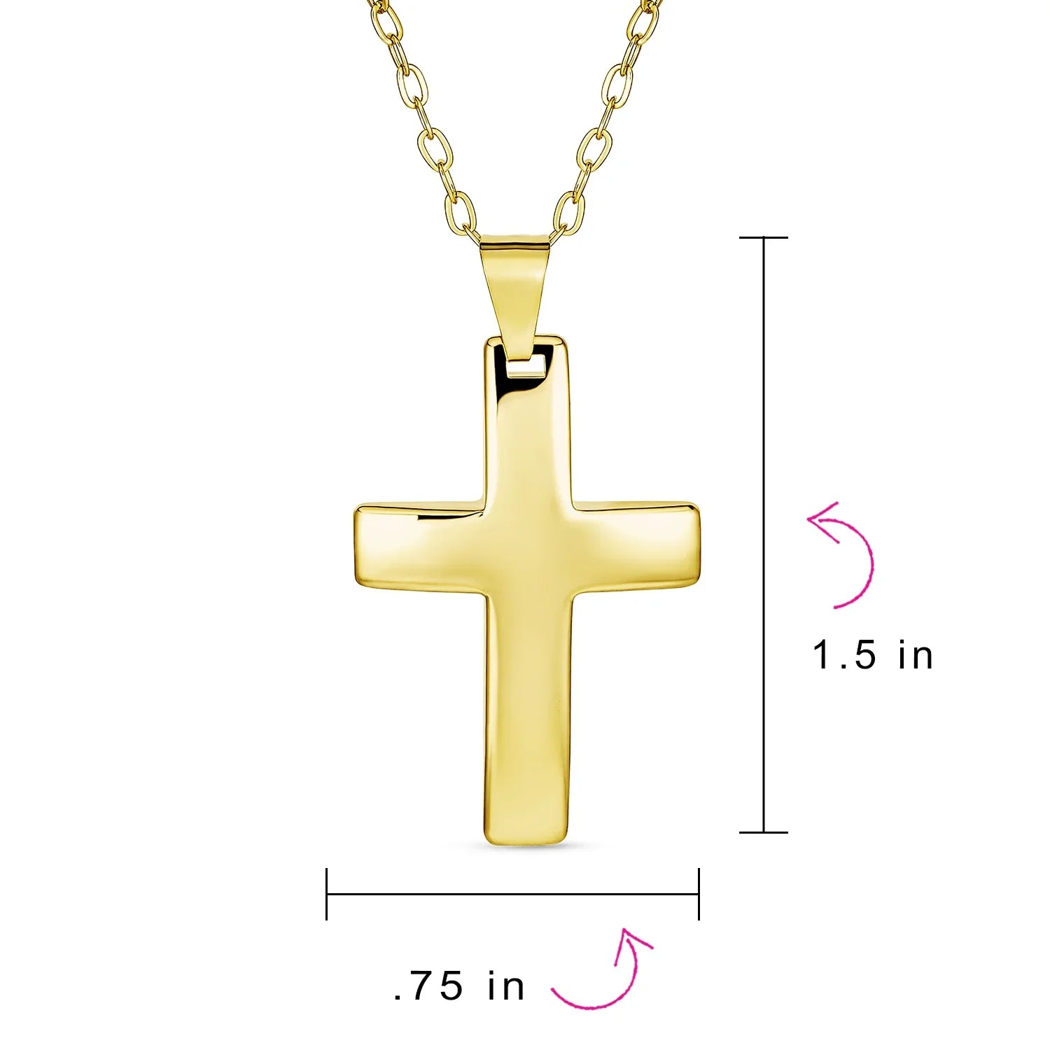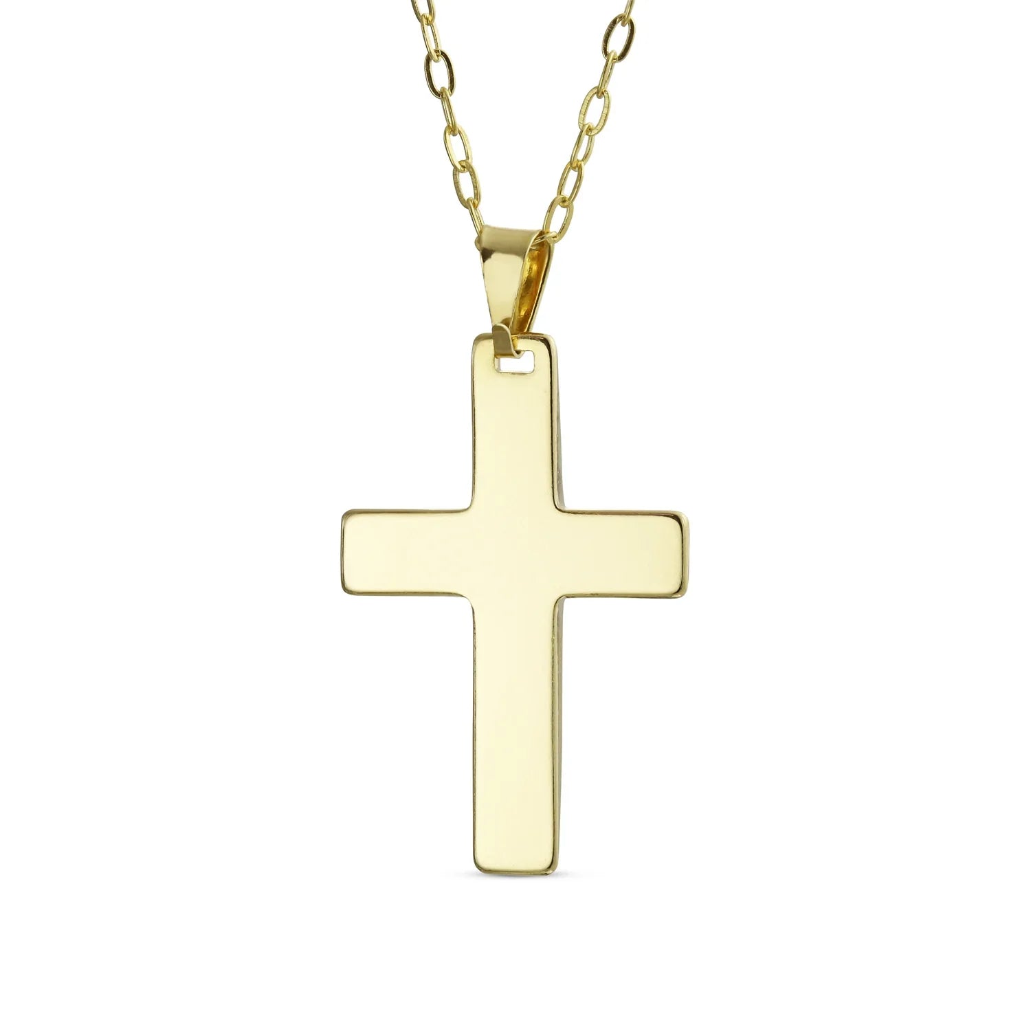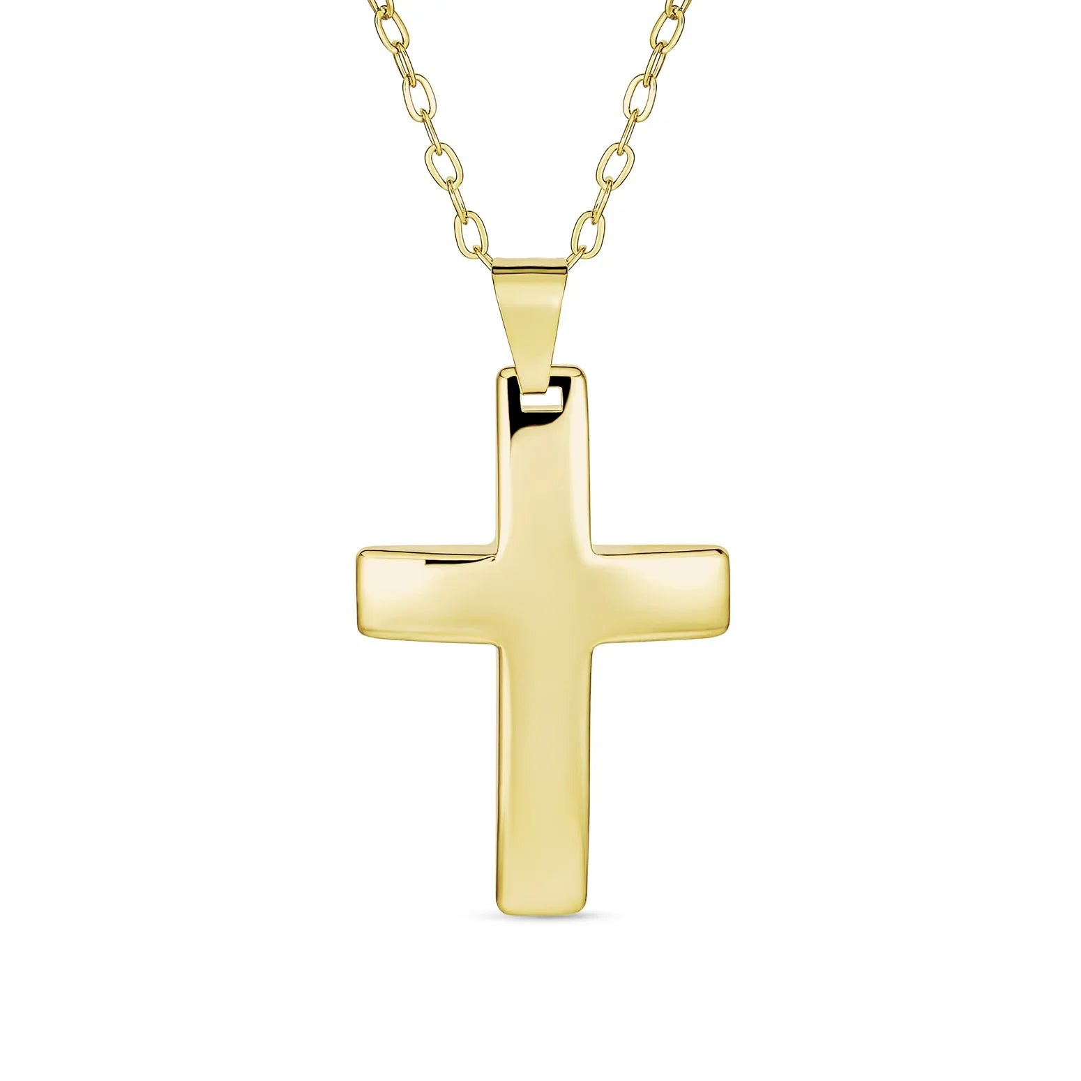 - STYLE FOR THE SOUL - Wear your faith close to your heart with this cross pendant in shining yellow gold plated. On a link chain in a versatile 18" length, this timeless Christian essential will become a jewelry-box favorite for years to come.