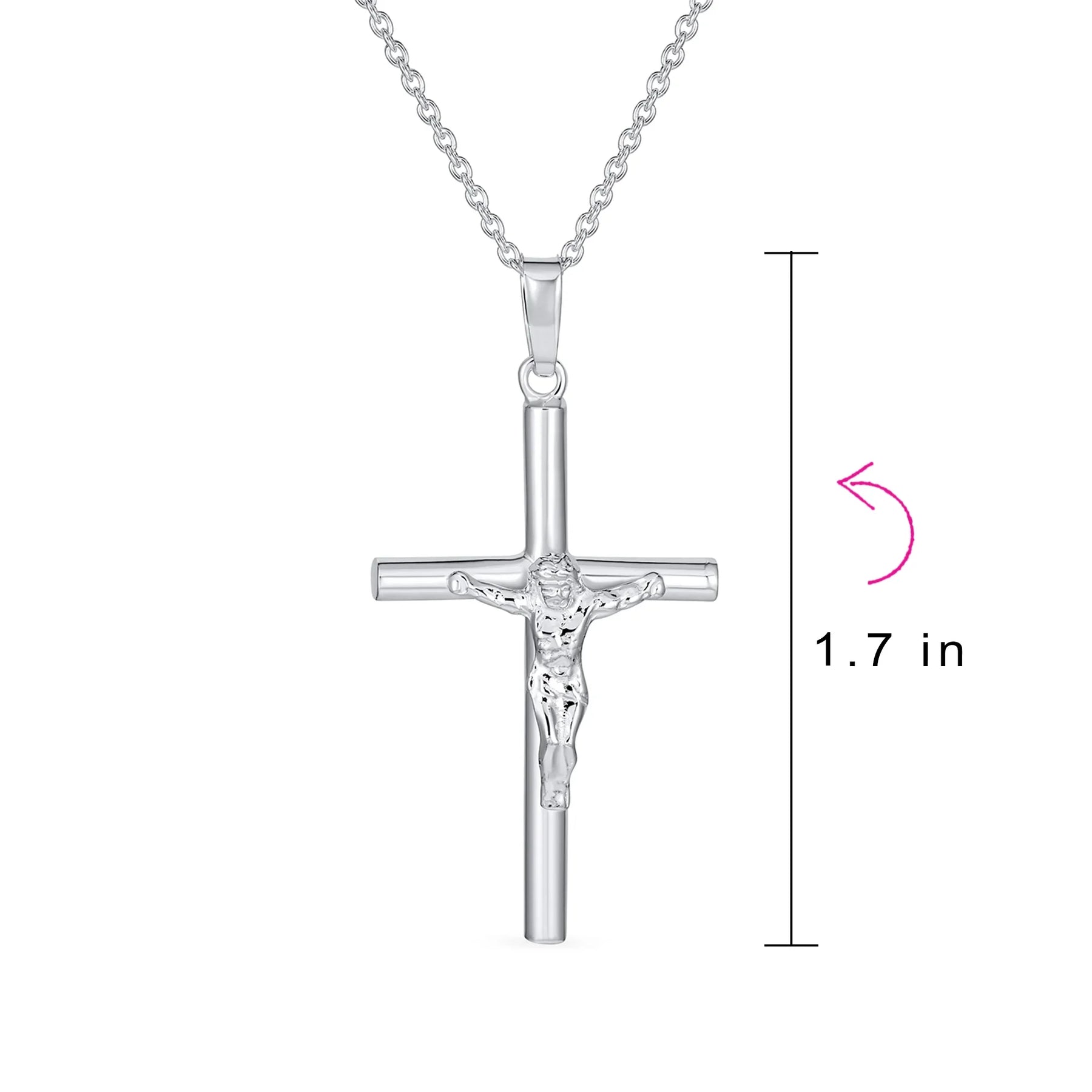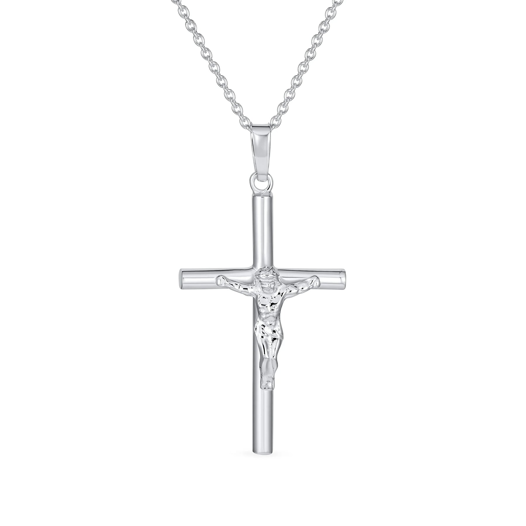 - Searching for the ideal gift this season? Discover our stunning Crucifix pendant necklace. This religious jewelry piece features an intricate yet simple design. Crafted from .925 Sterling Silver, it's perfect for men and women of all ages. Its comfortable size and weight make it easy to wear. Pair it with other pendants or chains for a stylish, layered look. Ideal for Easter or any occasion, this affordable necklace will be cherished. Don't wait, order now and make someone's day extra special.