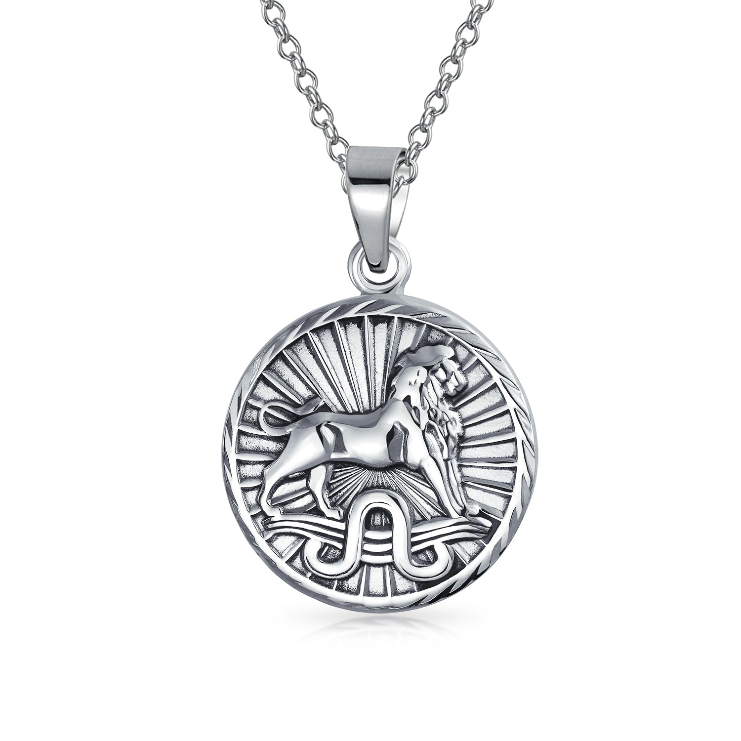 - Made out of solid .925 Sterling Silver, this horoscope necklace features the word Leo on top of the iconic Leo lion.