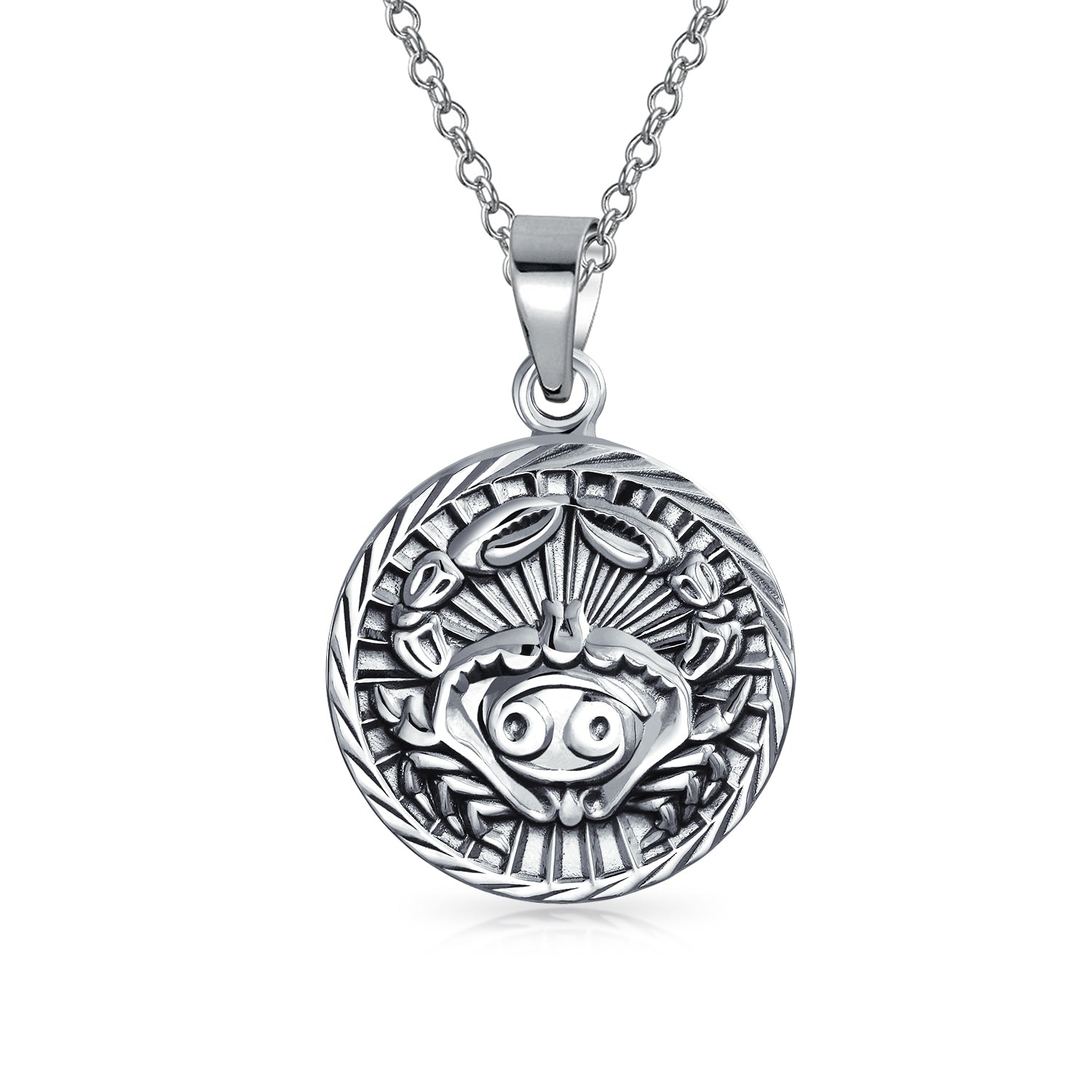 - STUNNING DESIGN - If you know an intuitive Cancer with a great sense of fashion, give them the gift of a disc necklace. At 1.14in on an 18in chain, this sterling silver necklace is symbolic of those born between June 21st to July 22nd.