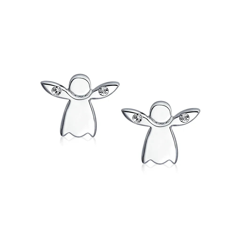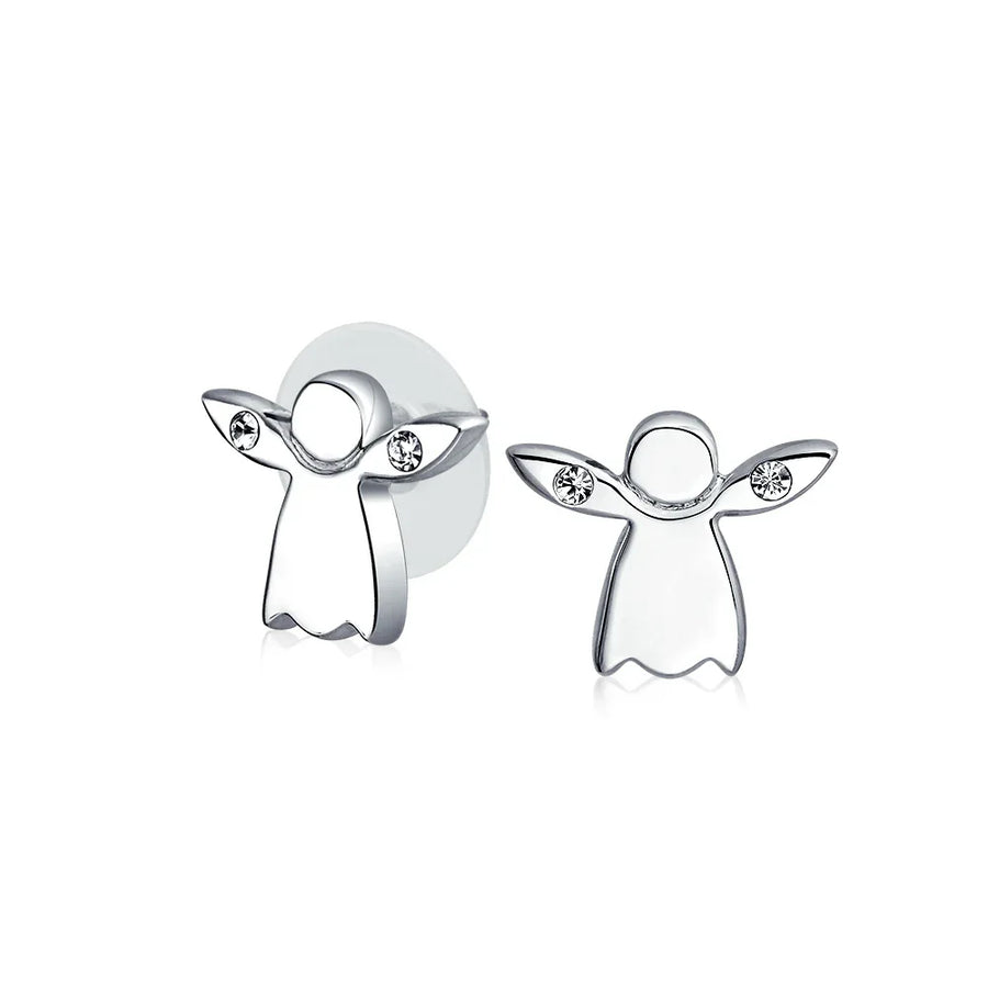 - Discover the perfect way to express timeless love with our stunning guardian angel stud earrings. These rhodium-plated brass earrings shine brilliantly. Ideal for women of all ages, they make a heartfelt gift. Affordable crystal angel earrings bring comfort and inspiration. Religious jewelry is a heavenly gift to cherish. Buy several pairs for all the angels in your life. Perfect for those who love dainty, meaningful jewelry.