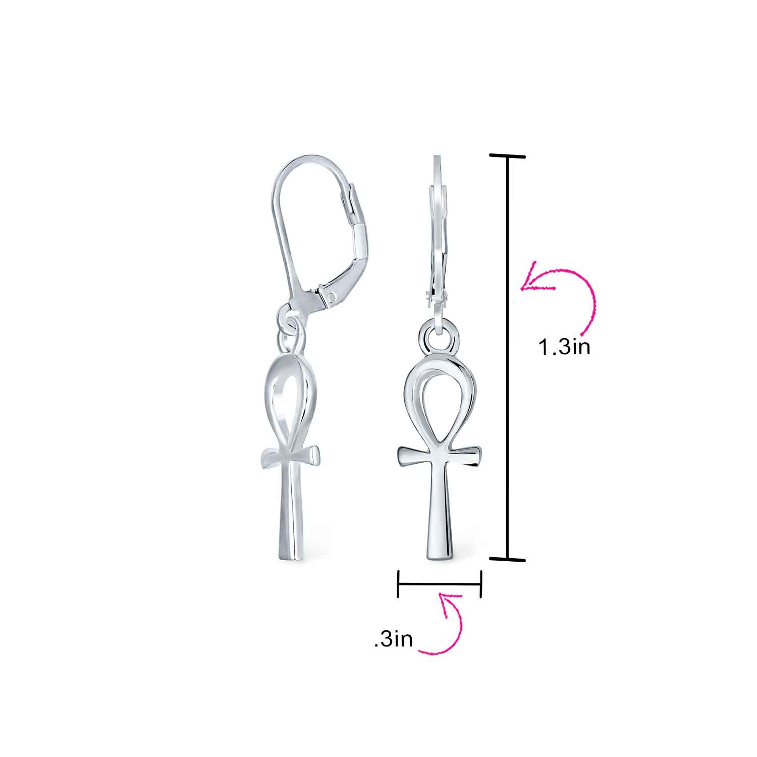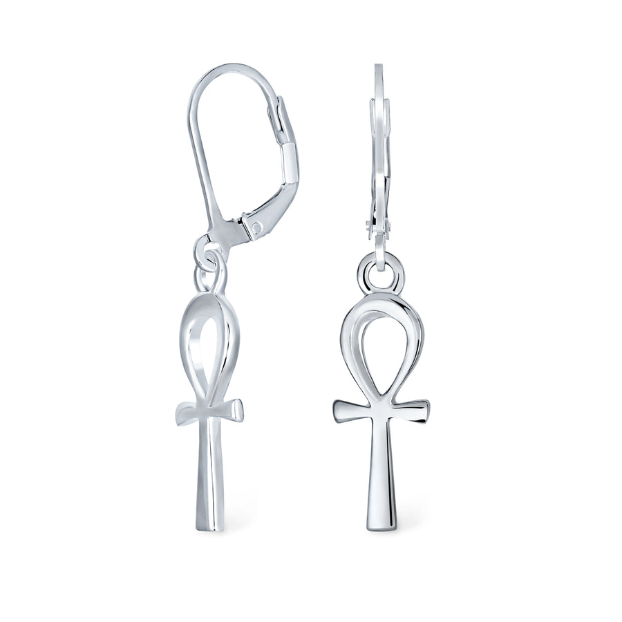 - Sterling silver ankh cross earrings feature an ancient Egyptian symbol for eternal life. A unique alternative to Christian cross jewelry. Traditional cross shape with a loop creates dainty religious earrings. Perfect gift for Christmas and Easter. Silver drop earrings are essential in any jewelry collection. Ideal for pierced ears.