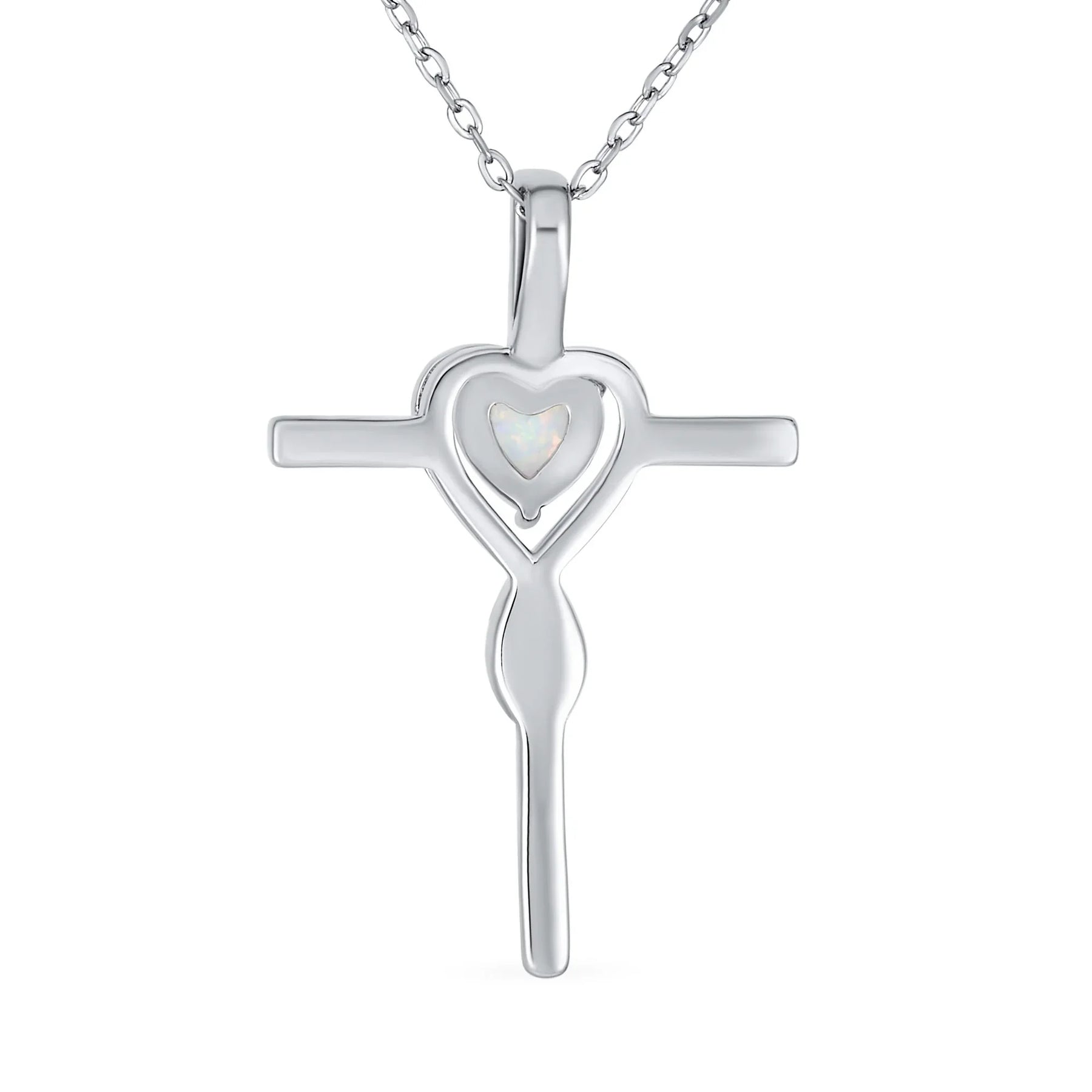 Timeless Faith Hope Love White Opal Heart Infinity Cross Pendant Necklace Silver - Bling Jewelry