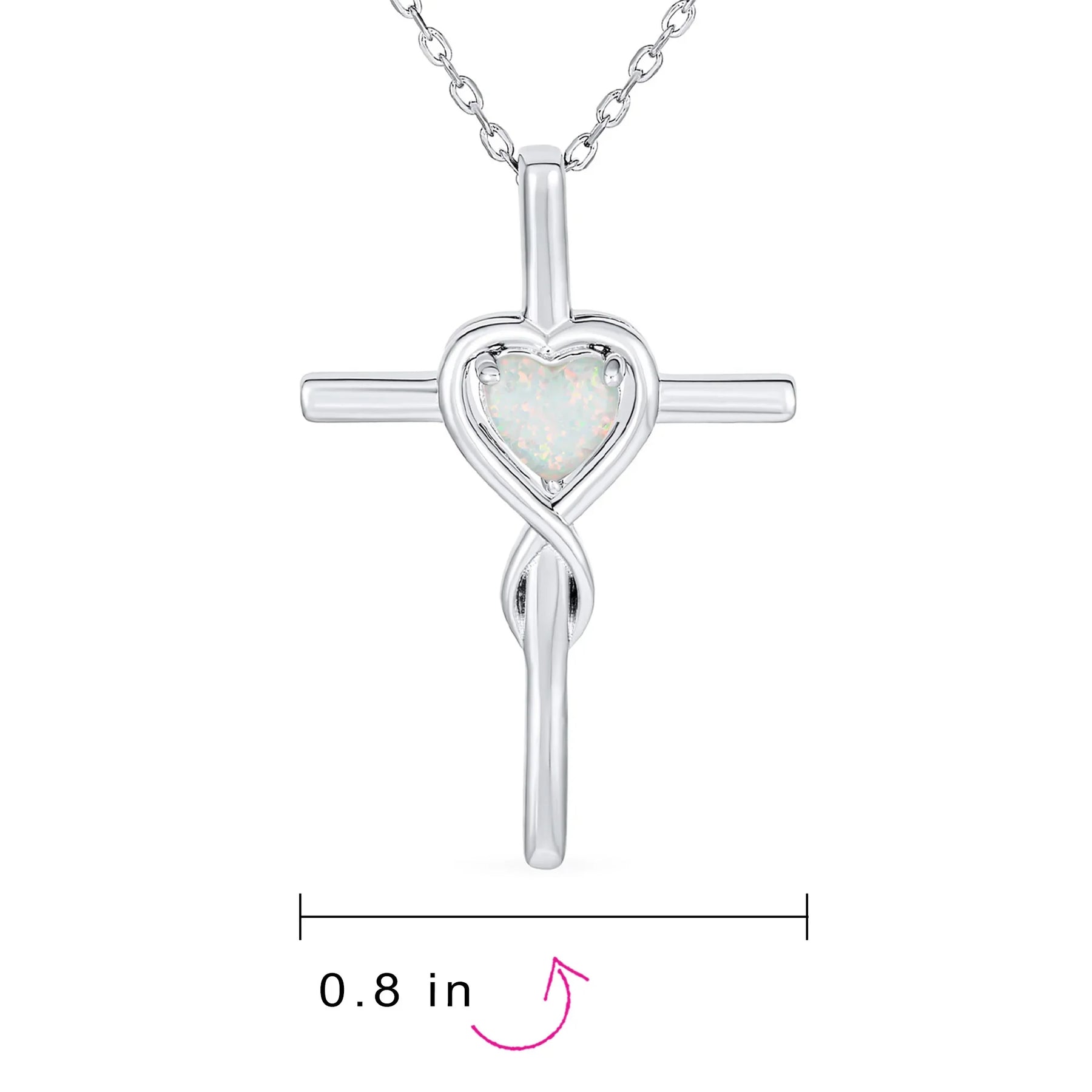 Timeless Faith Hope Love White Opal Heart Infinity Cross Pendant Necklace Silver