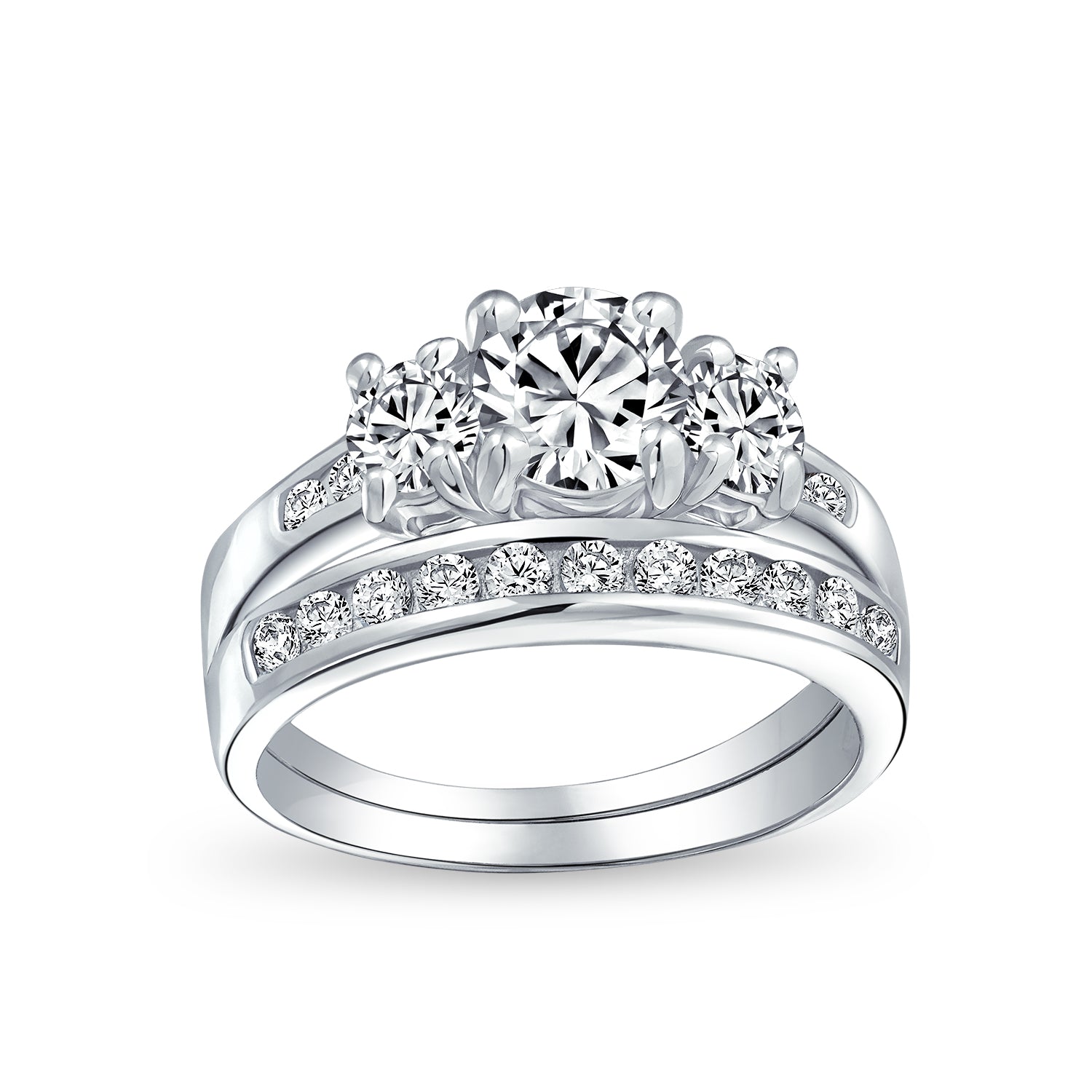 - Life is a series of precious moments. Capture them with this Past Present and Future Wedding Ring Set. Featuring a classic 1.5 CT round three-stone engagement ring and matching band. Prong setting ensures maximum security and style. This .925 sterling silver set sparkles like a thousand mirrors. The wedding band features detailed round cut CZs. Made of rhodium-plated sterling silver and cubic zirconia. A must-have 3-stone engagement and wedding set. Buy yours today!