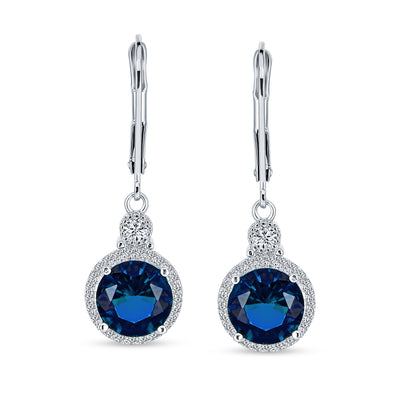 • Express love and loyalty with our simulated sapphire CZ dangle chandelier earrings. Rhodium plated brass with round simulated sapphire CZ and clear CZ accents. Ideal for September birthstone or bridal jewelry. Buy dangle chandelier earrings now!
