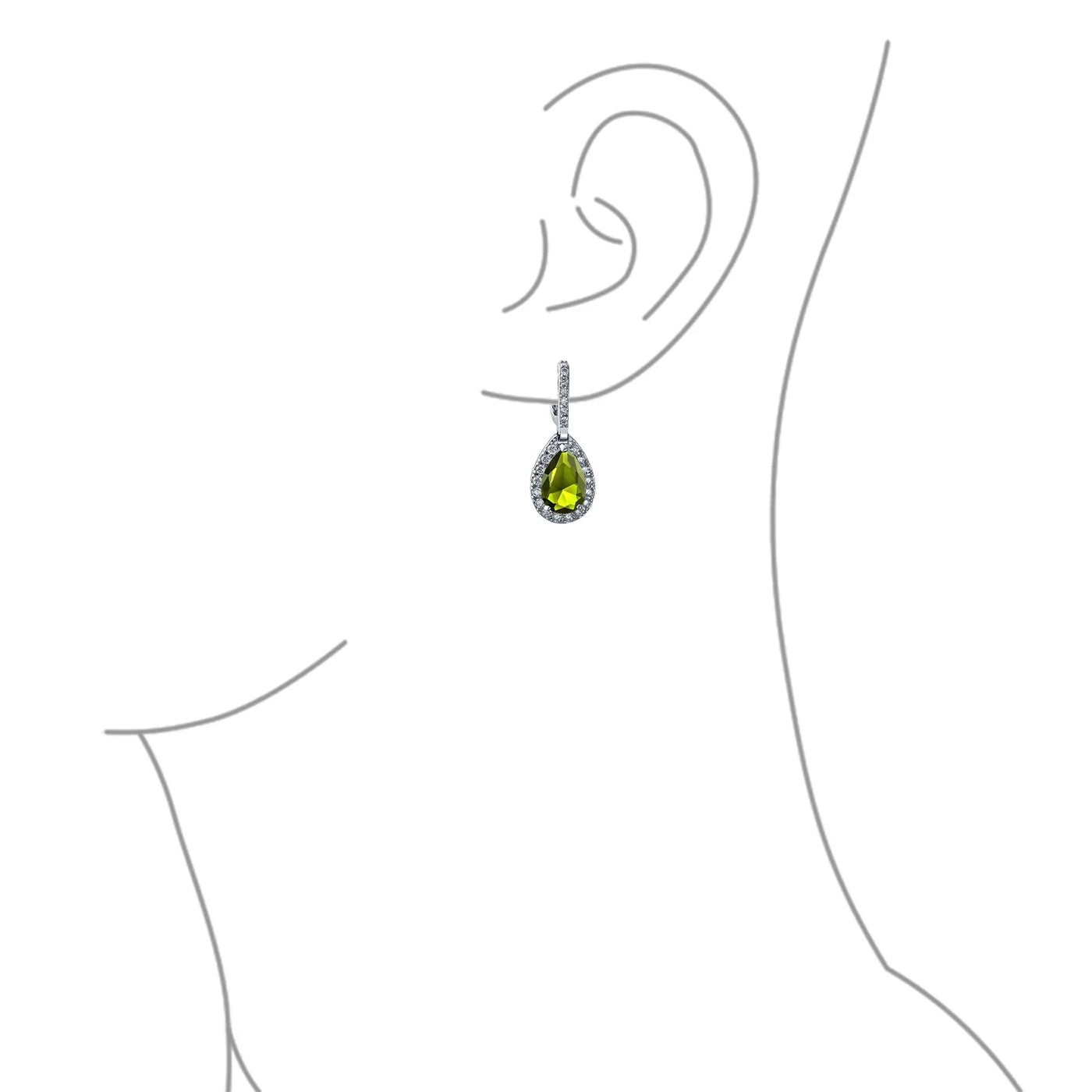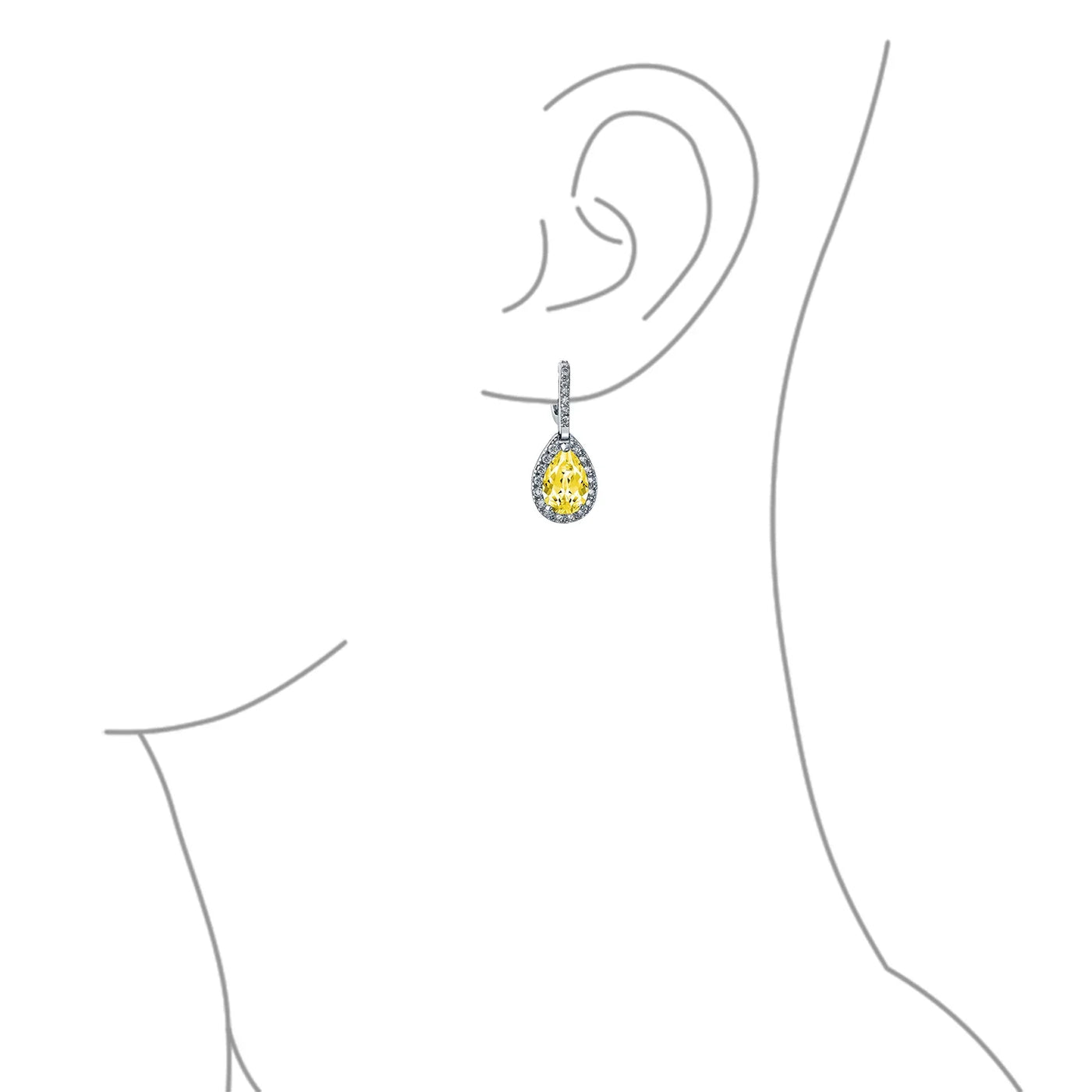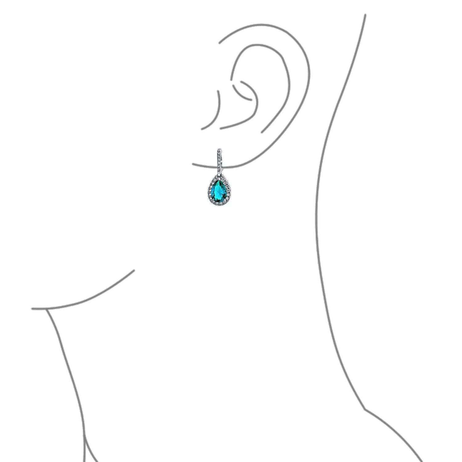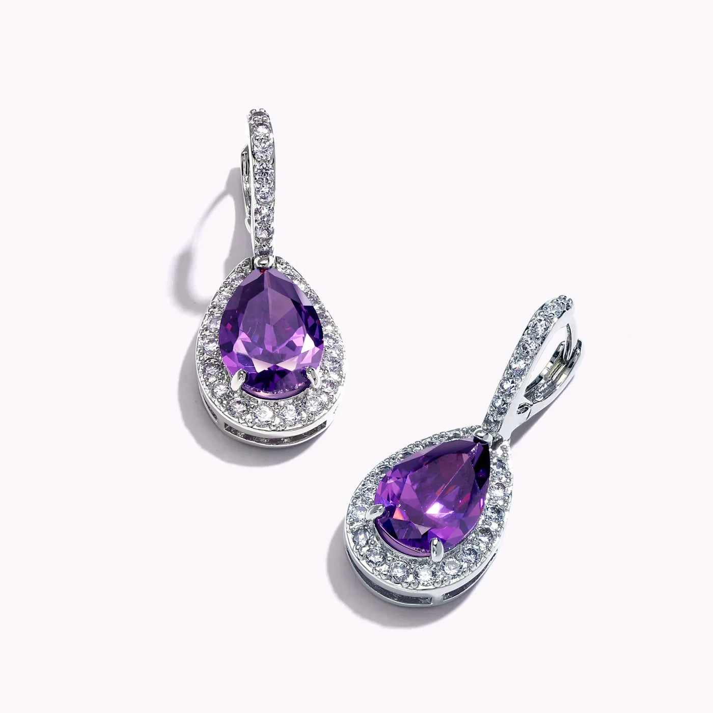 - Add some bright sparkles to ear your ears with these cz dangle earrings. Elegant and sophisticated, our drop earrings are crafted with rhodium plated brass and a glittering teardrop shape colored cubic zirconia stone, surrounded by small clear CZs. Feel like a queen with these birthstone earrings. For pierced ears only.