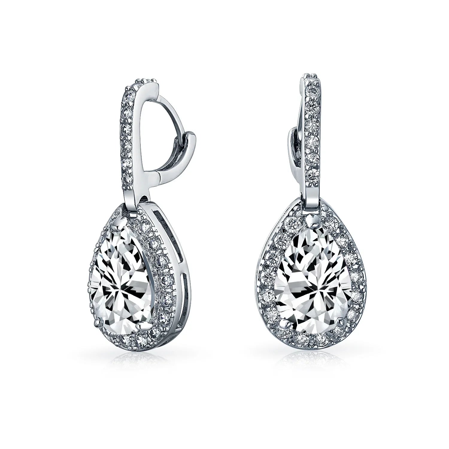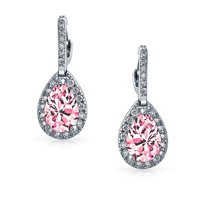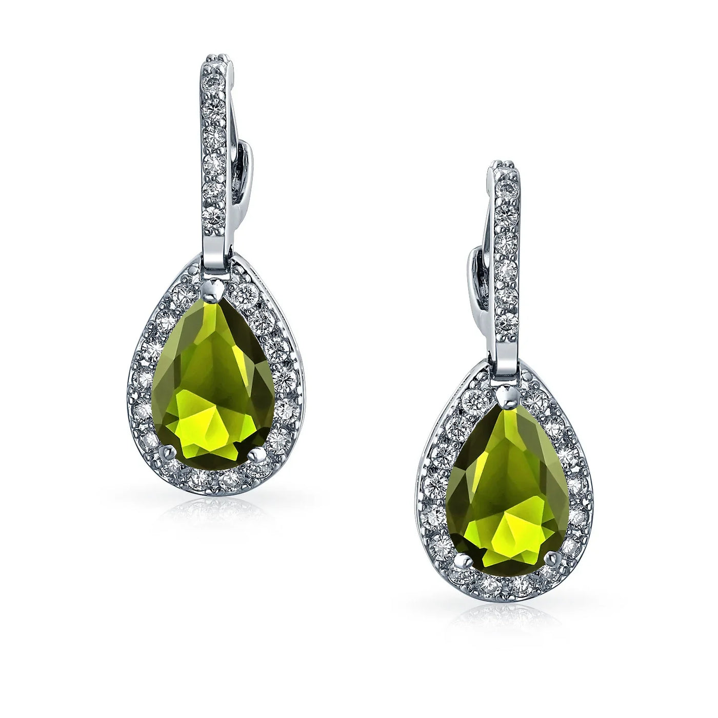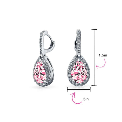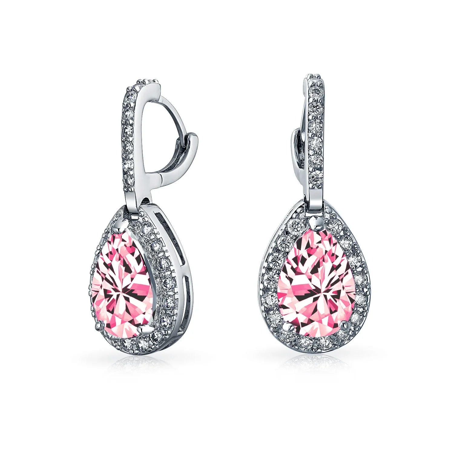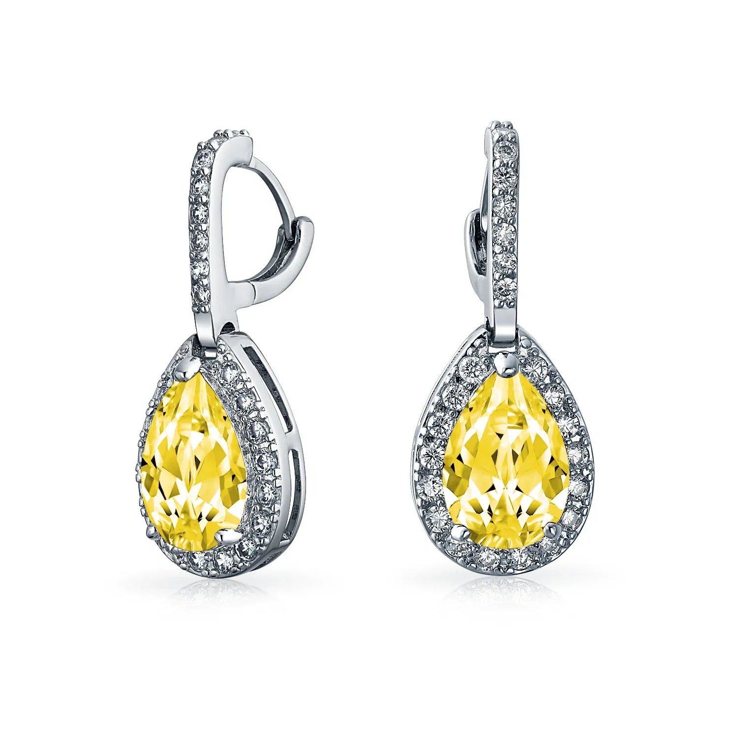 - Elevate your formal look with these stunning Formal Art Deco Estate Style Teardrop CZ dangling snap hinge huggies earrings. Perfect for prom, evening wear, cocktail parties, holidays, or as a bridal party gift. Available in a variety of simulated CZ birthstone month colors, these earrings are sure to add a touch of elegance to any outfit. Featuring a dazzling simulated-diamond AAA CZ teardrop centerpiece with a CZ halo, these earrings are a must-have for anyone looking to make a statement. Ideal for those with an April birthday, these earrings will give you a ravishing glow for any special occasion.