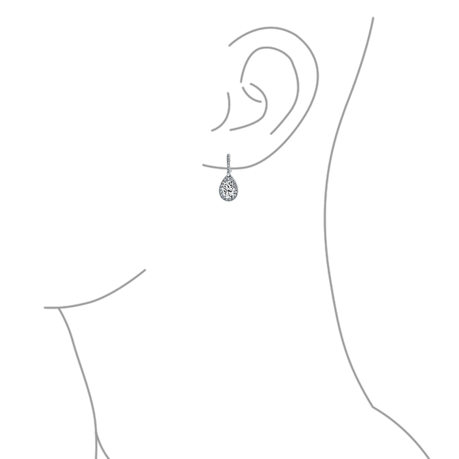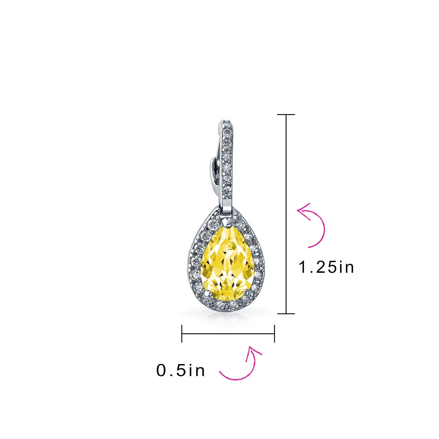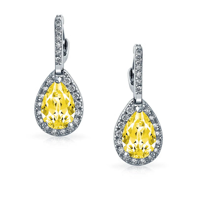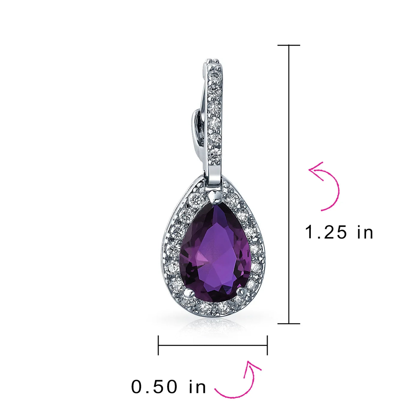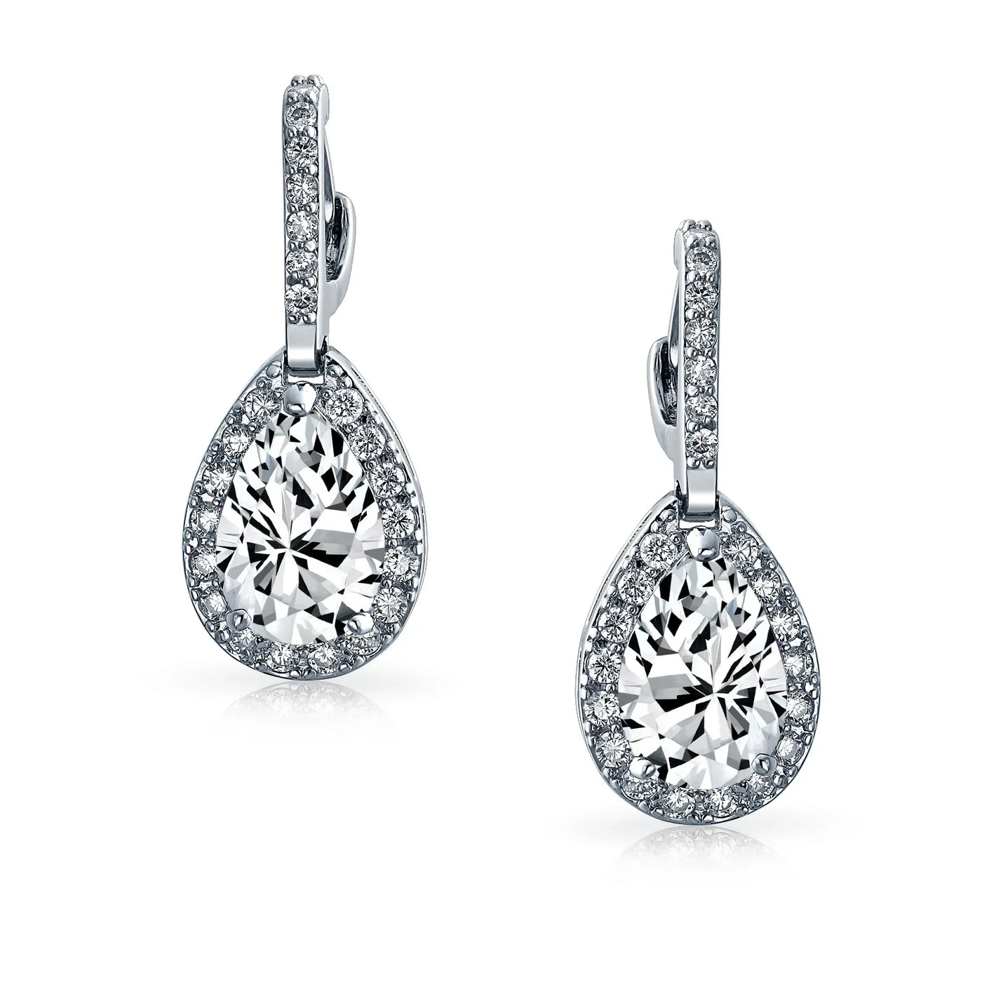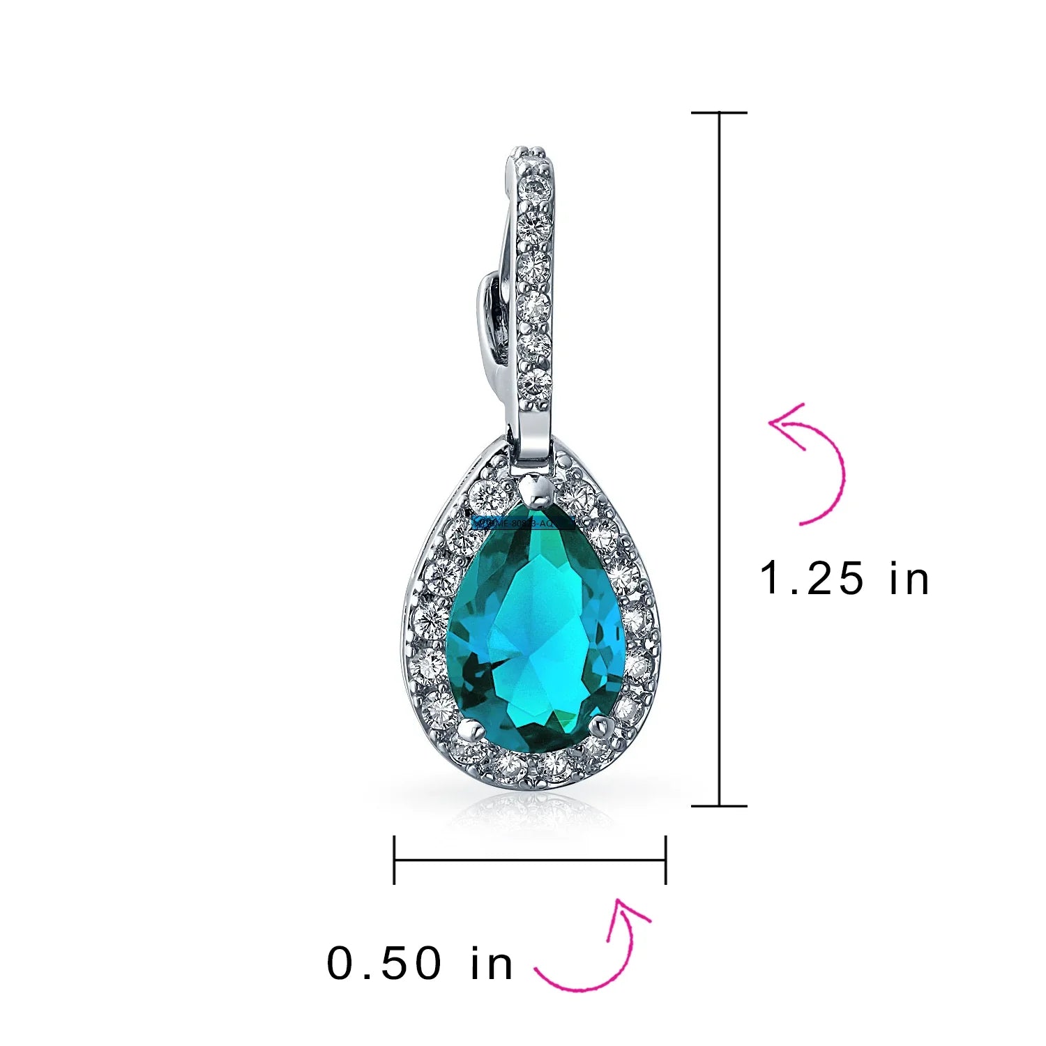 - Elevate your formal look with these stunning Formal Art Deco Estate Style Teardrop CZ dangling snap hinge huggies earrings. Perfect for prom, evening wear, cocktail parties, holidays, or as a bridal party gift. Available in a variety of simulated CZ birthstone month colors, these earrings are sure to add a touch of elegance to any outfit. Featuring a dazzling simulated-diamond AAA CZ teardrop centerpiece with a CZ halo, these earrings are a must-have for anyone looking to make a statement. Ideal for those with an April birthday, these earrings will give you a ravishing glow for any special occasion.