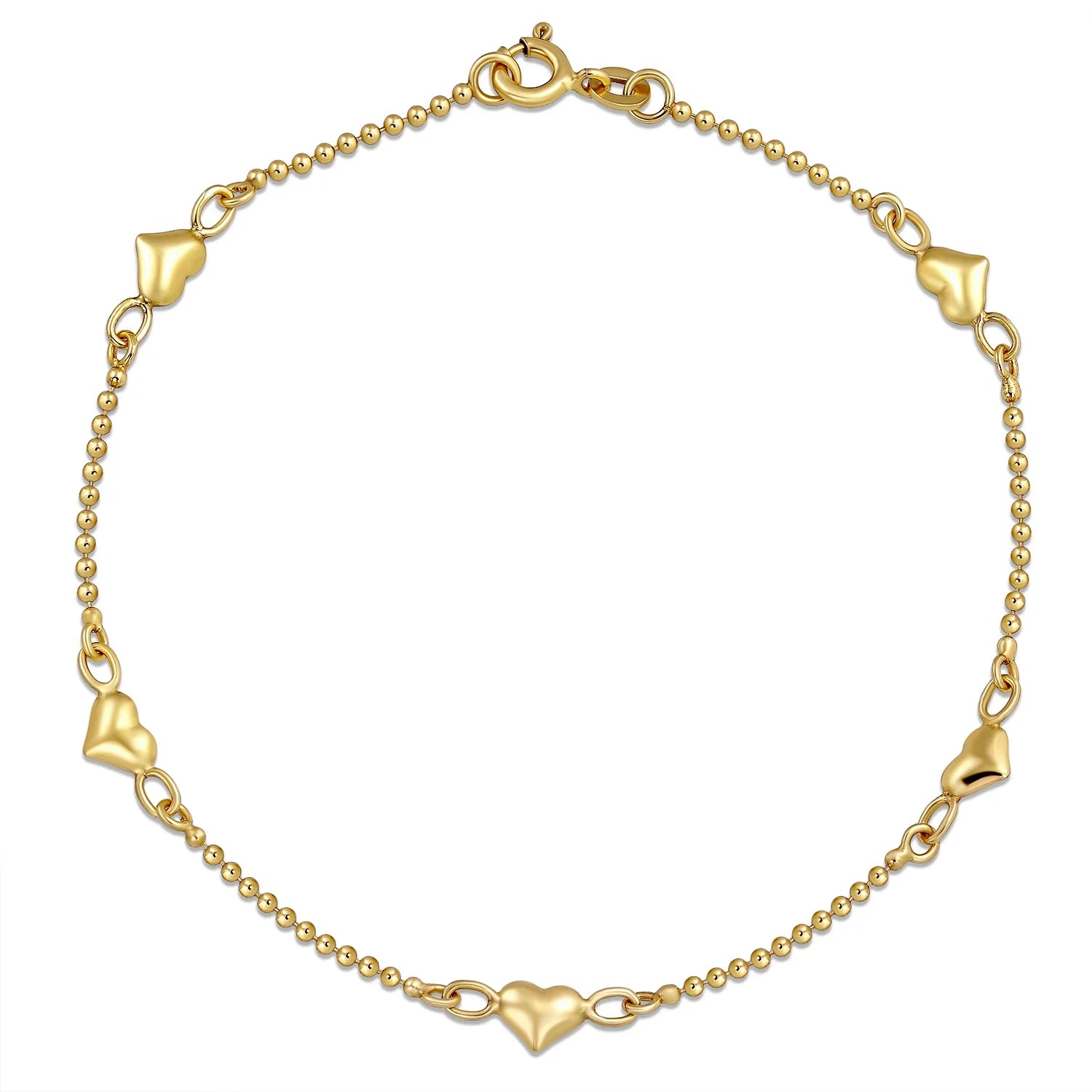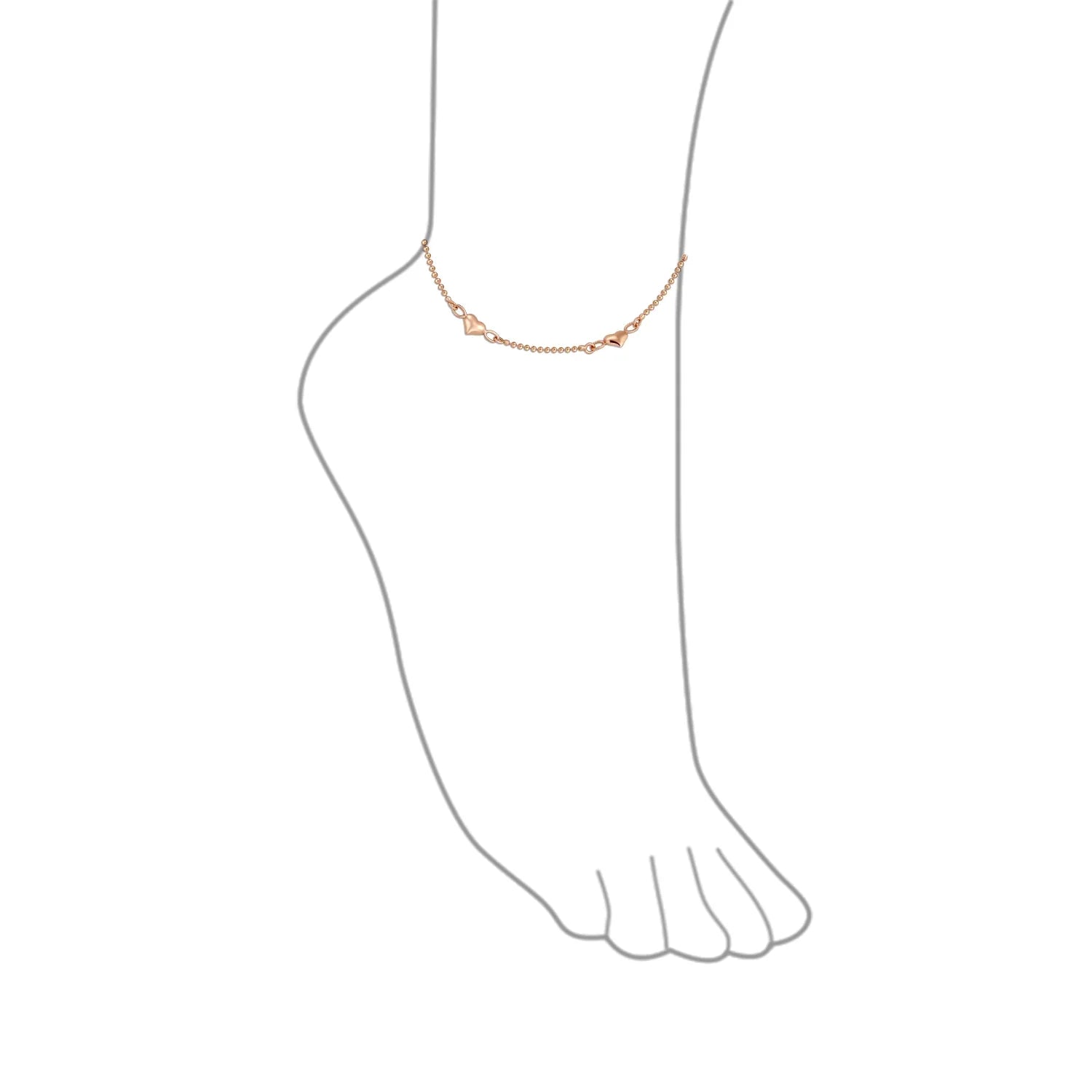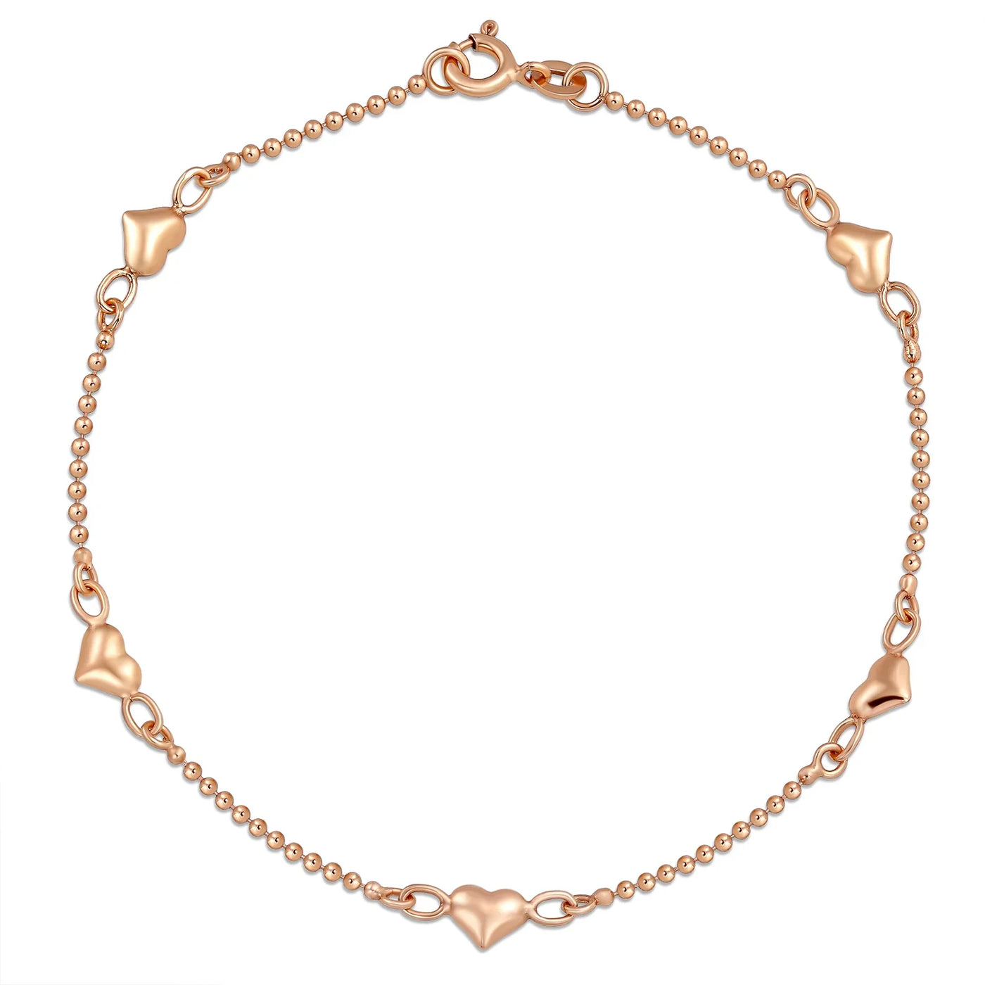- Delicate but strong puff heart anklet with shot bead chain and 1inch extender for comfort fit Available rose gold vermeil thickness 2.5 microns of gold heavy quality plating made to last