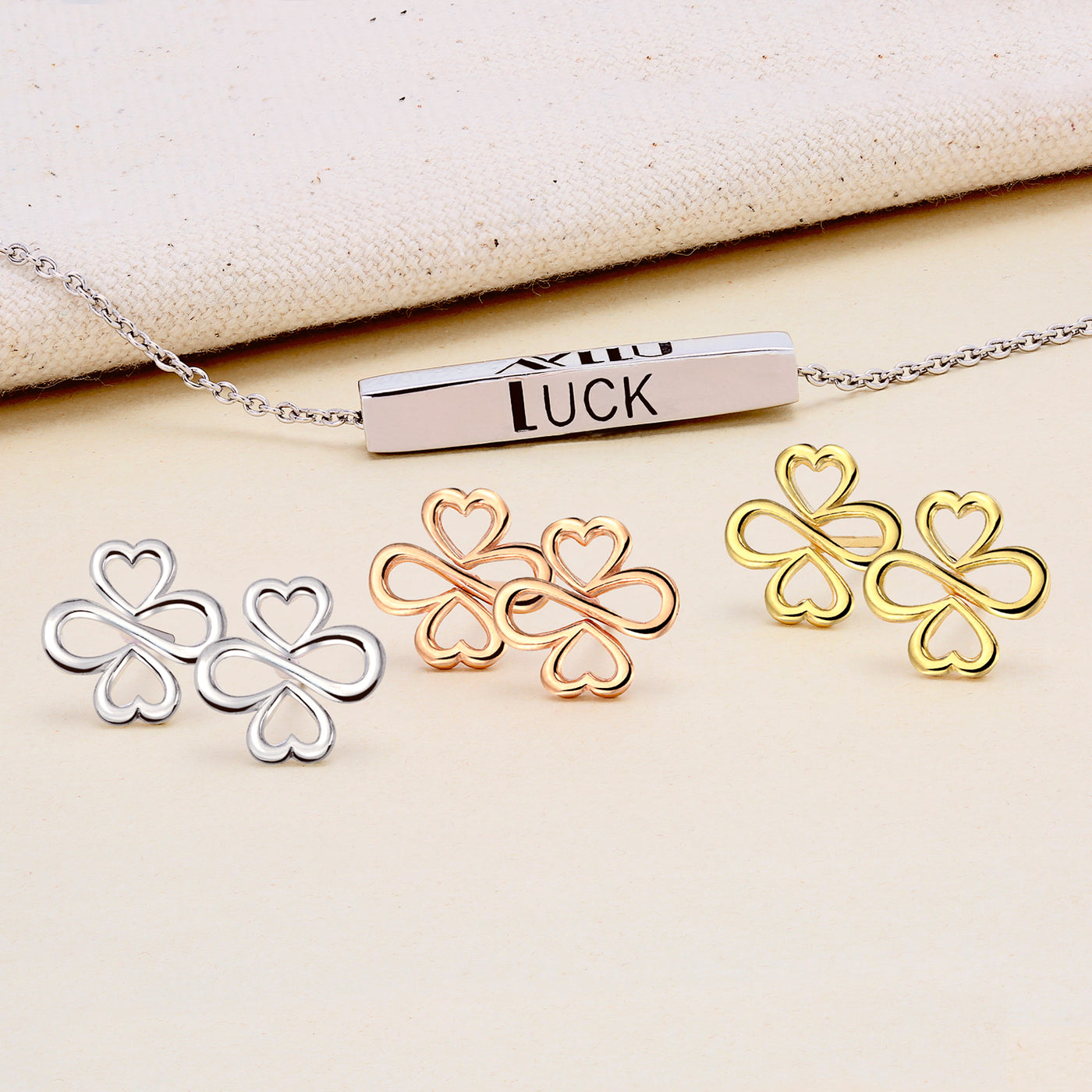 - AYLLU's sterling silver stud earrings symbolize love, luck, and unity. Featuring two hearts and an infinity forming a clover. A reminder of our global community. Packaged in handcrafted gift boxes with a story pamphlet.