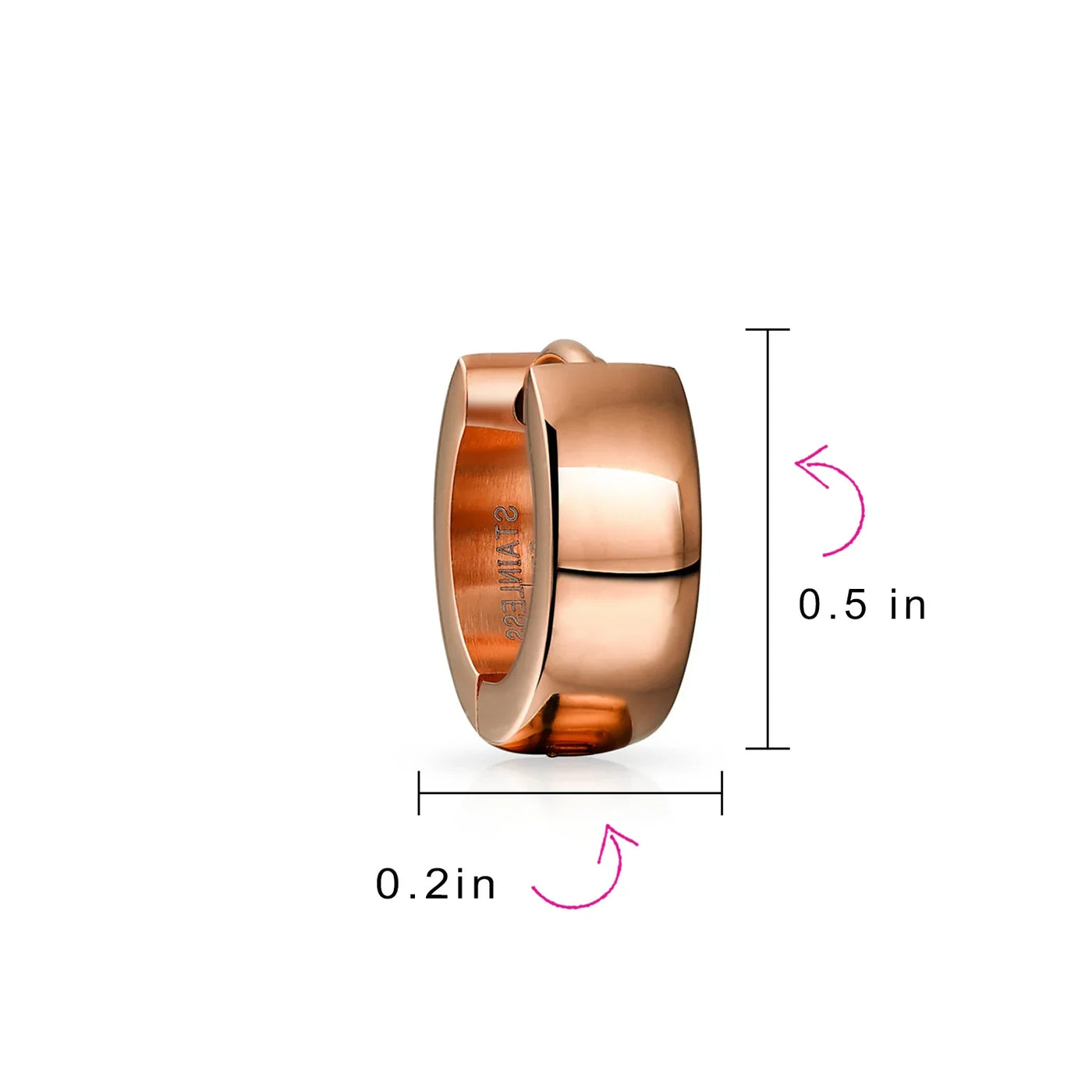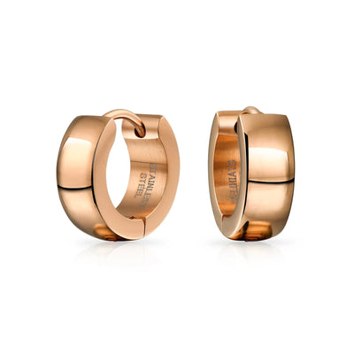 - Don't step out tonight without a touch of gold. Adorn yourself with our gold or rose-colored stainless steel huggie hoop earrings. Watch the evening transform into a Gold Tone glow. These rugged yet elegant huggie hoops exude glamour. Perfect for adding individuality to your look. Durable, comfortable, and dependable stainless steel hoop earrings. Ideal gifts for anyone who loves a little adventure in life.