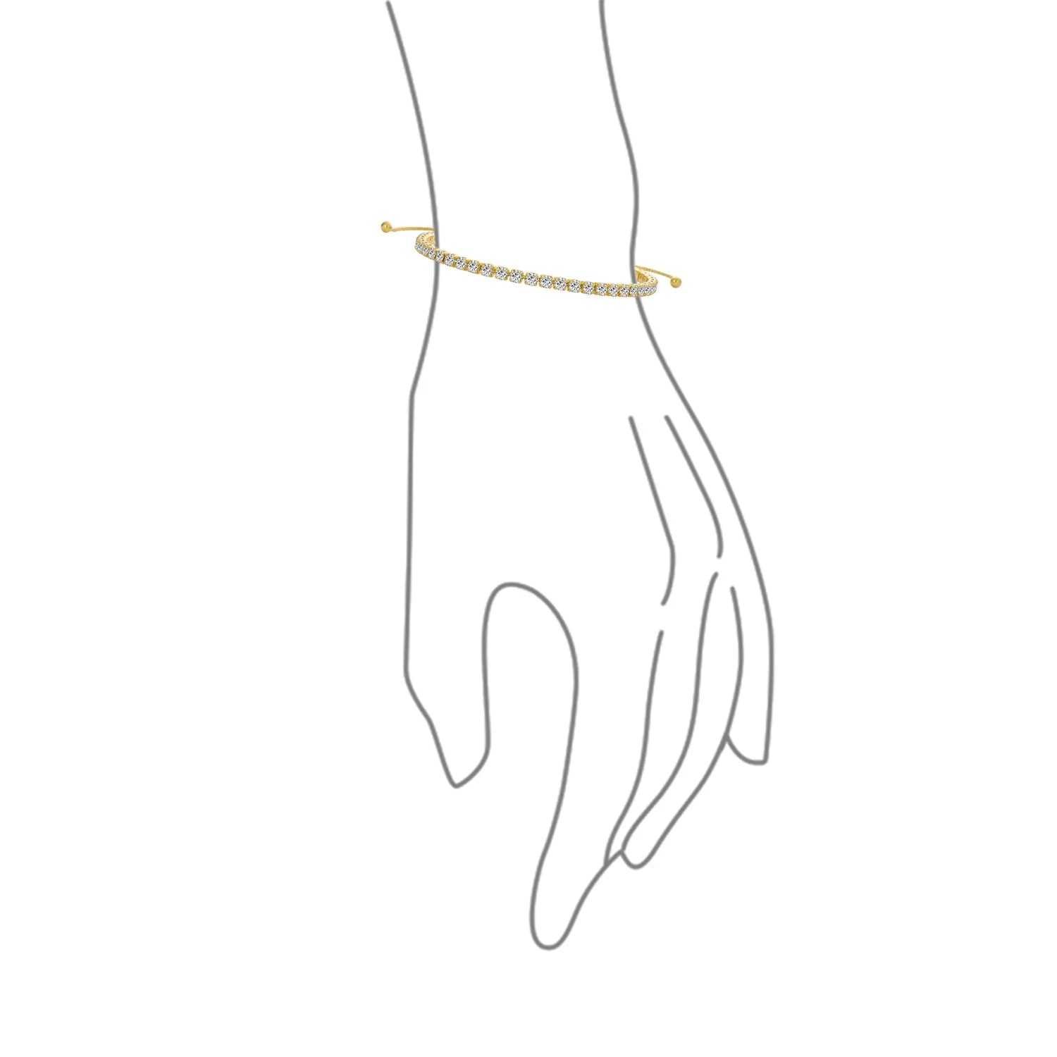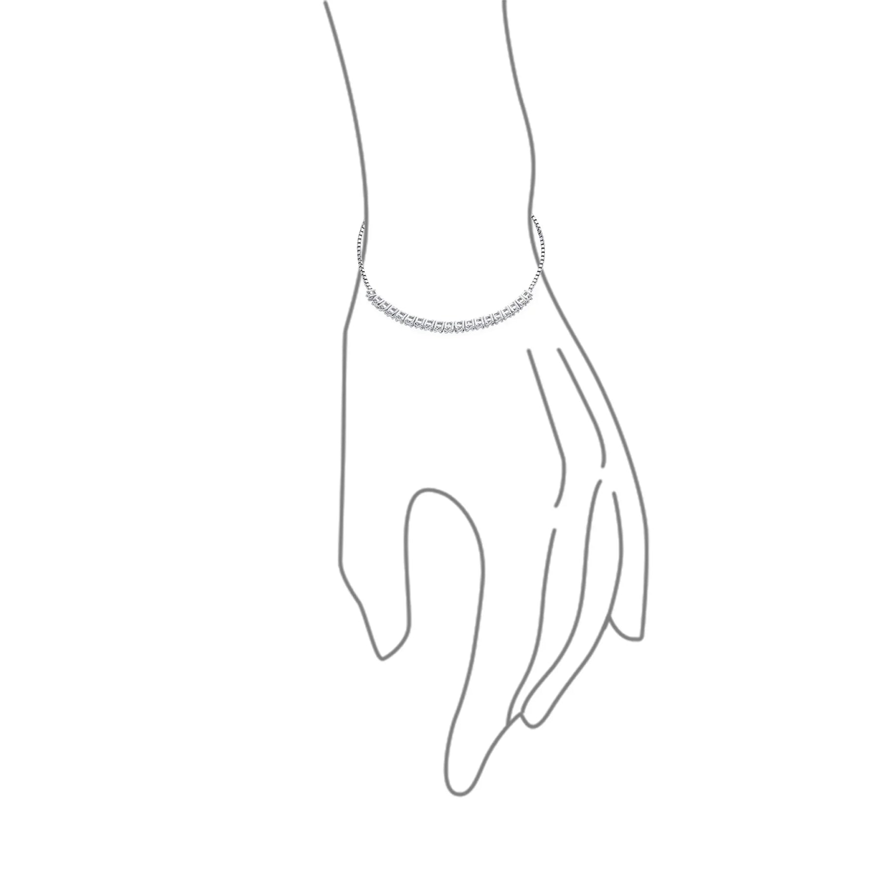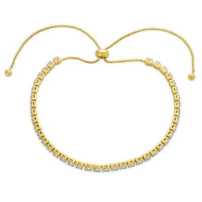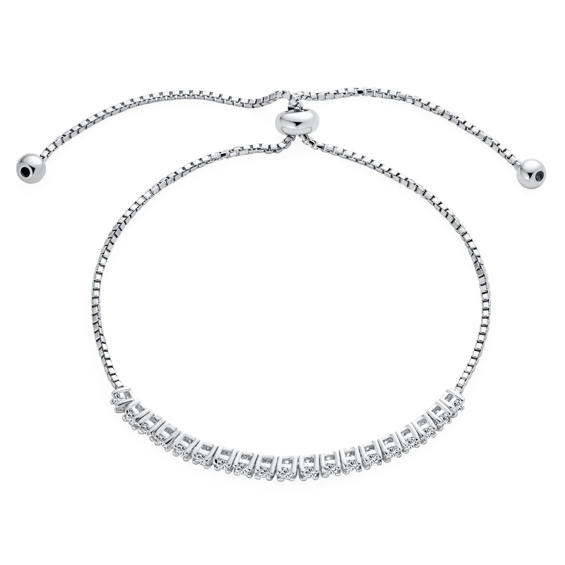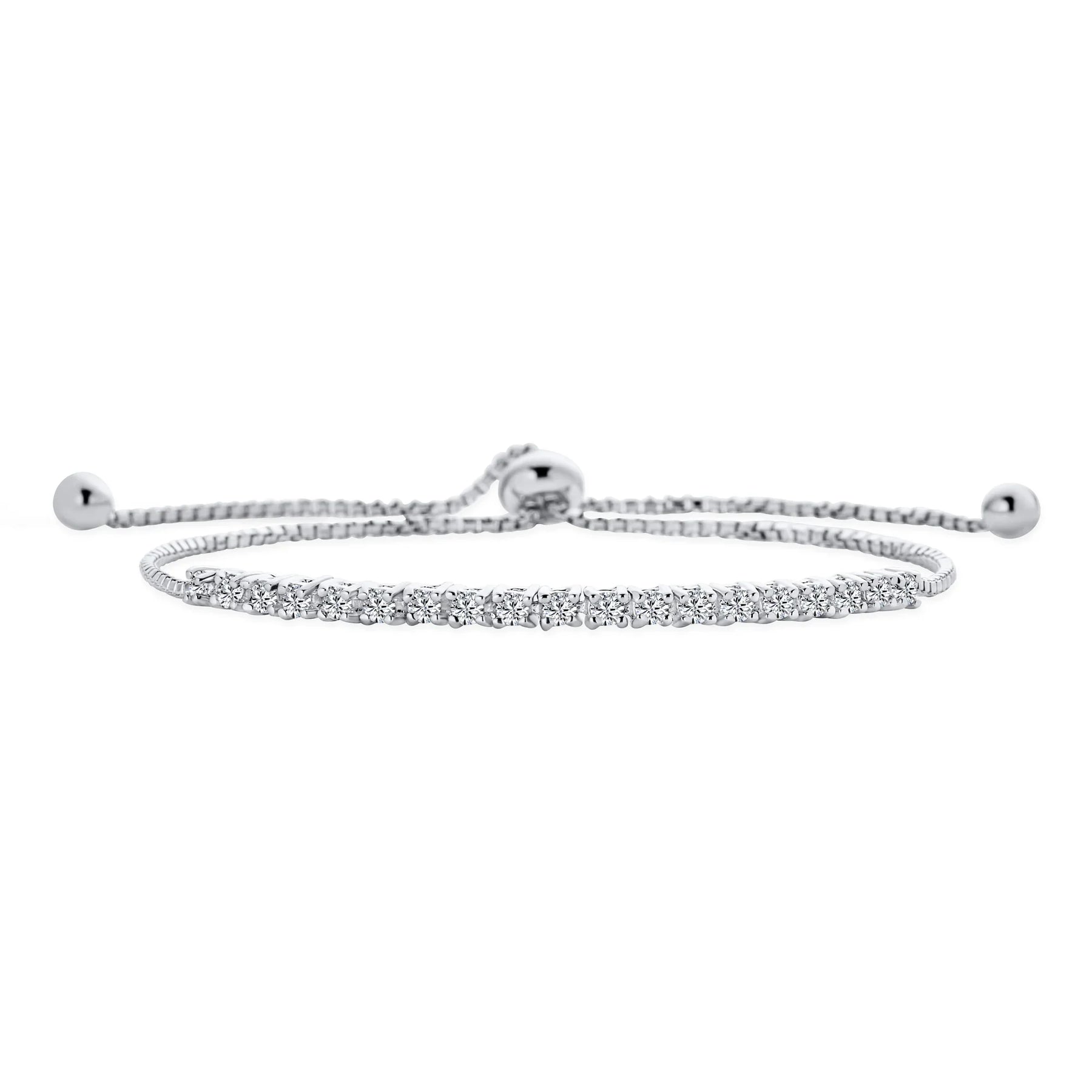 - Ultra-thin romantic design, perfect for layering with other bracelets. Reminiscent of classic tennis bracelets, this stunning piece features brilliant-cut CZ stones and a shiny bolo-style slider closure with finial-capped chain ends, adding an unexpected feminine touch. Ideal for weddings, proms, or cocktail parties.