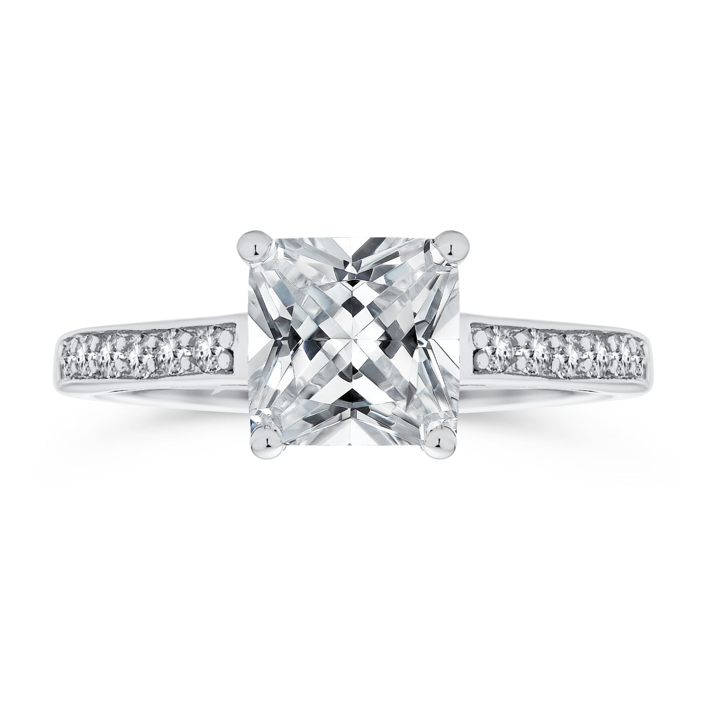 2.5CT CZ Square Solitaire Engagement Ring Pave Stone Band