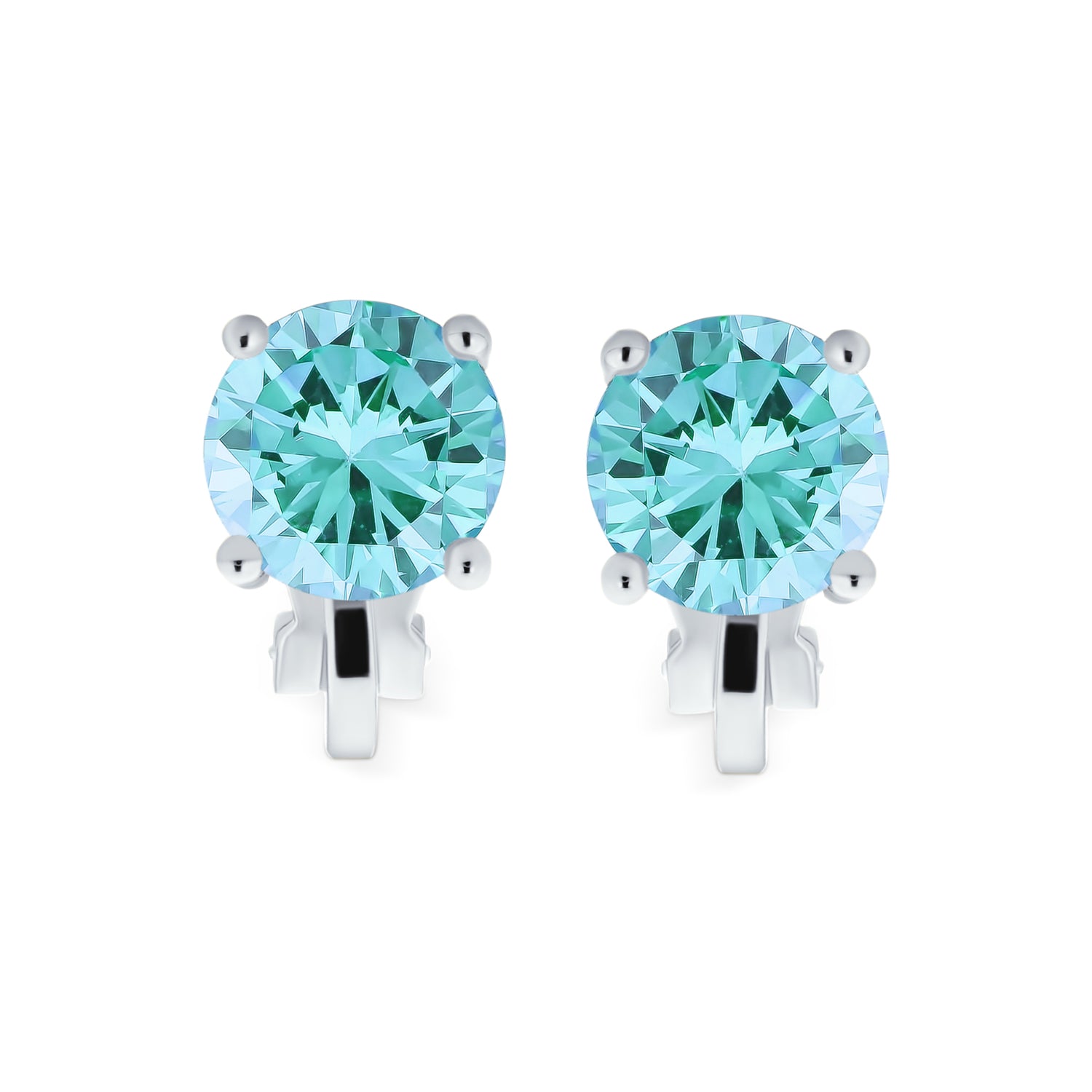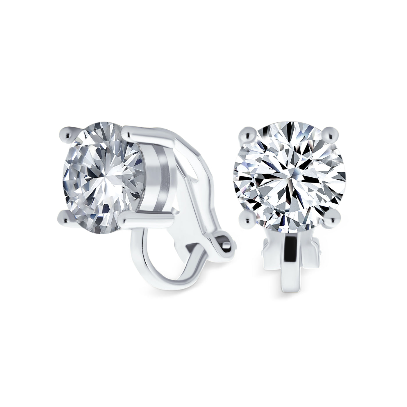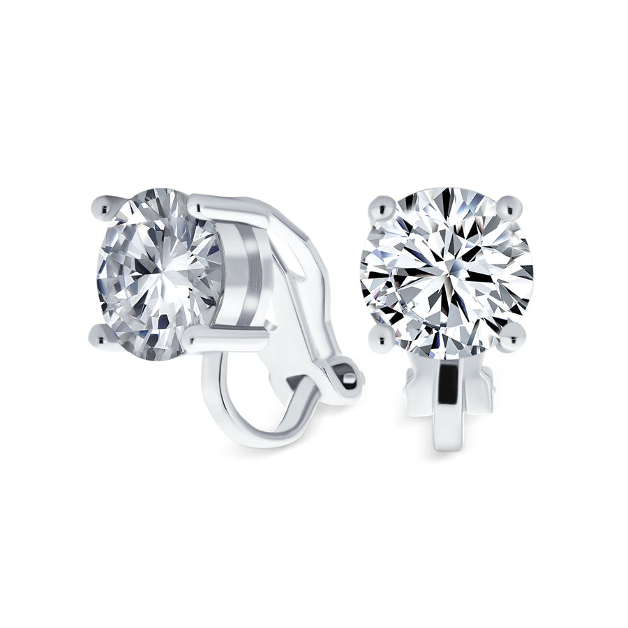 • Discover our exquisite round solitaire clip-on earrings, ideal for non-pierced ears. Featuring an 8mm cubic zirconia stone in a secure four-prong setting. Crafted with precision, these clip-on studs effortlessly enhance your style. High-quality silver plating and rhodium finish ensure lasting shine. Perfect CZ bridal studs for comfort and fashion. Timeless beauty designed for women who love elegant jewelry.