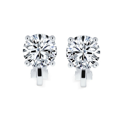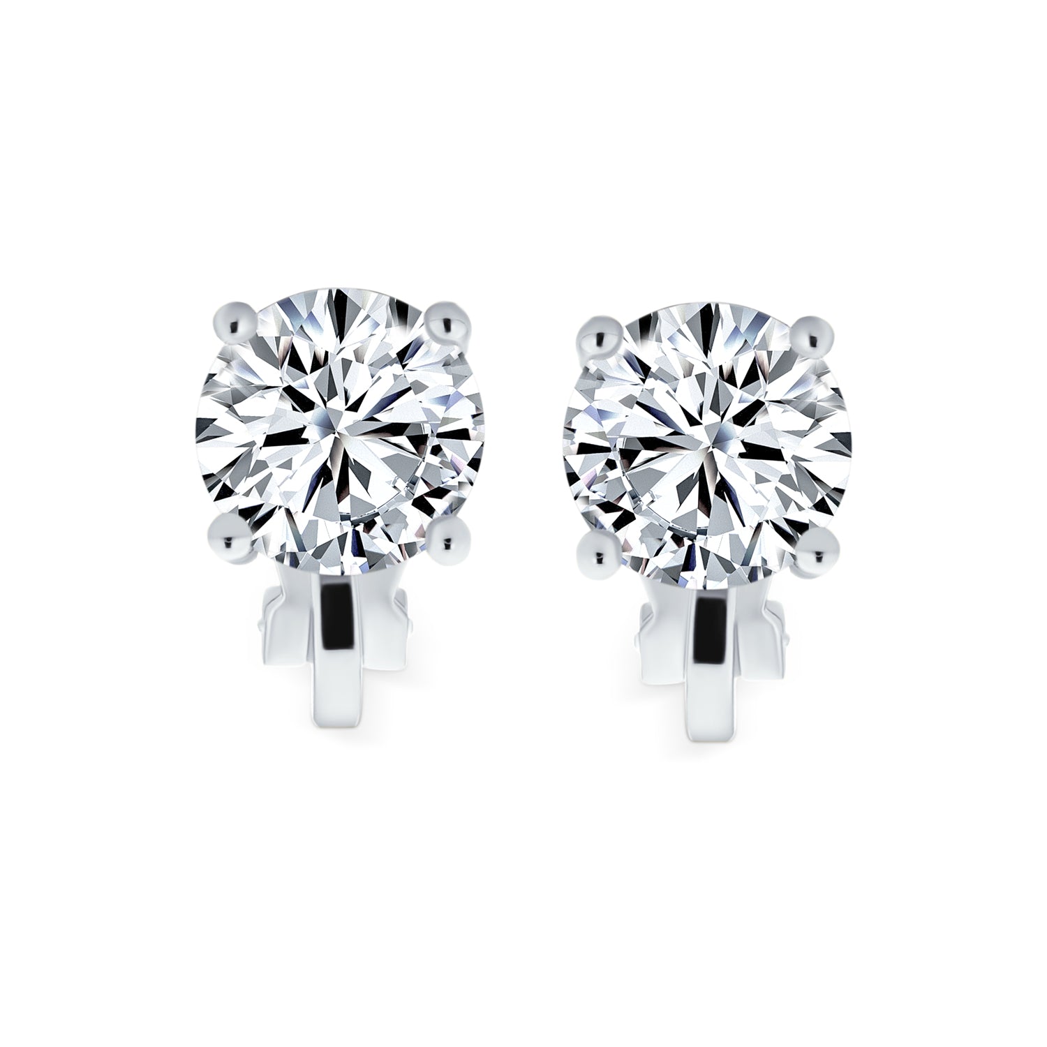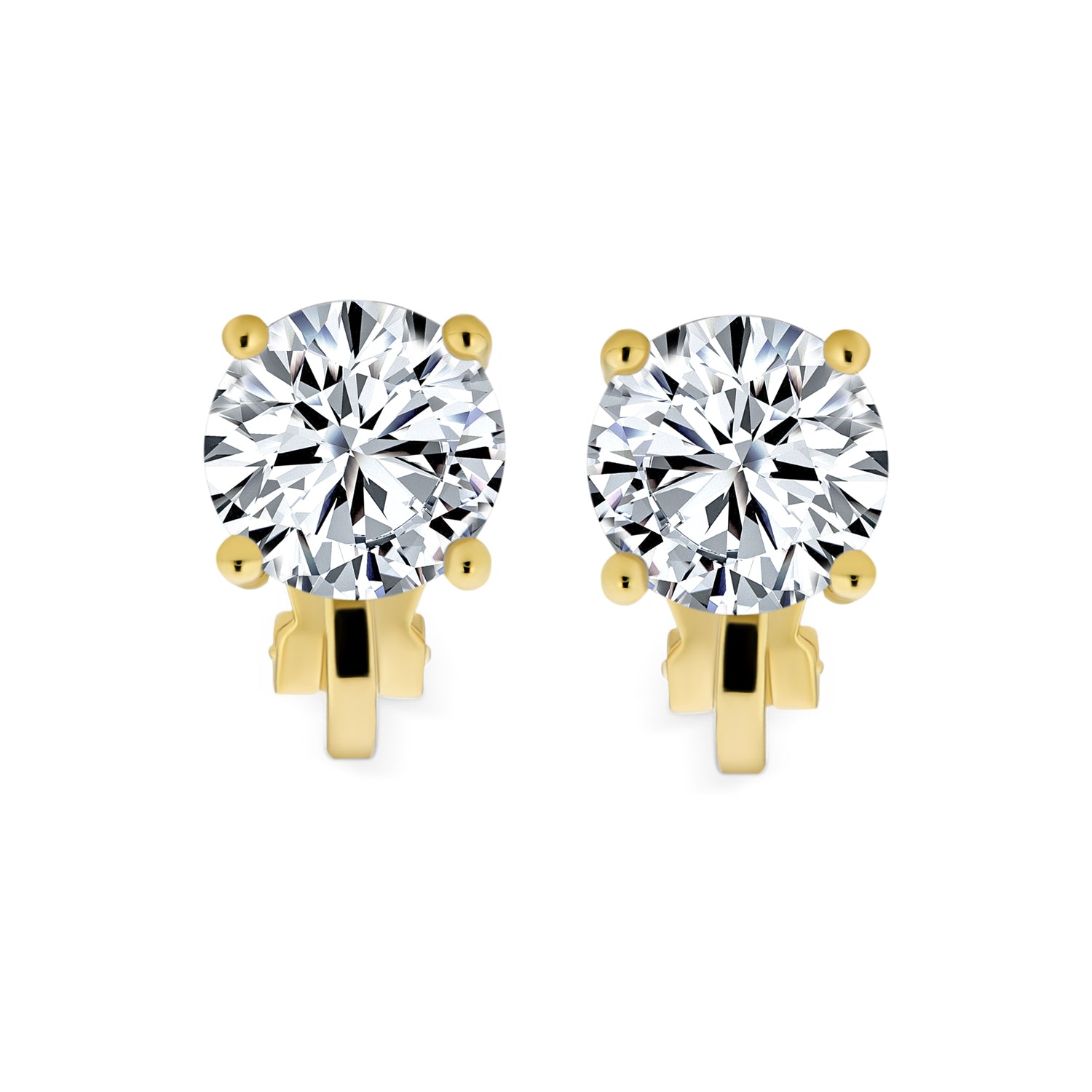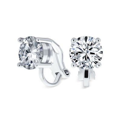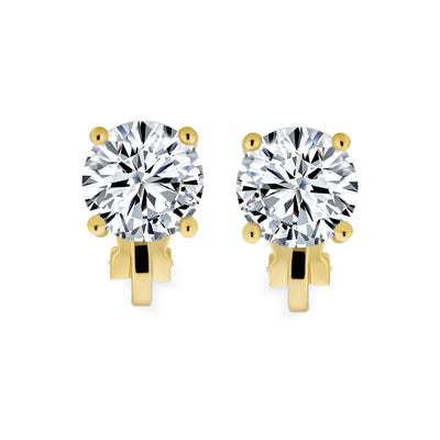Traditional 2CT Round CZ Solitaire Clip-On Earrings - GoldSilver Non-Pierced 8MM
