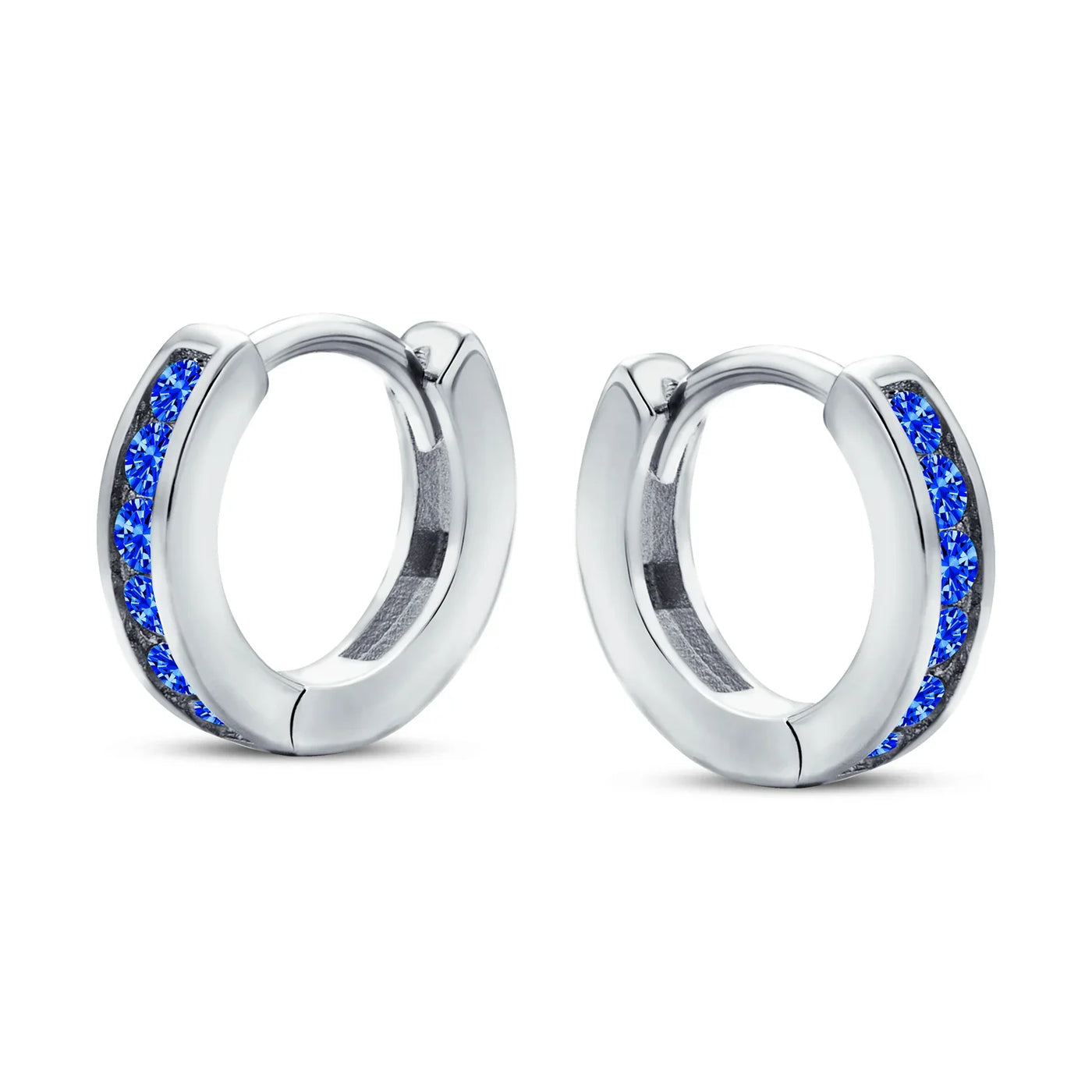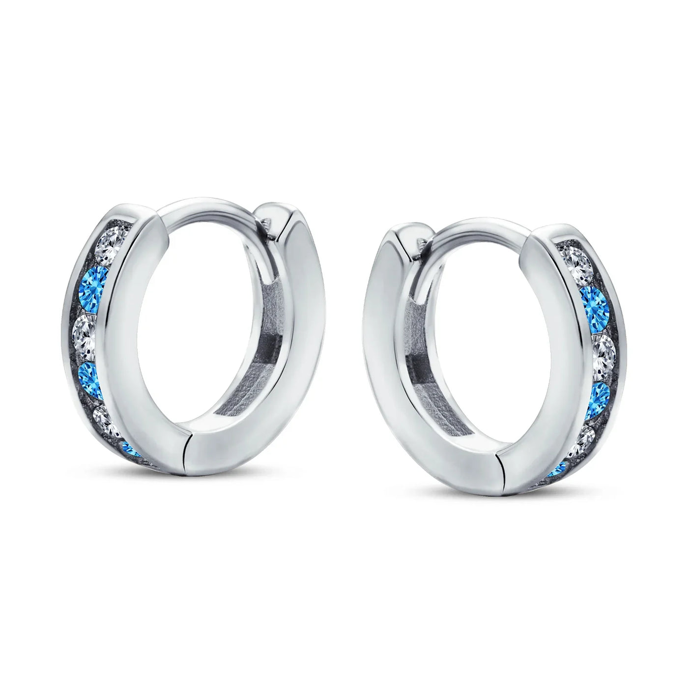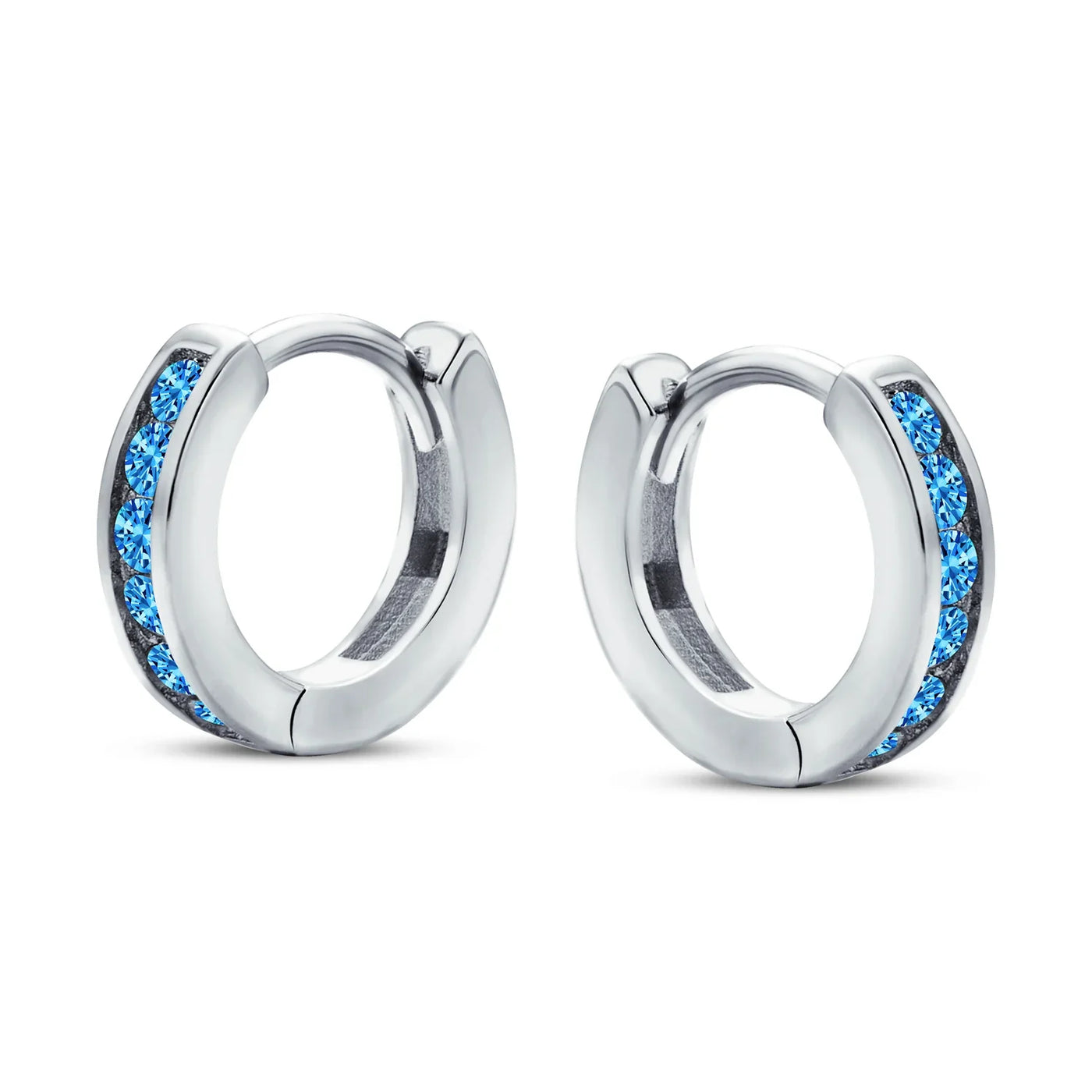 - STUNNING DESIGN - Sleek and chic, December birthdays will love our 0.5in, rhodium plated silver huggie hoop earrings to enhance any ensemble. Featuring channel set simulated blue topaz CZ, these sparkling earrings are a great gift.