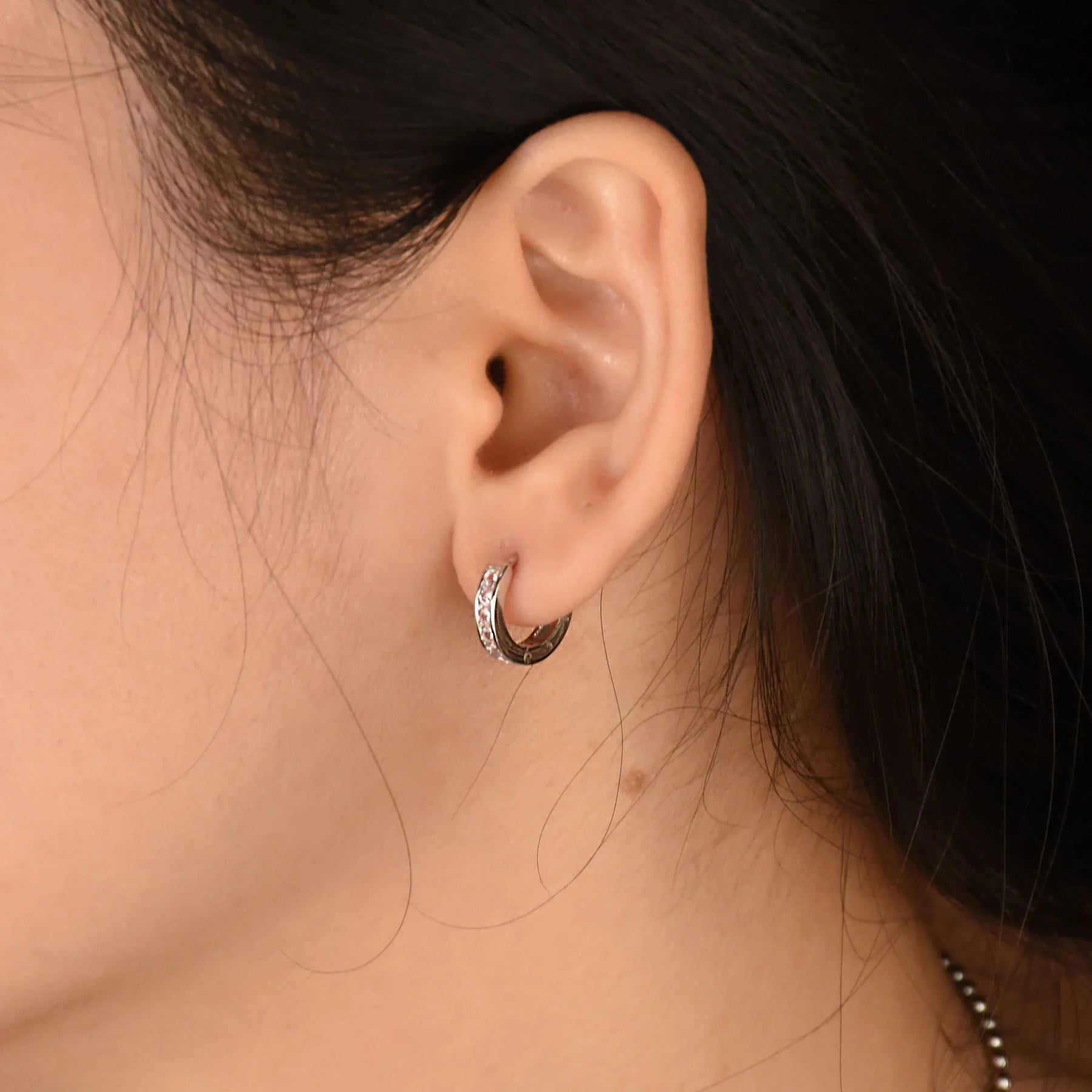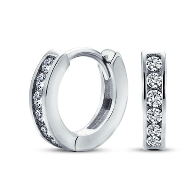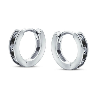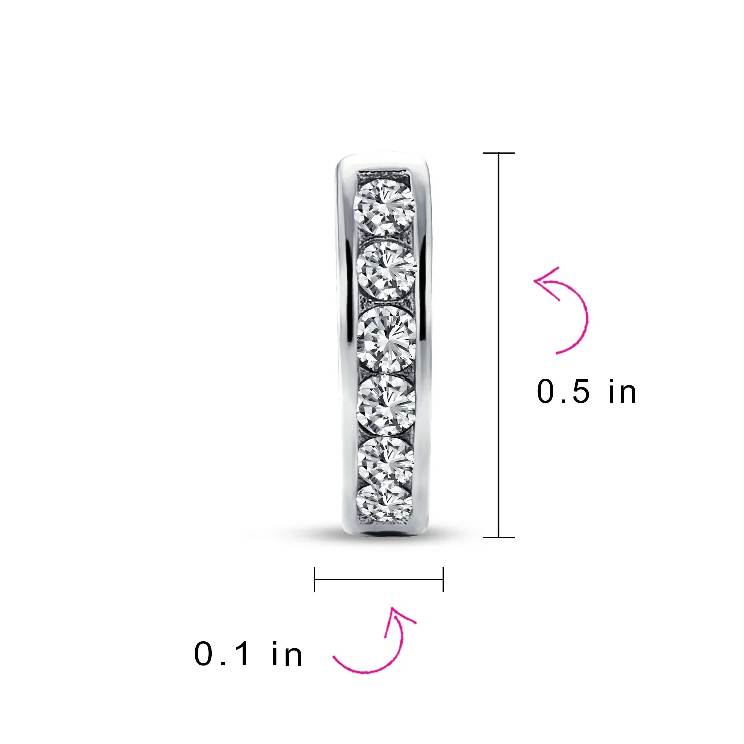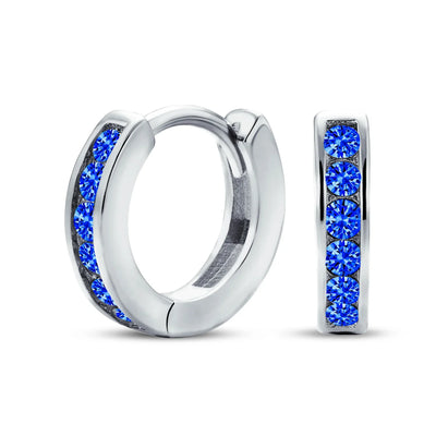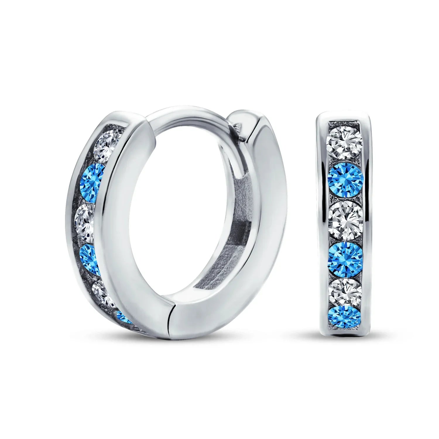 - STUNNING DESIGN - Sleek and chic, December birthdays will love our 0.5in, rhodium plated silver huggie hoop earrings to enhance any ensemble. Featuring channel set simulated blue topaz CZ, these sparkling earrings are a great gift.