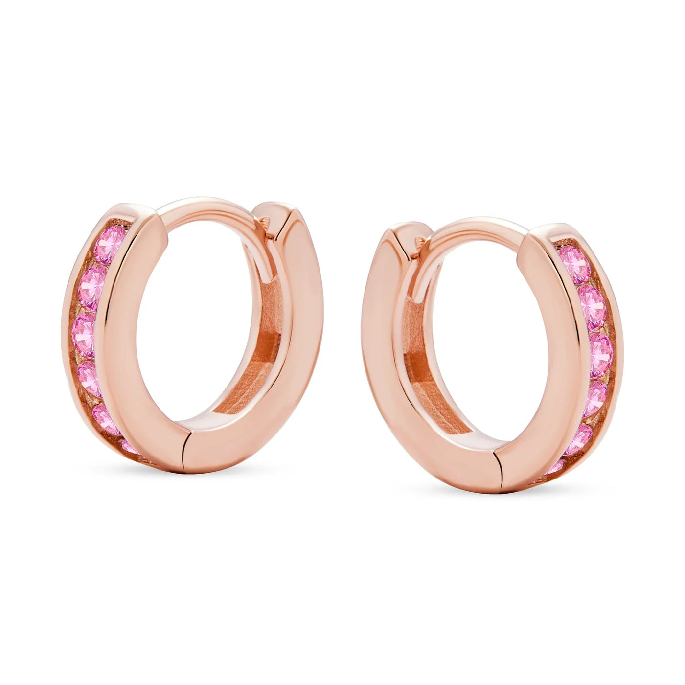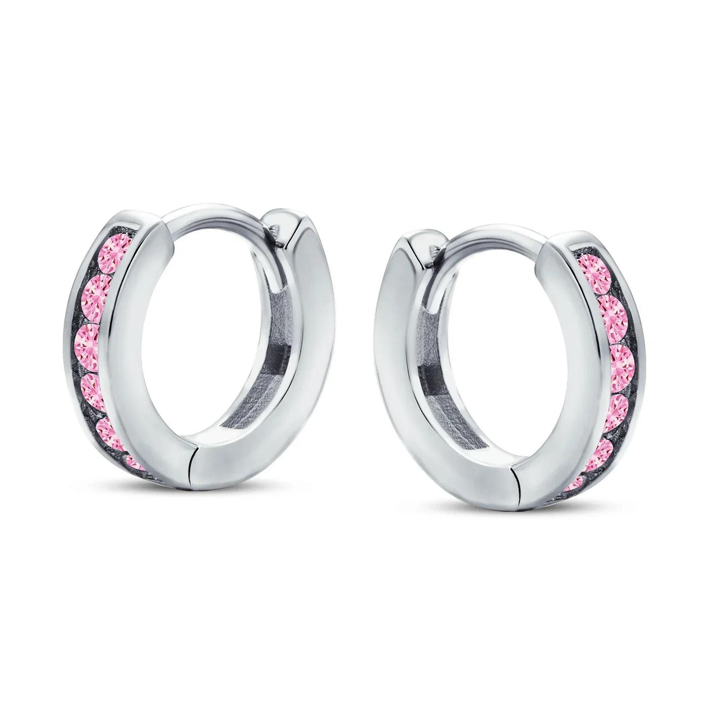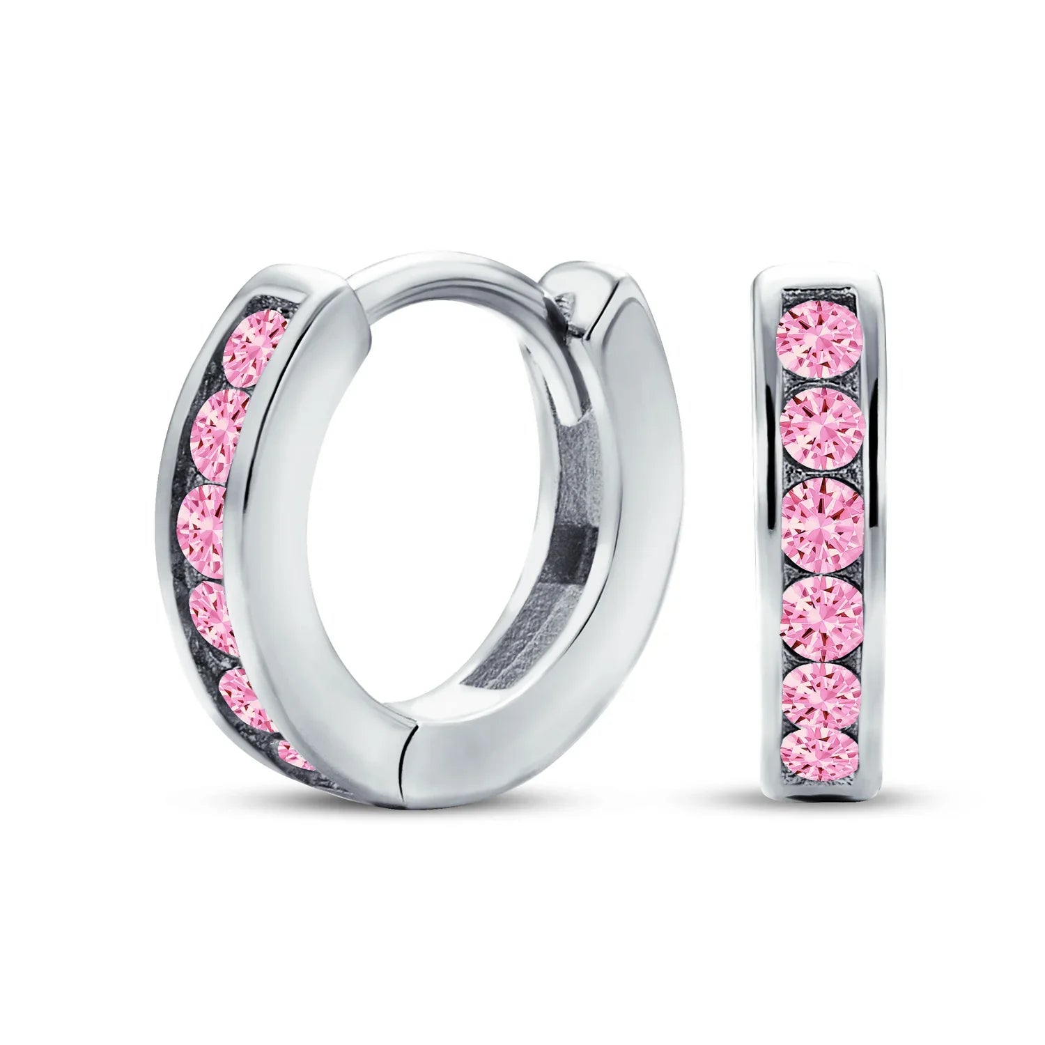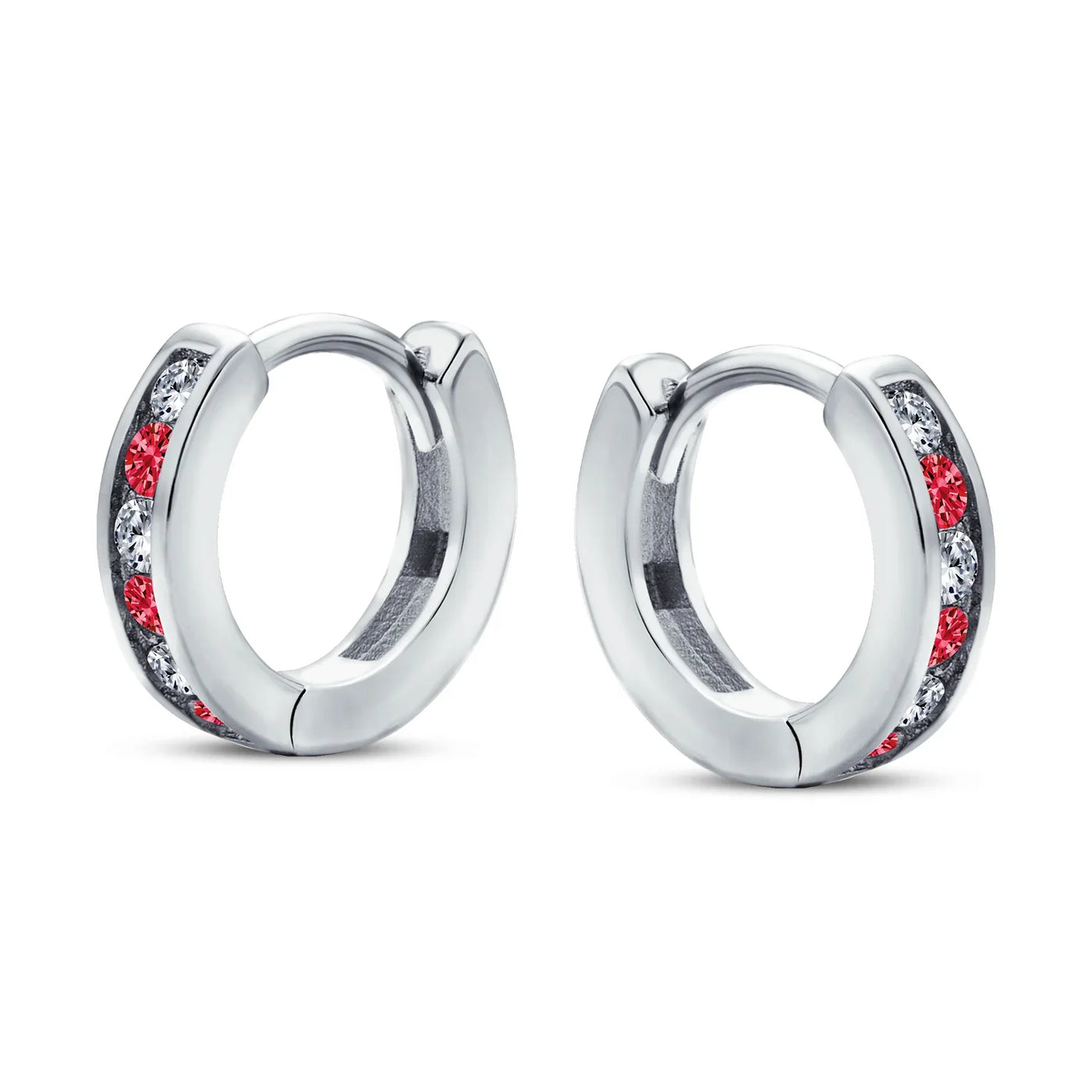 - Enhance your look with our vibrant CZ huggie earrings. Crafted from 925 sterling silver, these hoops feature simulated amethyst, emerald, garnet, and sapphire CZs. Perfect birthstone jewelry for January, February, May, and September. Order now!