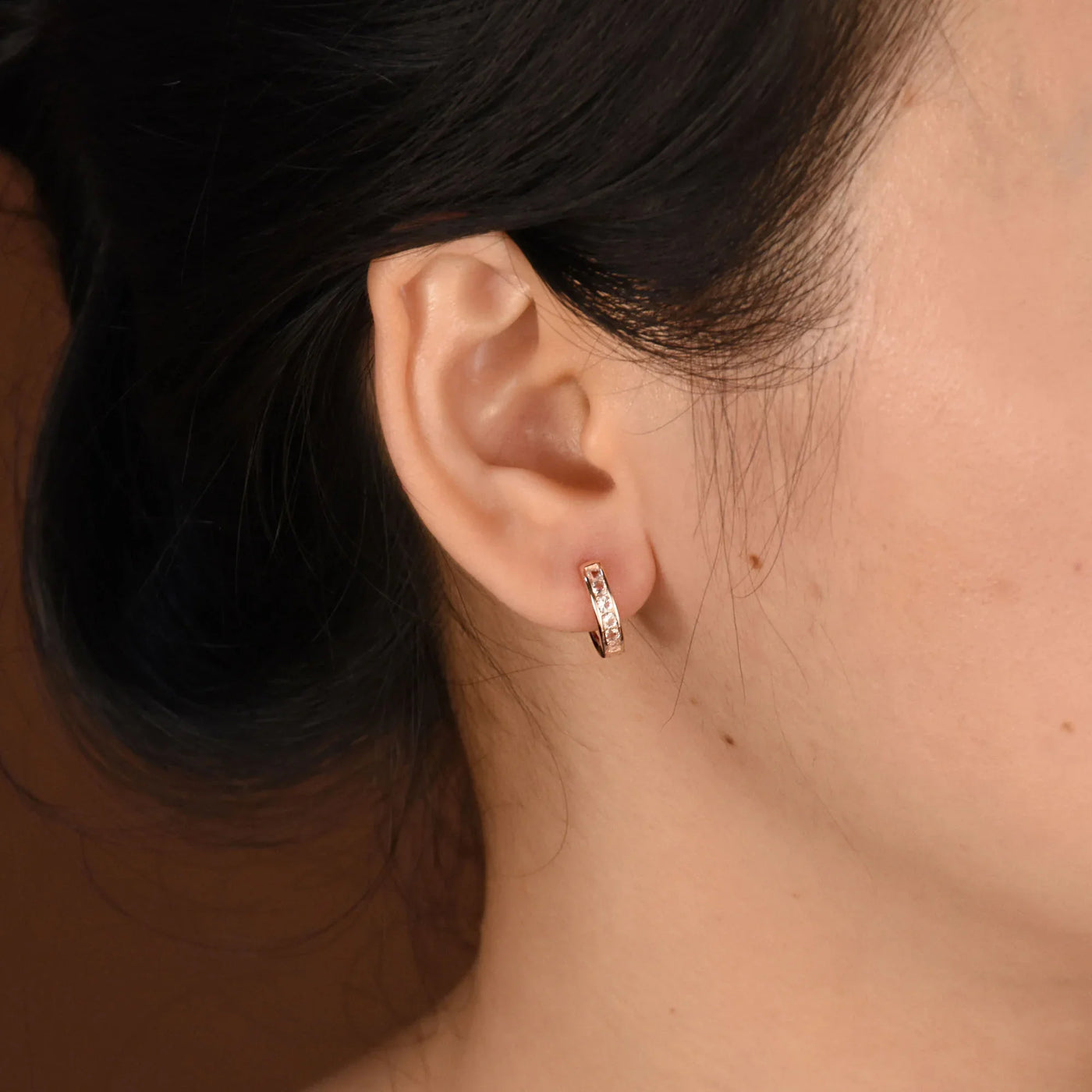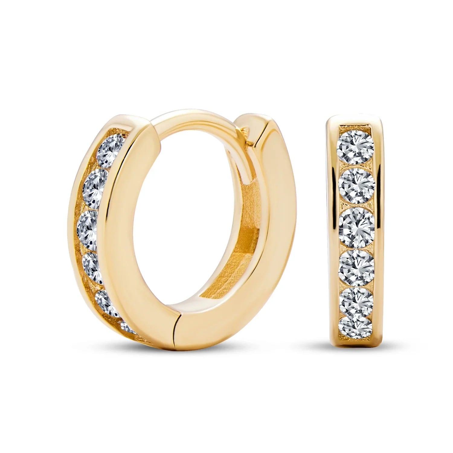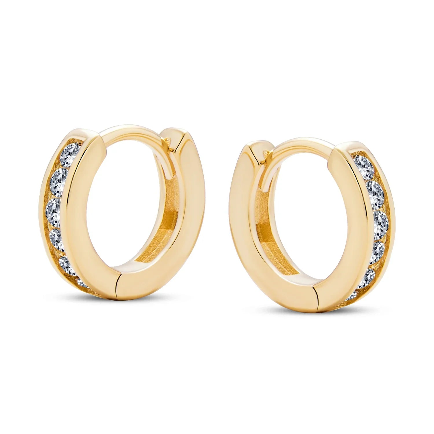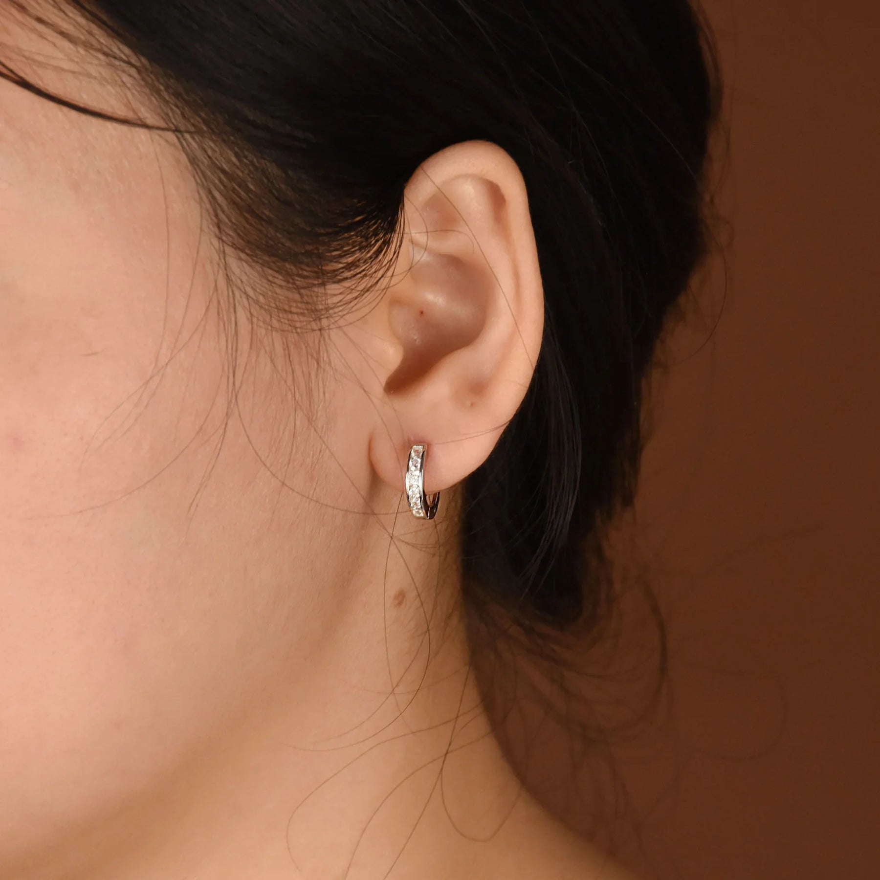 - Enhance your look with our vibrant CZ huggie earrings. Crafted from 925 sterling silver, these hoops feature simulated amethyst, emerald, garnet, and sapphire CZs. Perfect birthstone jewelry for January, February, May, and September. Order now!