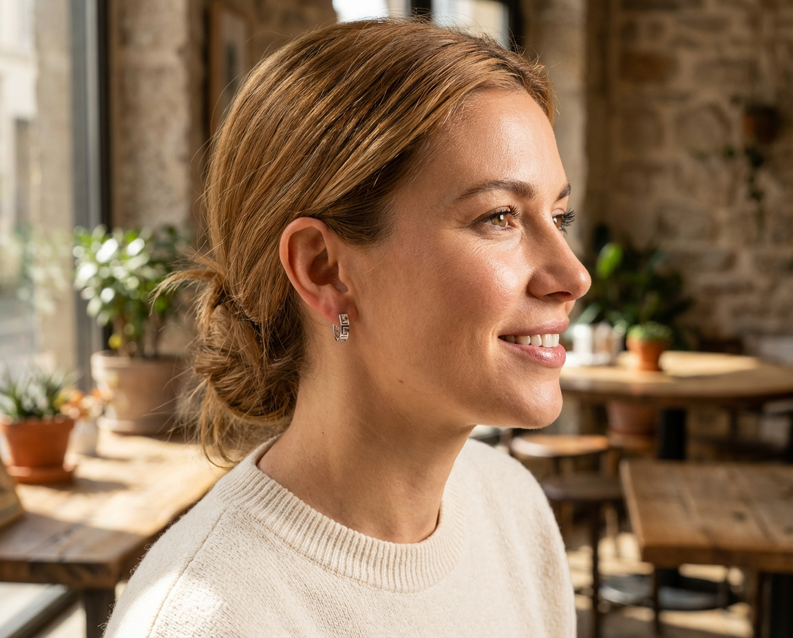 • Enhance your style with our Greek key design earrings, exuding timeless elegance and profound symbolism. These earrings beautifully capture the eternal nature of love and friendship, symbolizing their unbreakable bond