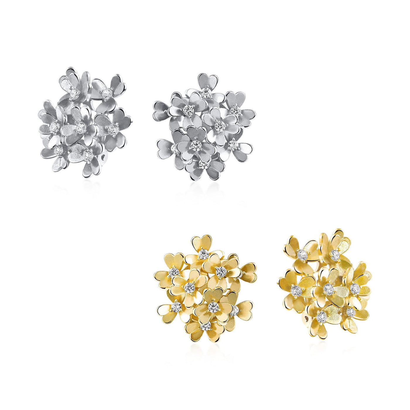 - Adore intricate floral jewelry? Our Plated flower cluster clip-on earrings are perfect. Stylish earrings for women with sparkling clear CZ centers. These captivating flower clip-ons complement any flower or clover jewelry collection. Dazzling clear CZs add glam to any look. Clip-on back makes them a fabulous gift for any chic lady.
