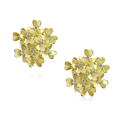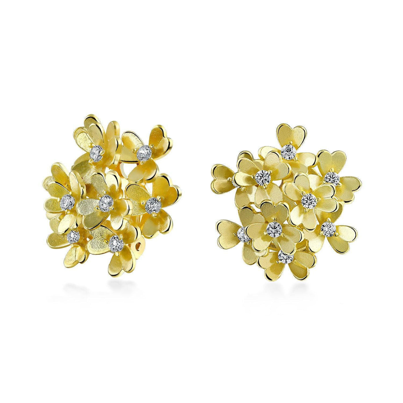 - FLORAL DESIGN - Radiating ethereal beauty and abundant femininity, these brass clip-on earrings are ideal for non-pierced ears. Enhanced by clusters of exquisite gold-plated three-leaf clovers with CZ accents, they form the petals of a delightful floral design.