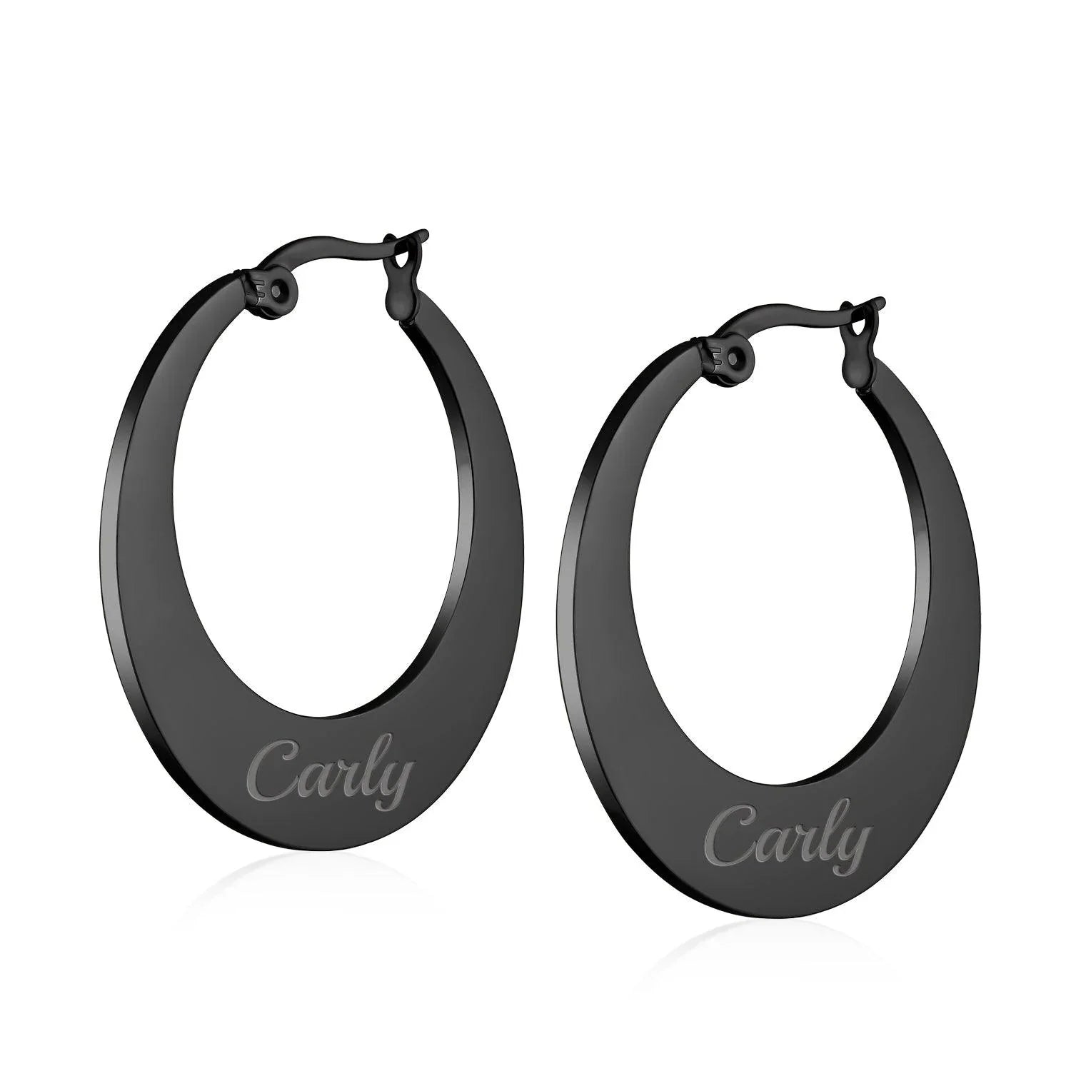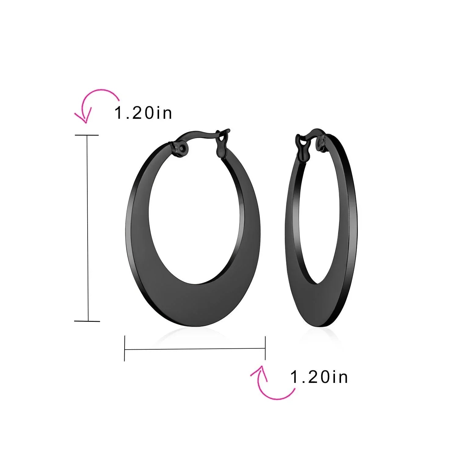 - Transform your style effortlessly with a new pair of black hoop earrings for women. These black stainless steel earrings feature a contemporary shape. Secure and comfortable, they have a hinge with notched post back. Perfect for jeans or evening wear, they’ll become your fashion favorite. Order today for a look you'll love!